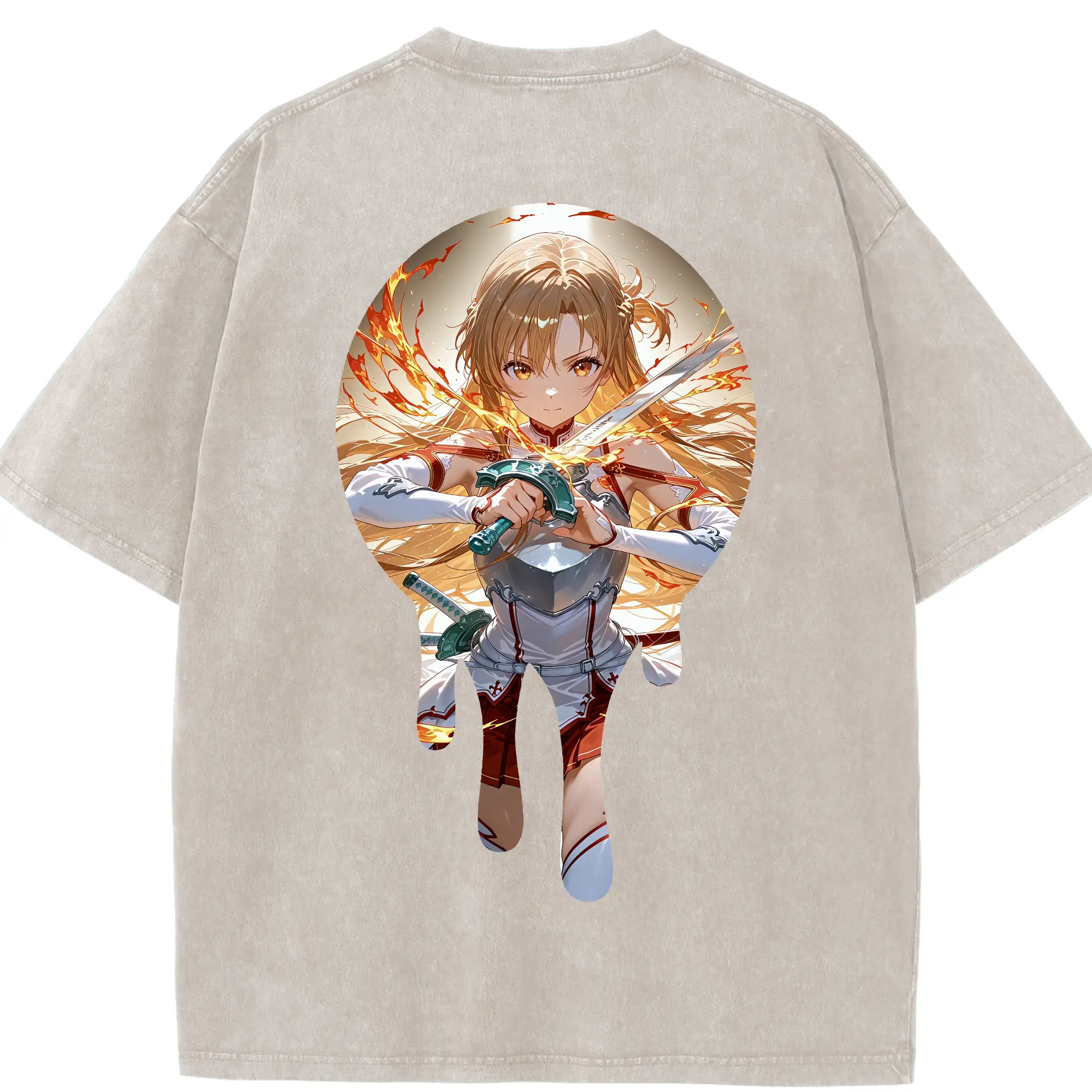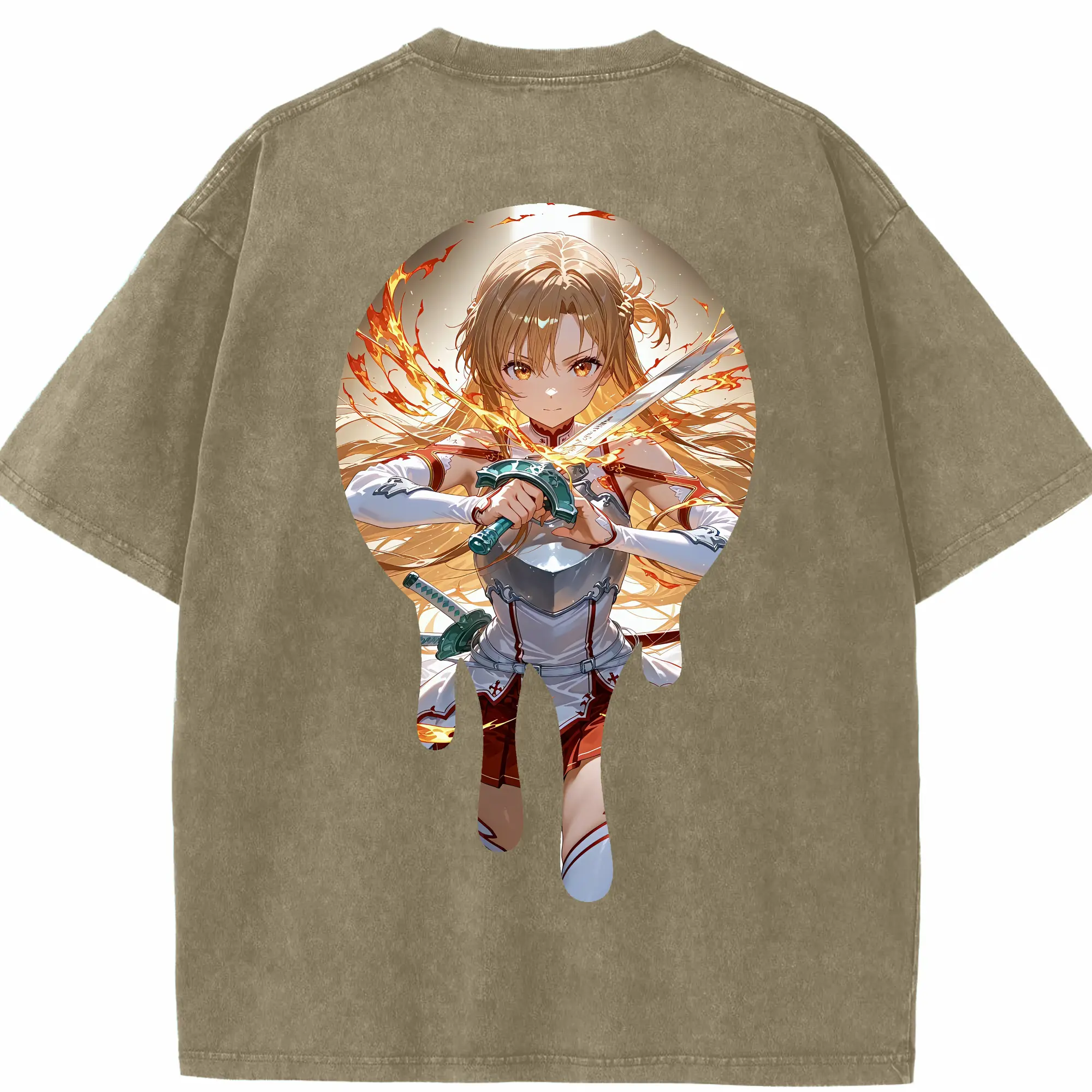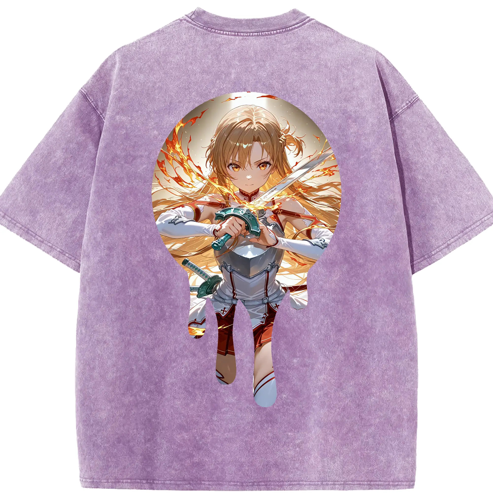 ソードアートオンライン グッズ アスナ - 綿100% ヴィンテージ風 半袖Tシャツ ・ フロントプリント ・ 柔らか肌触り ・ 通気性 快適 ・ スポーツ カジュアル 外出用