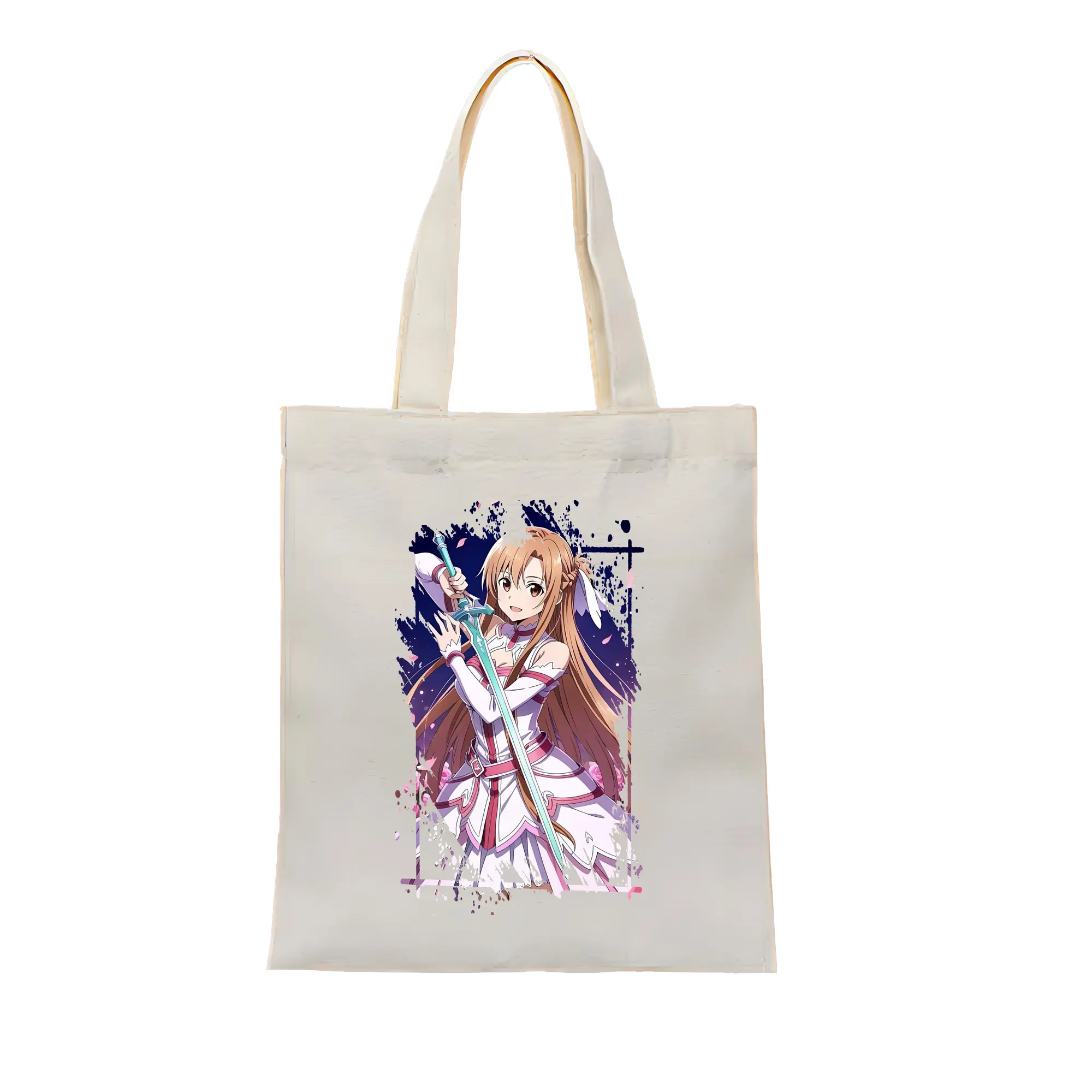 ソードアートオンライン グッズ アスナ - 縦型キャンバス手提げバッグ(トートバッグ) ・ キャンバス素材 ・ ショッピング用 ・ 軽量 丈夫 お手入れ簡単