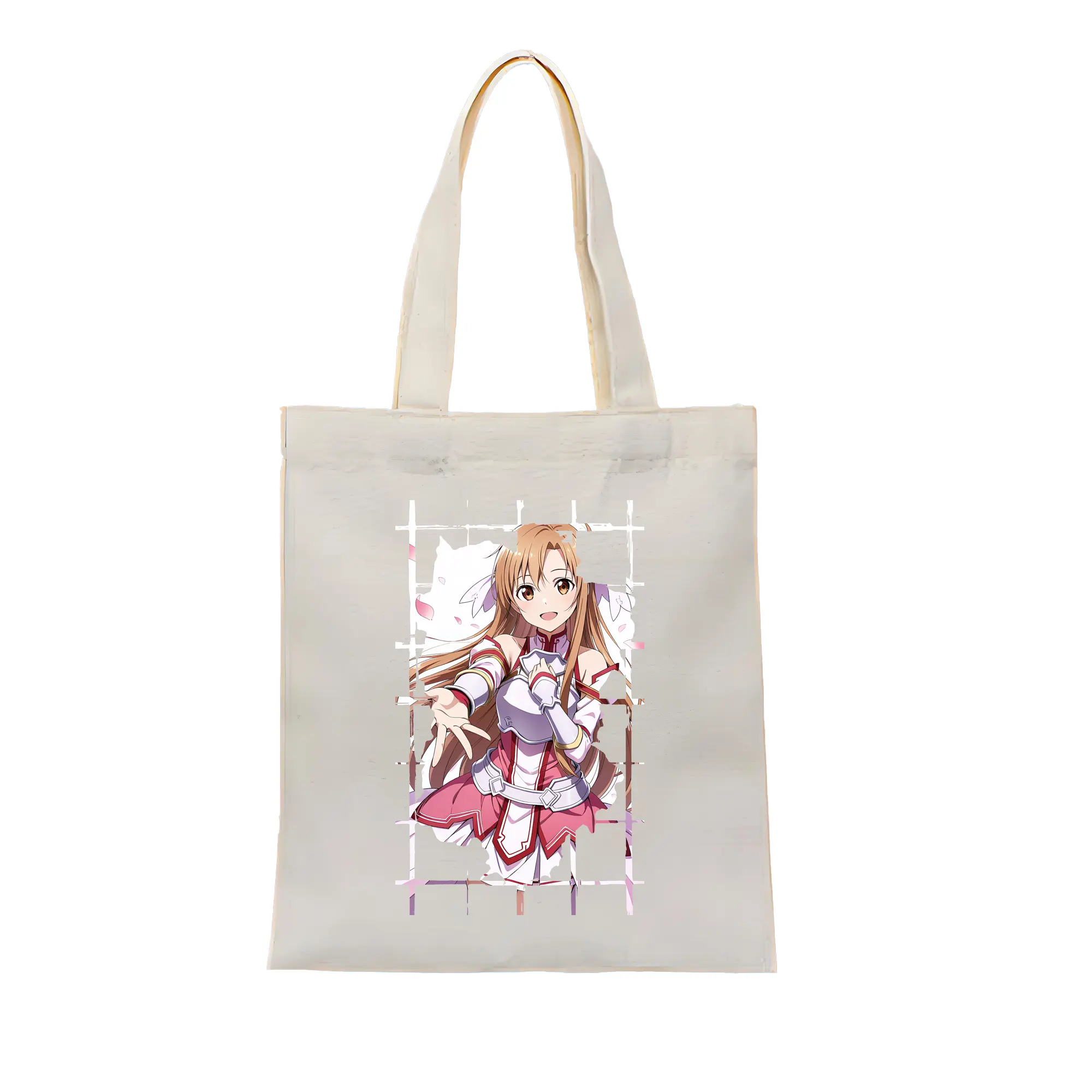 ソードアートオンライン グッズ アスナ - 縦型キャンバス手提げバッグ(トートバッグ) ・ キャンバス素材 ・ ショッピング用 ・ 軽量 丈夫 お手入れ簡単