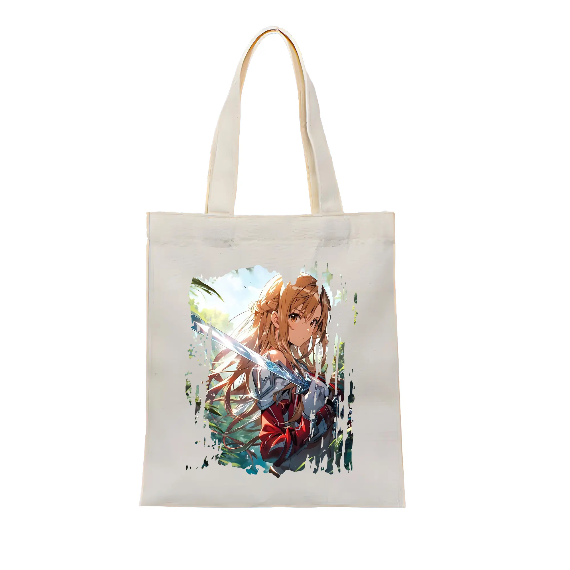 ソードアートオンライン グッズ アスナ - 縦型キャンバス手提げバッグ(トートバッグ) ・ キャンバス素材 ・ ショッピング用 ・ 軽量 丈夫 お手入れ簡単