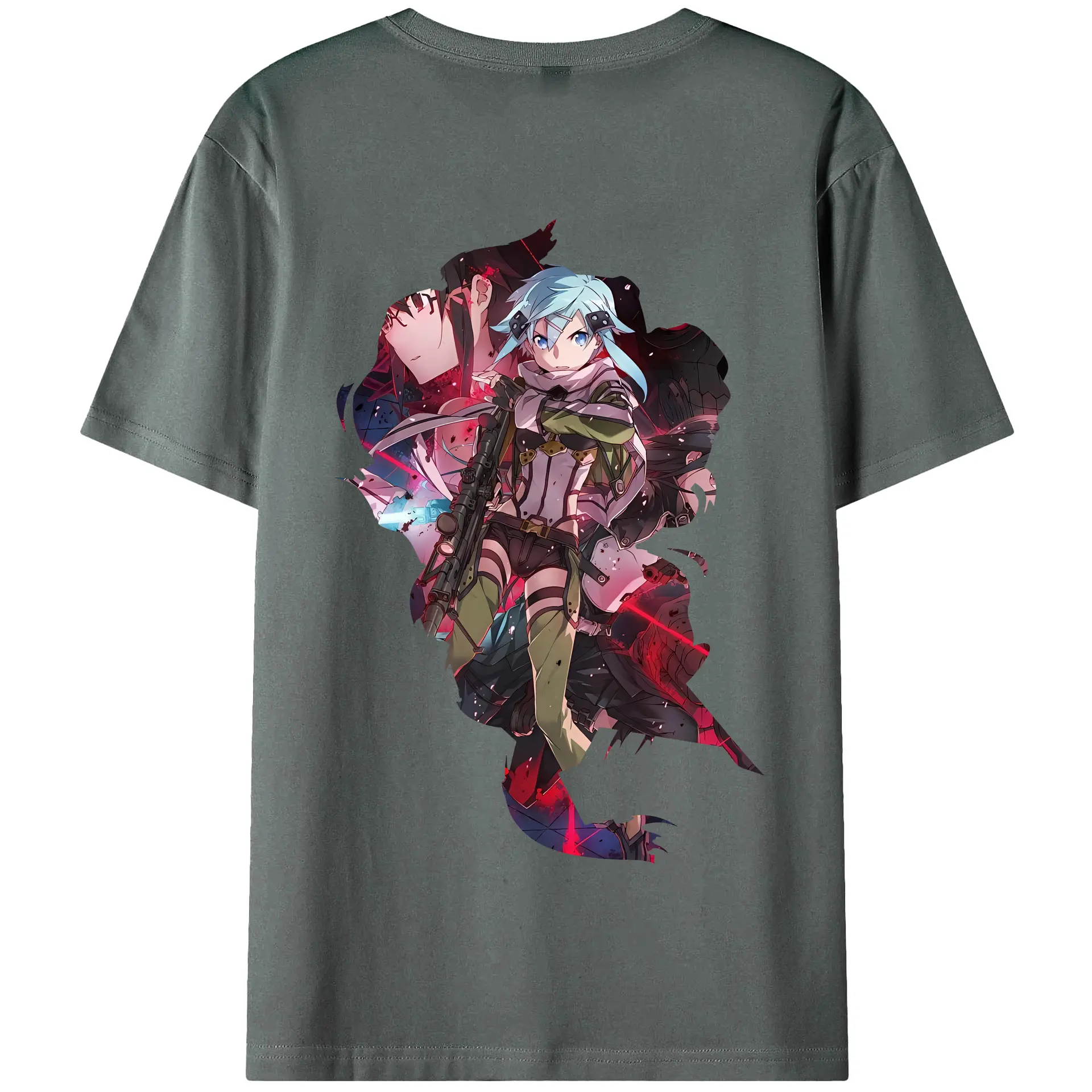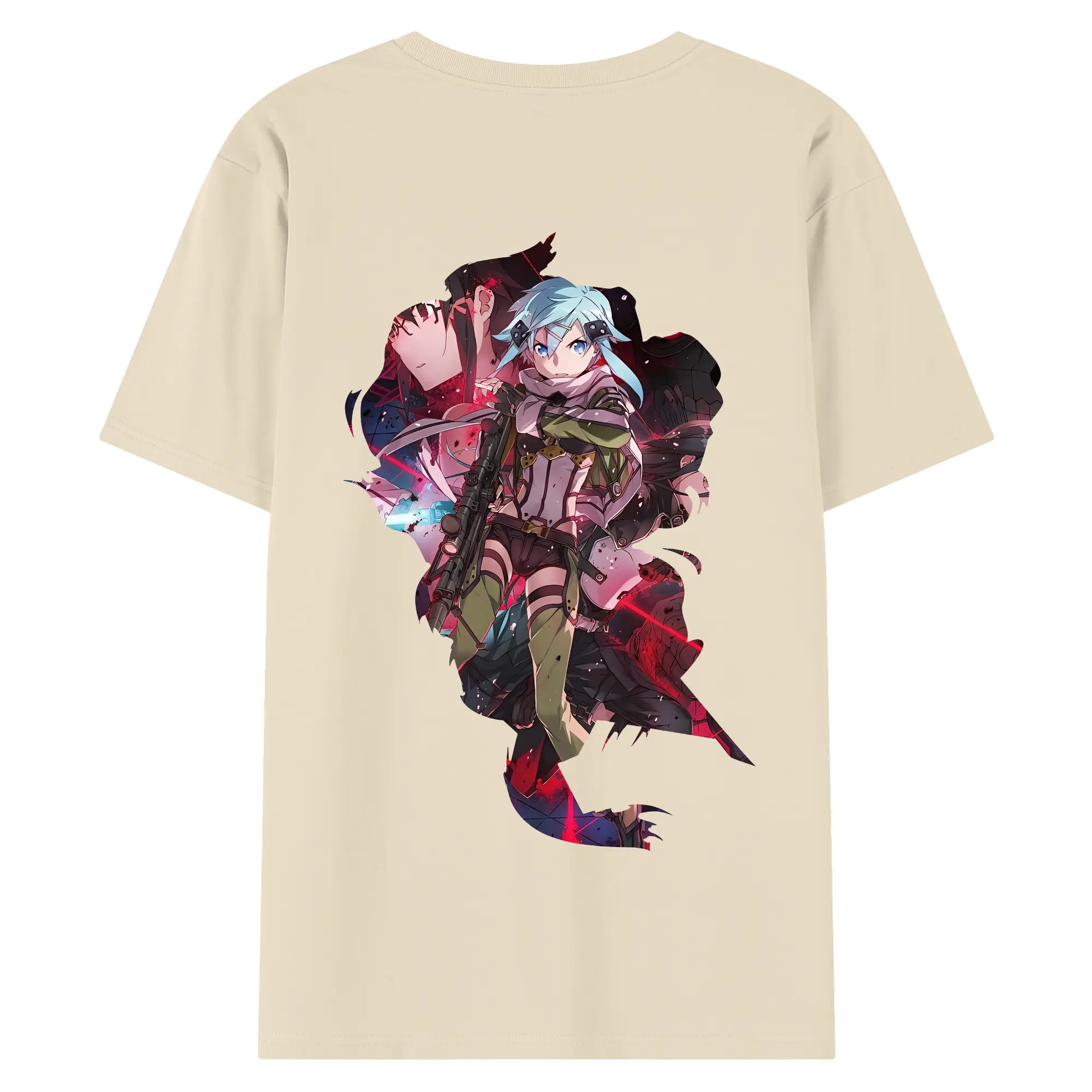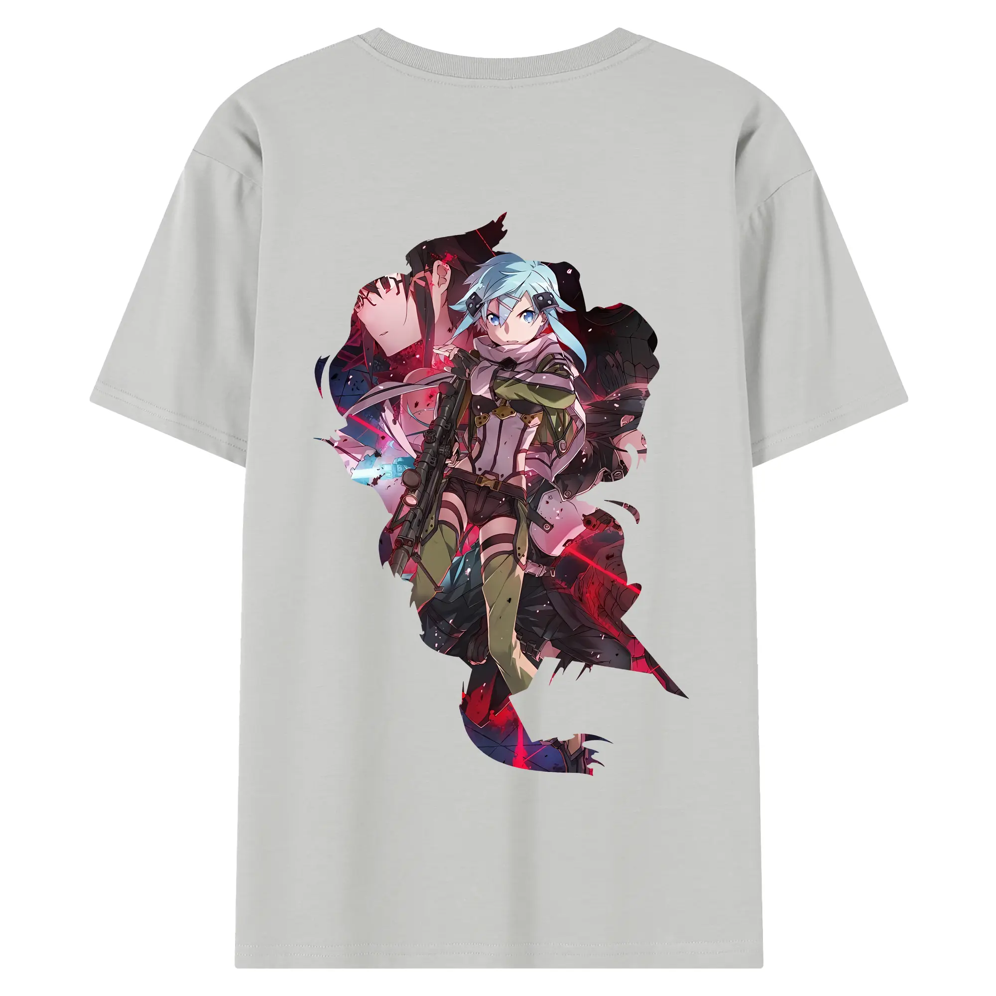 ソードアートオンライン グッズ シノン - 綿100% ヴィンテージ風 半袖Tシャツ ・ 背面プリント ・ 柔らか肌触り ・ 通気性 快適 ・ スポーツ カジュアル 外出用