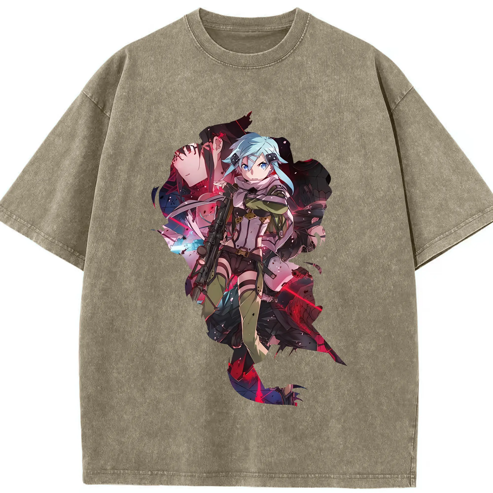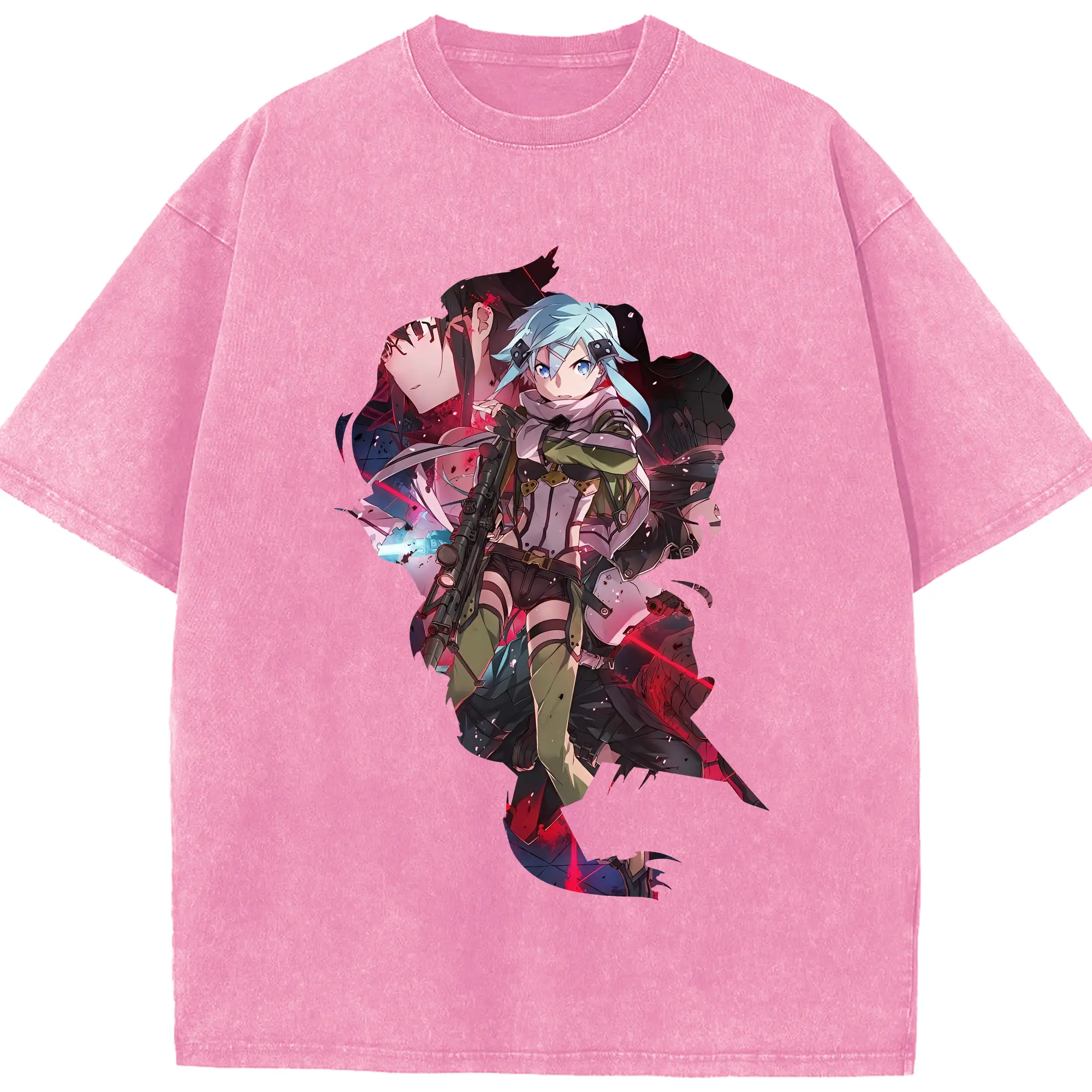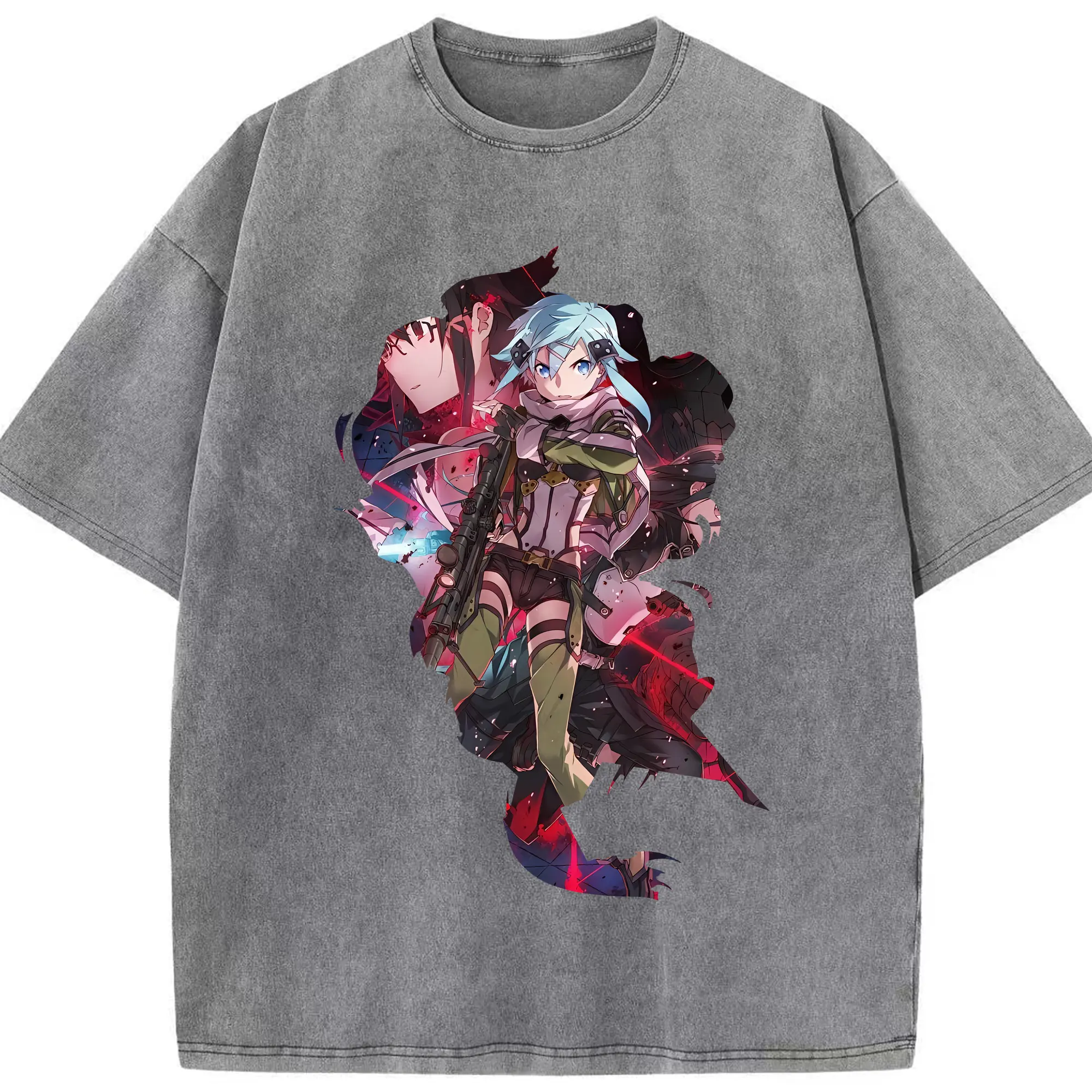 ソードアートオンライン グッズ シノン - 綿100% ヴィンテージ風 半袖Tシャツ ・ 背面プリント ・ 柔らか肌触り ・ 通気性 快適 ・ スポーツ カジュアル 外出用