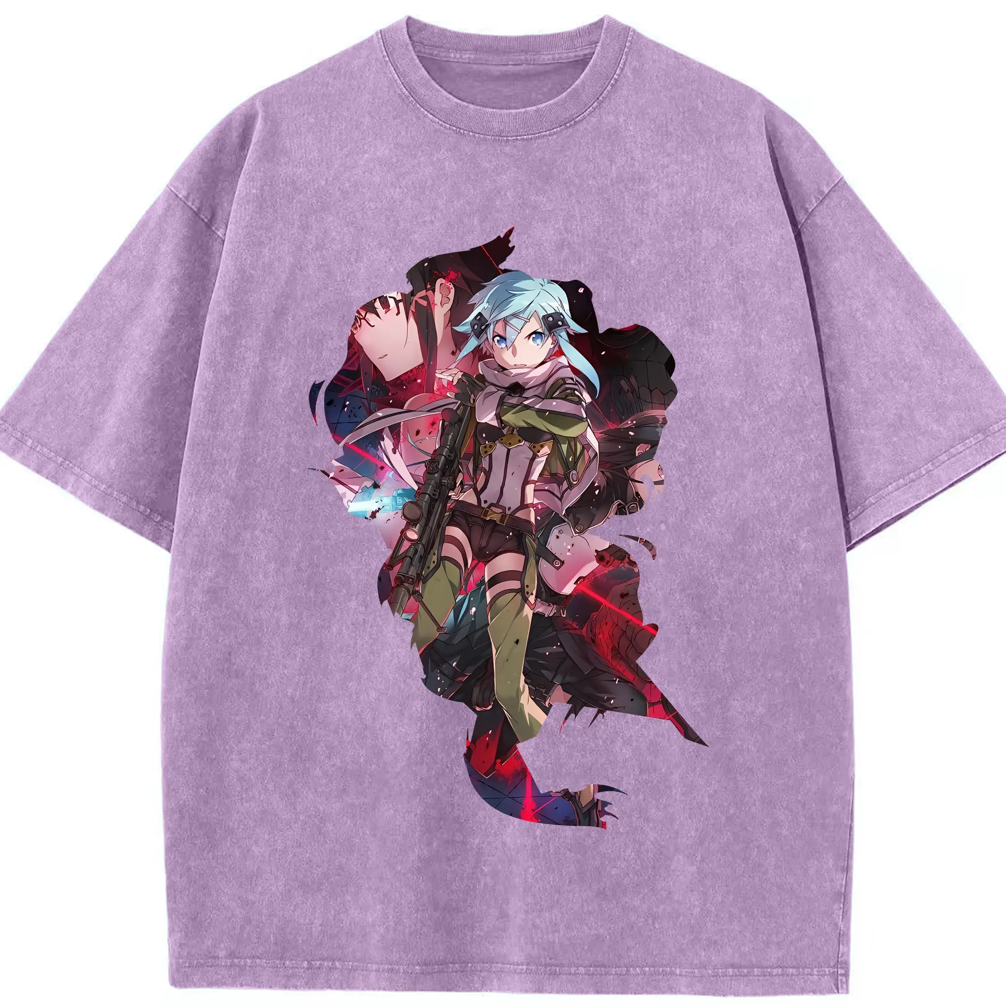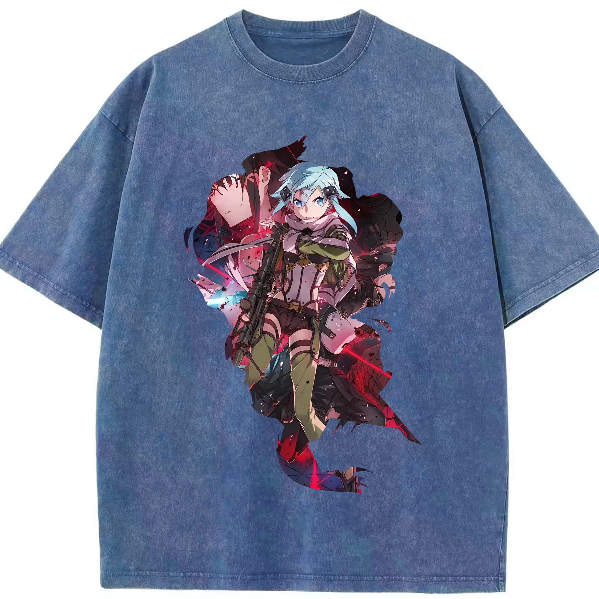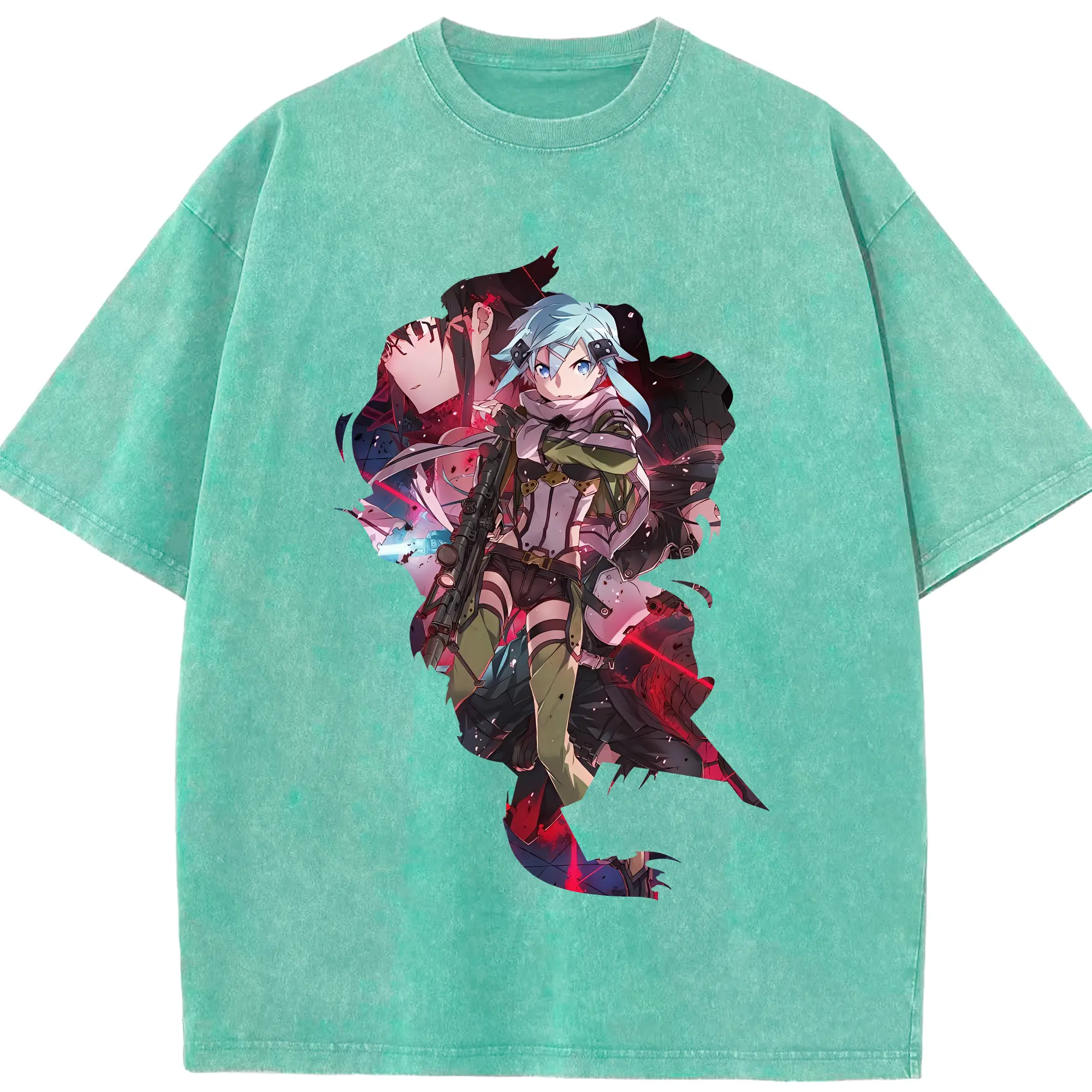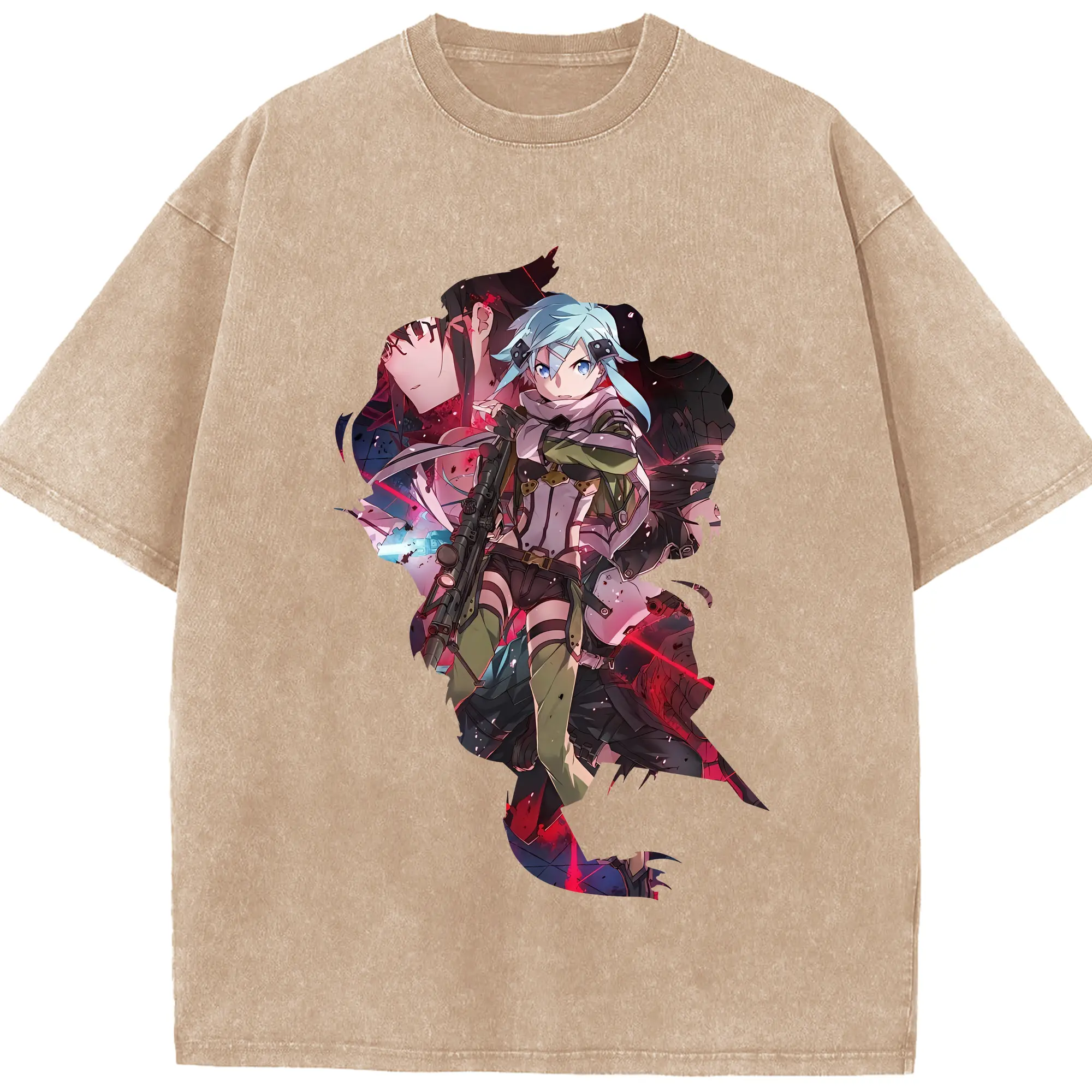 ソードアートオンライン グッズ シノン - 綿100% ヴィンテージ風 半袖Tシャツ ・ 背面プリント ・ 柔らか肌触り ・ 通気性 快適 ・ スポーツ カジュアル 外出用