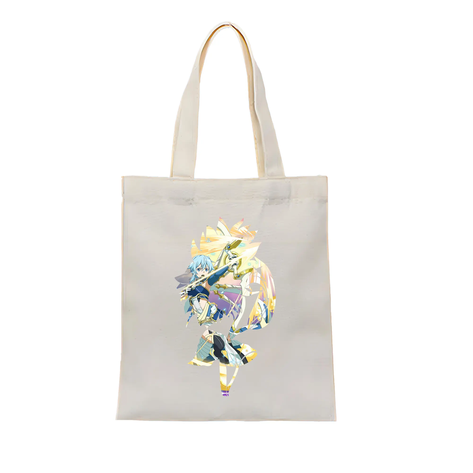 ソードアートオンライン グッズ シノン - 縦型キャンバス手提げバッグ(トートバッグ) ・ キャンバス素材 ・ ショッピング用 ・ 軽量 丈夫 お手入れ簡単