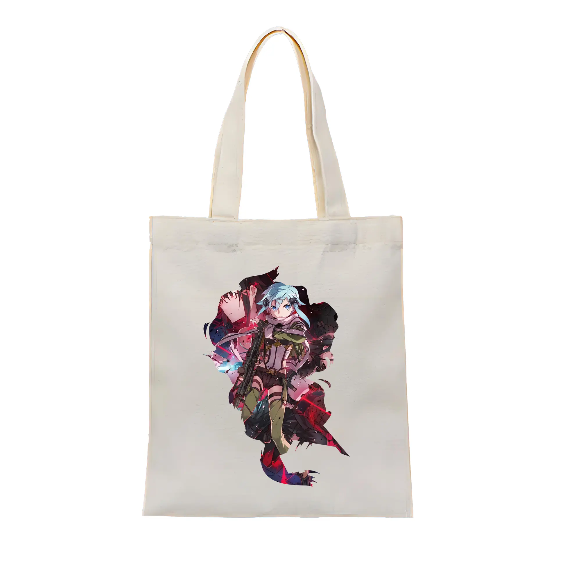 ソードアートオンライン グッズ シノン - 縦型キャンバス手提げバッグ(トートバッグ) ・ キャンバス素材 ・ ショッピング用 ・ 軽量 丈夫 お手入れ簡単