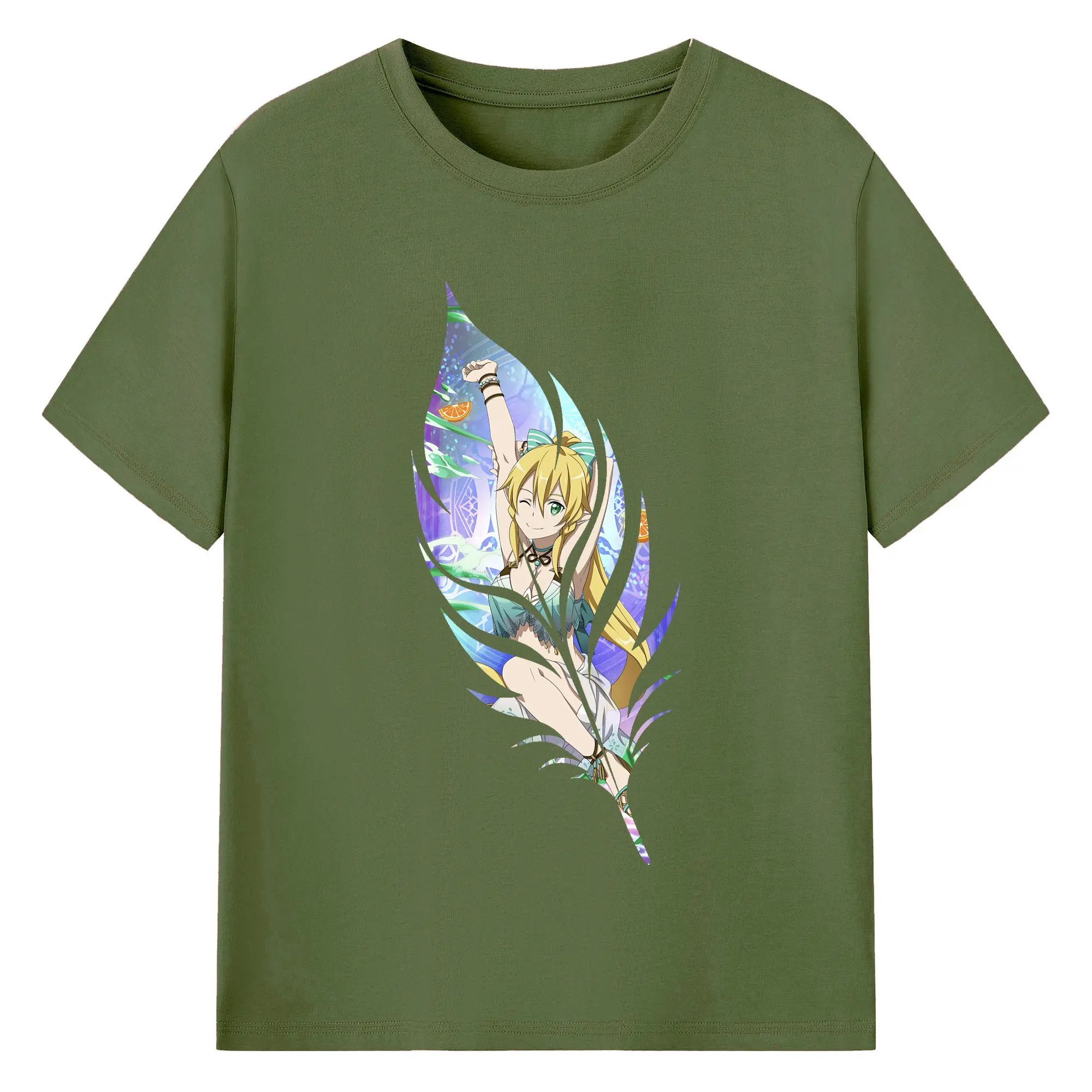 ソードアートオンライン グッズ リーファ - 綿100% 半袖Tシャツ ・ バックプリント ・ 快適 通気性 ・ 日常使い 散歩 スポーツ用