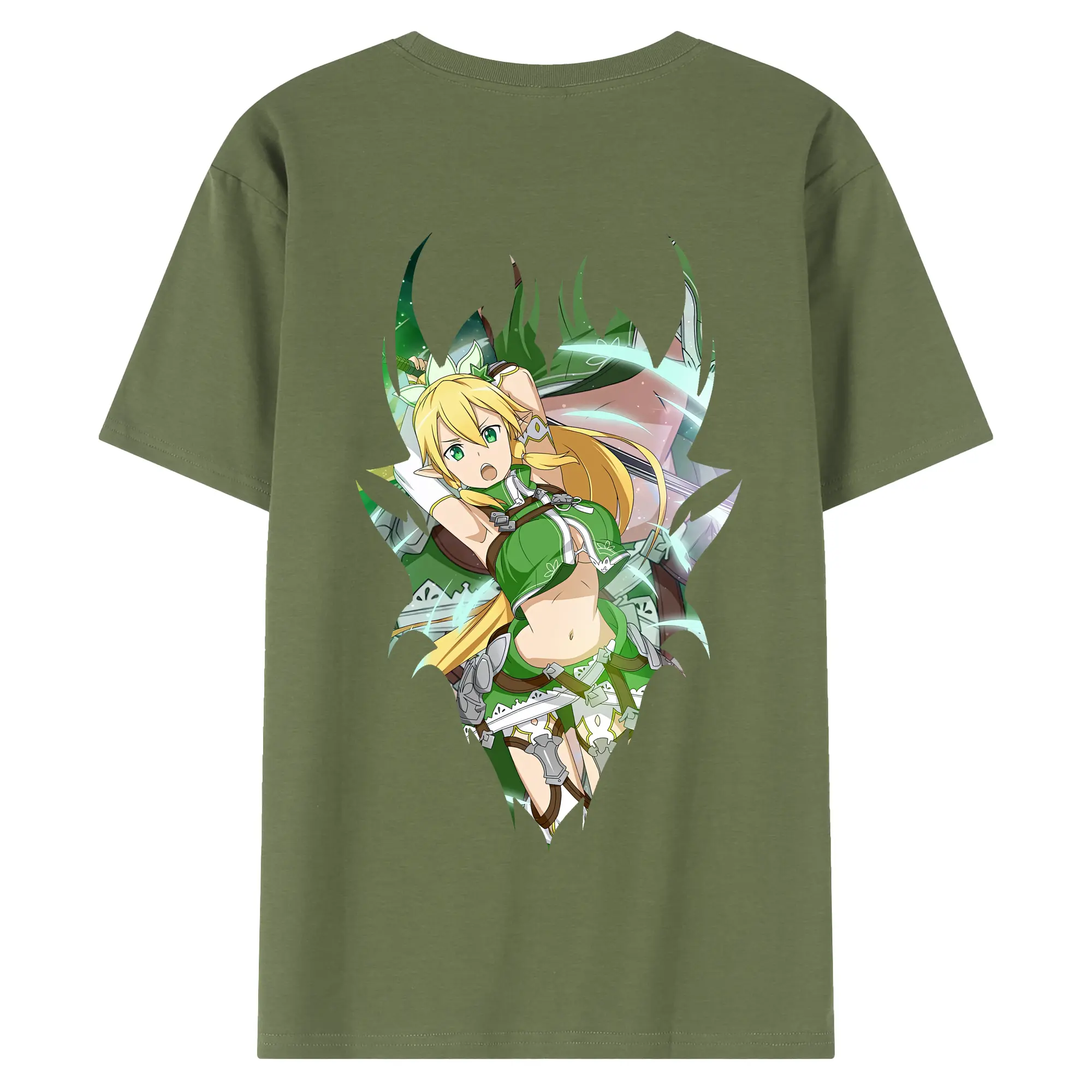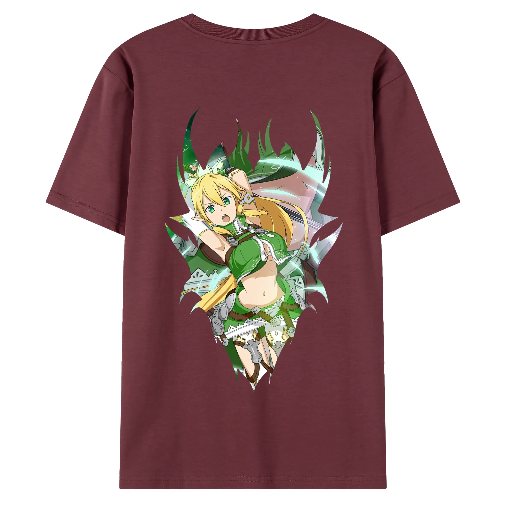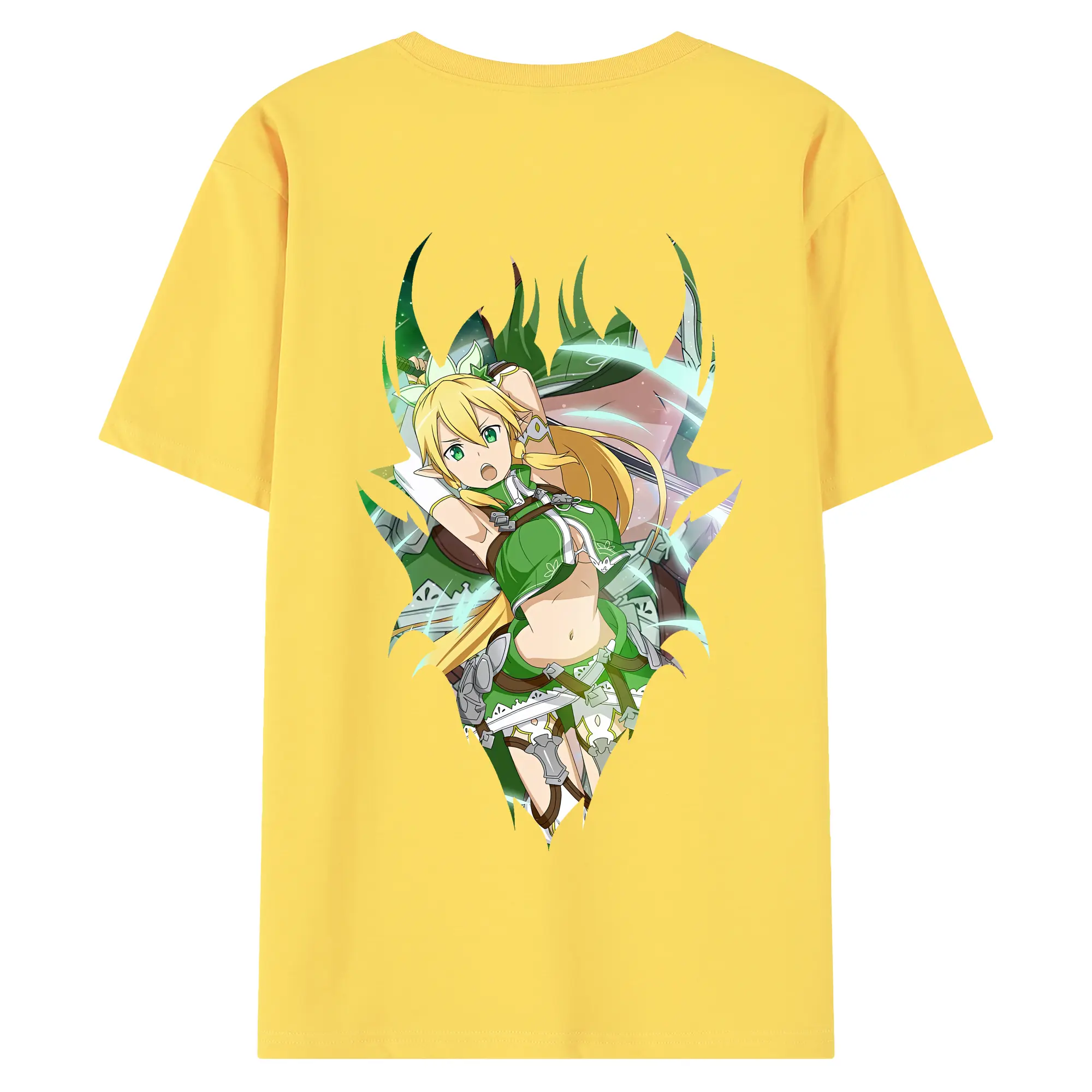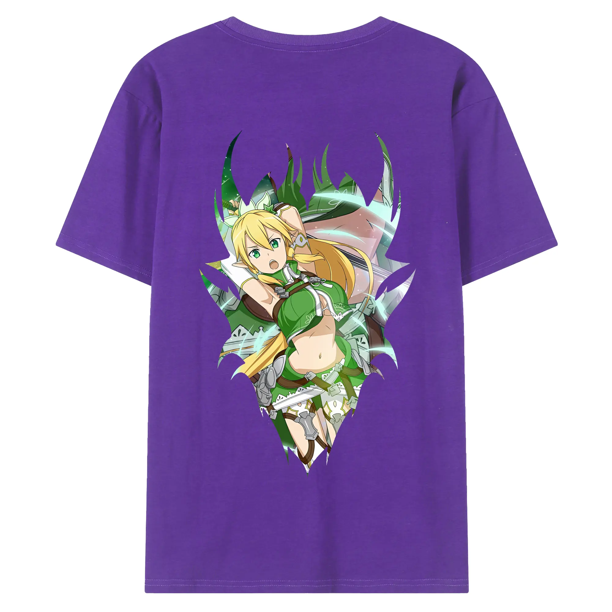 ソードアートオンライン グッズ リーファ - 綿100% 半袖Tシャツ ・ フロントプリント ・ 快適 通気性 ・ 日常使い 散歩 スポーツ用