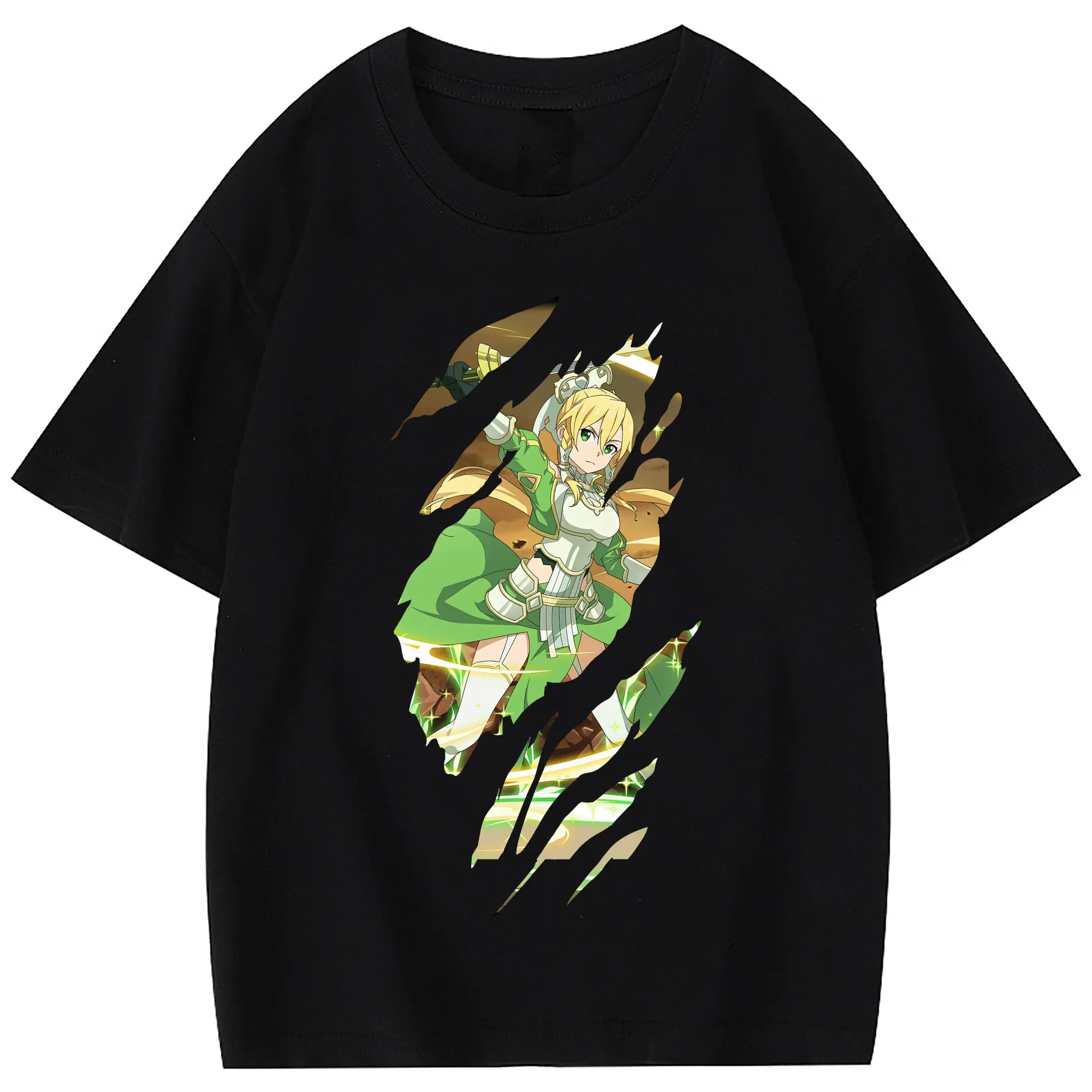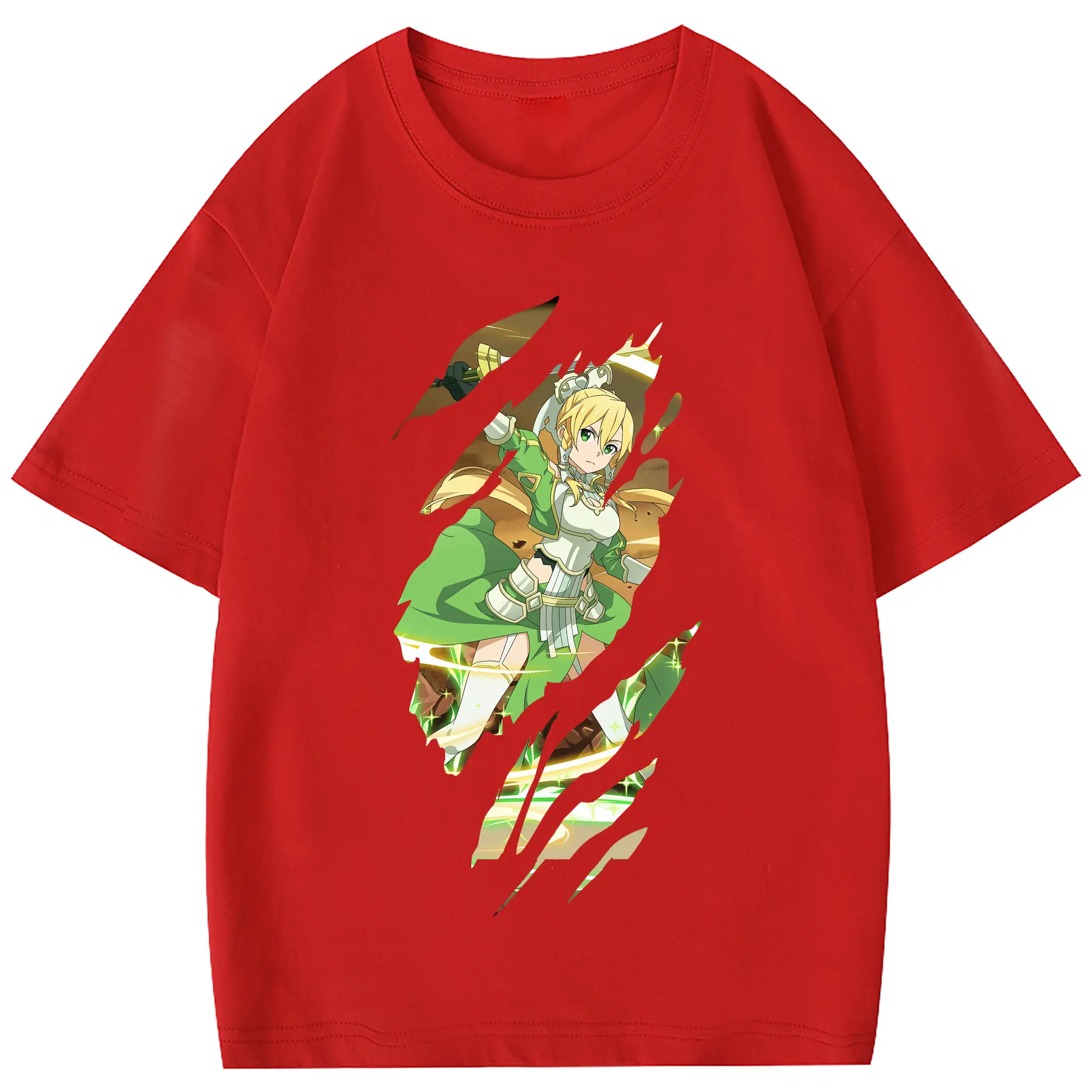 ソードアートオンライン グッズ リーファ - 綿100% 半袖Tシャツ ・ フロントプリント ・ 快適 通気性 ・ 日常使い 散歩 スポーツ用