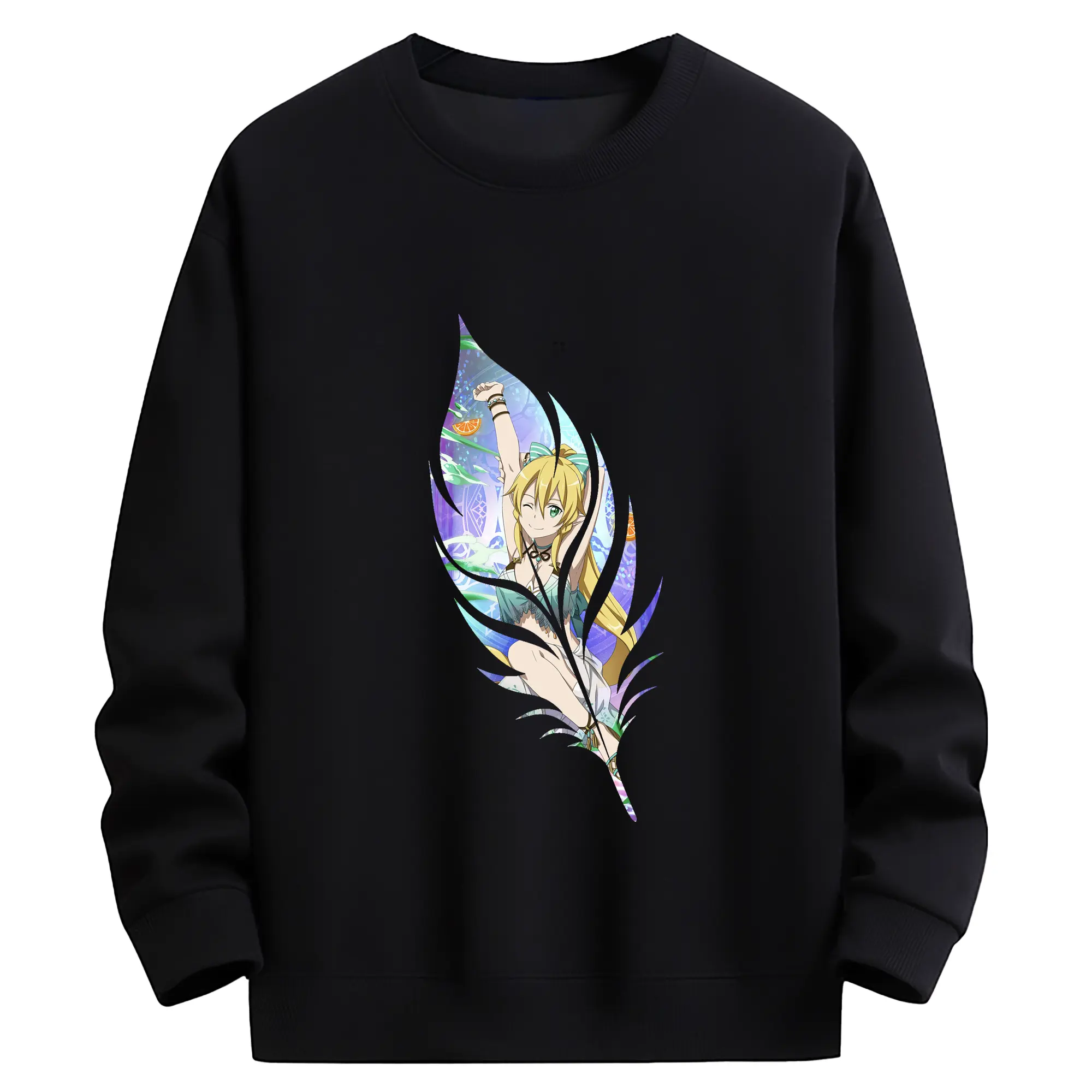 ソードアートオンライン グッズ リーファ - 高品質 クルーネック スウェット ・ コットン59% ポリエステル41% ・ ユニセックス 長袖 トレーナー ・ カジュアル デイリー スポーツ 散歩用