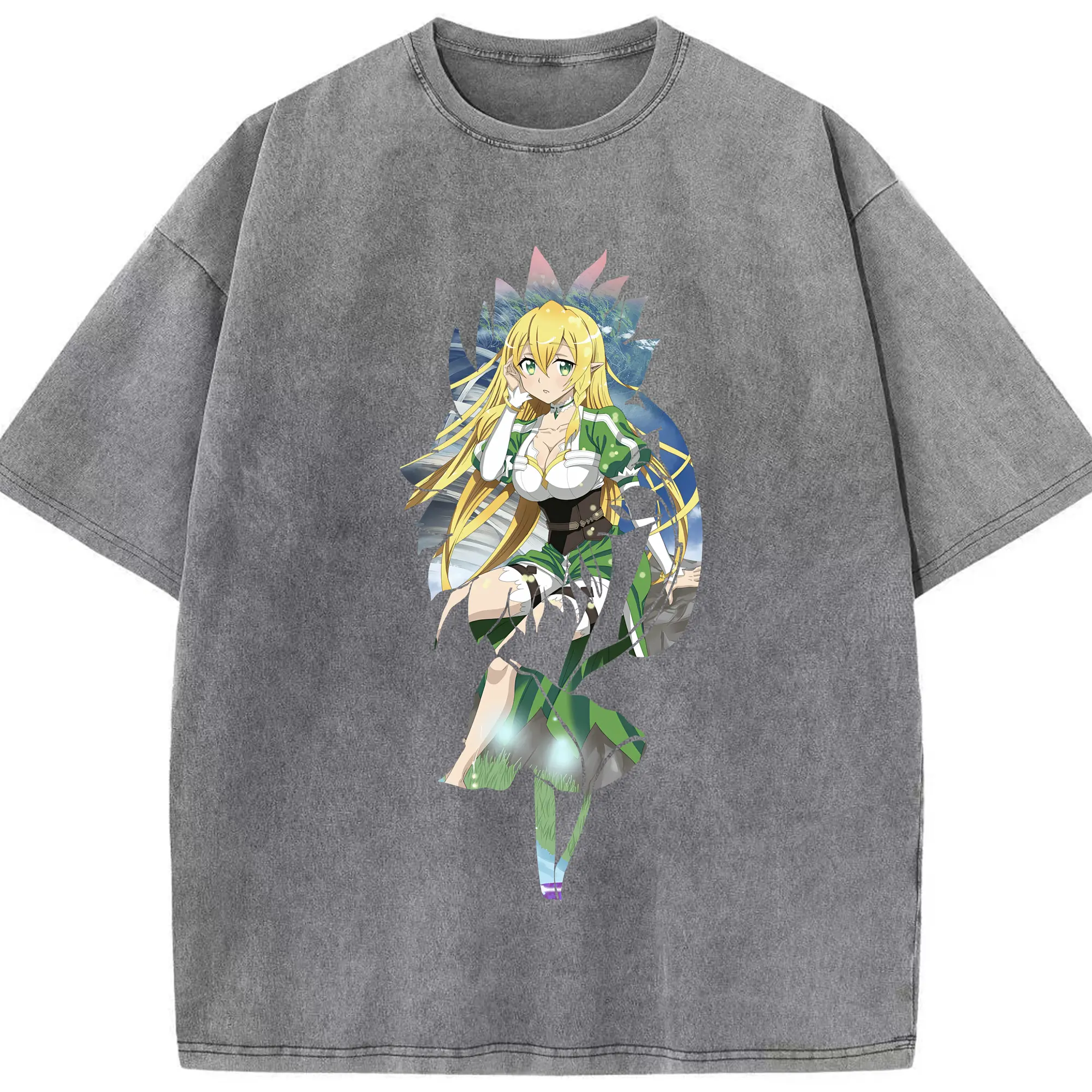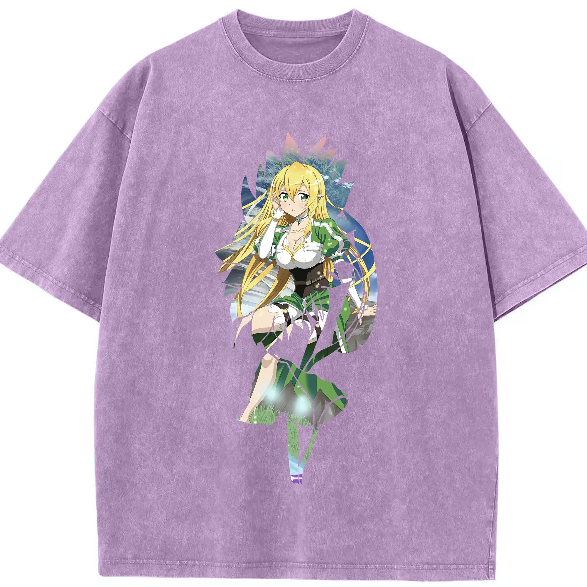 ソードアートオンライン グッズ リーファ - 綿100% ヴィンテージ風 半袖Tシャツ ・ 背面プリント ・ 柔らか肌触り ・ 通気性 快適 ・ スポーツ カジュアル 外出用