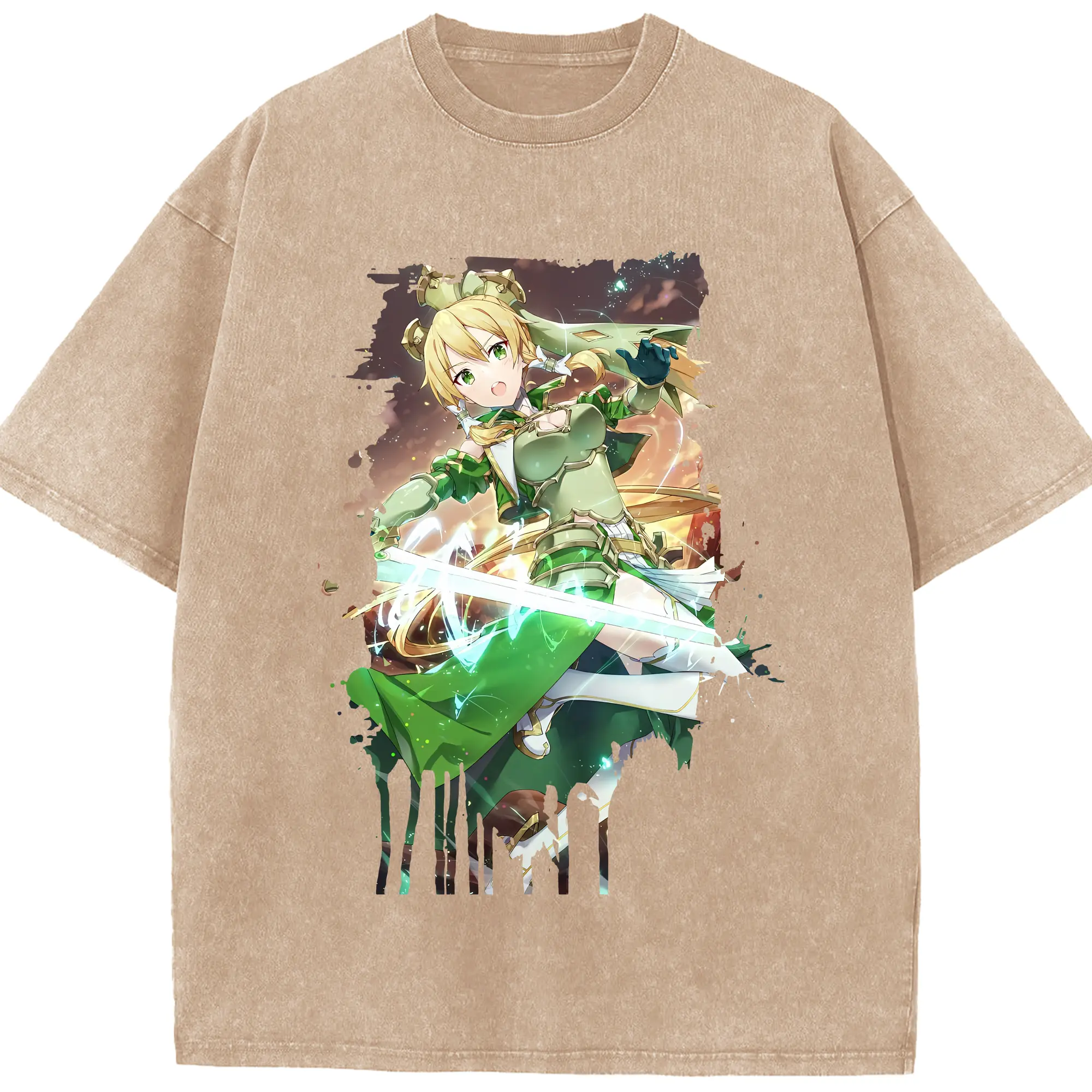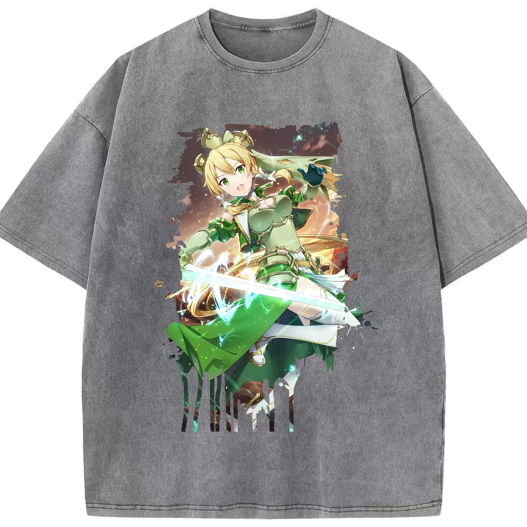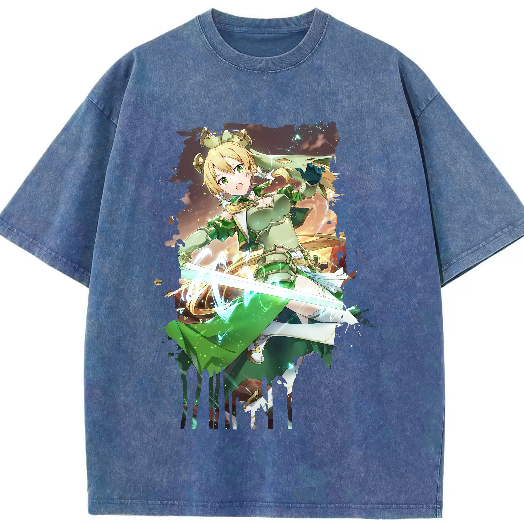 ソードアートオンライン グッズ リーファ - 綿100% ヴィンテージ風 半袖Tシャツ ・ 背面プリント ・ 柔らか肌触り ・ 通気性 快適 ・ スポーツ カジュアル 外出用
