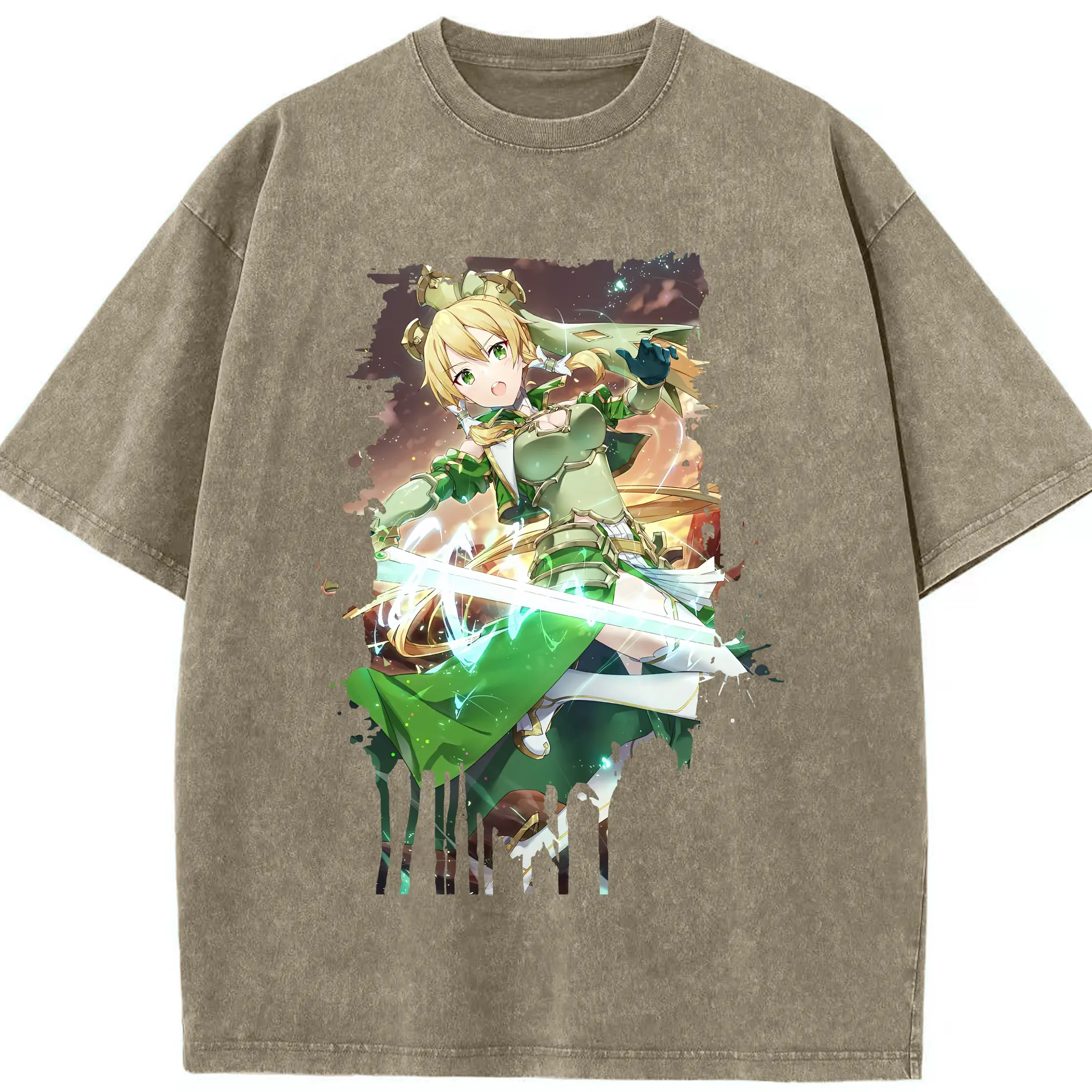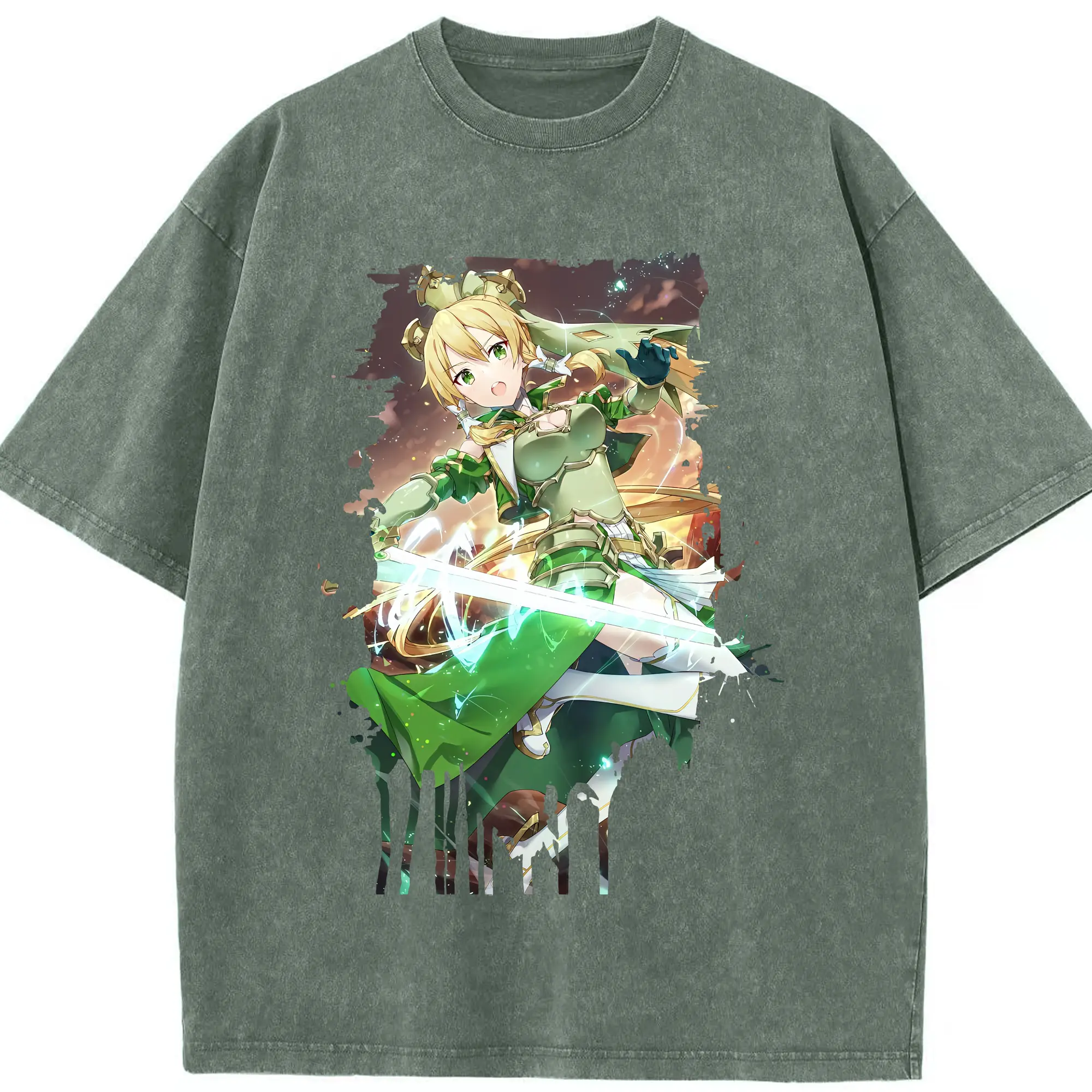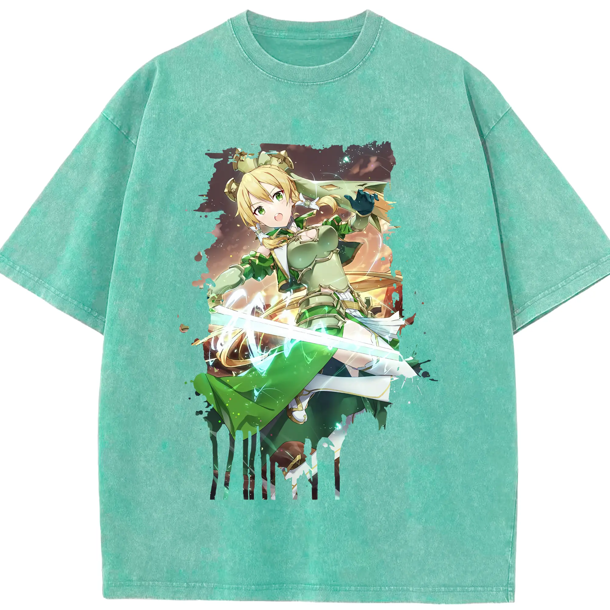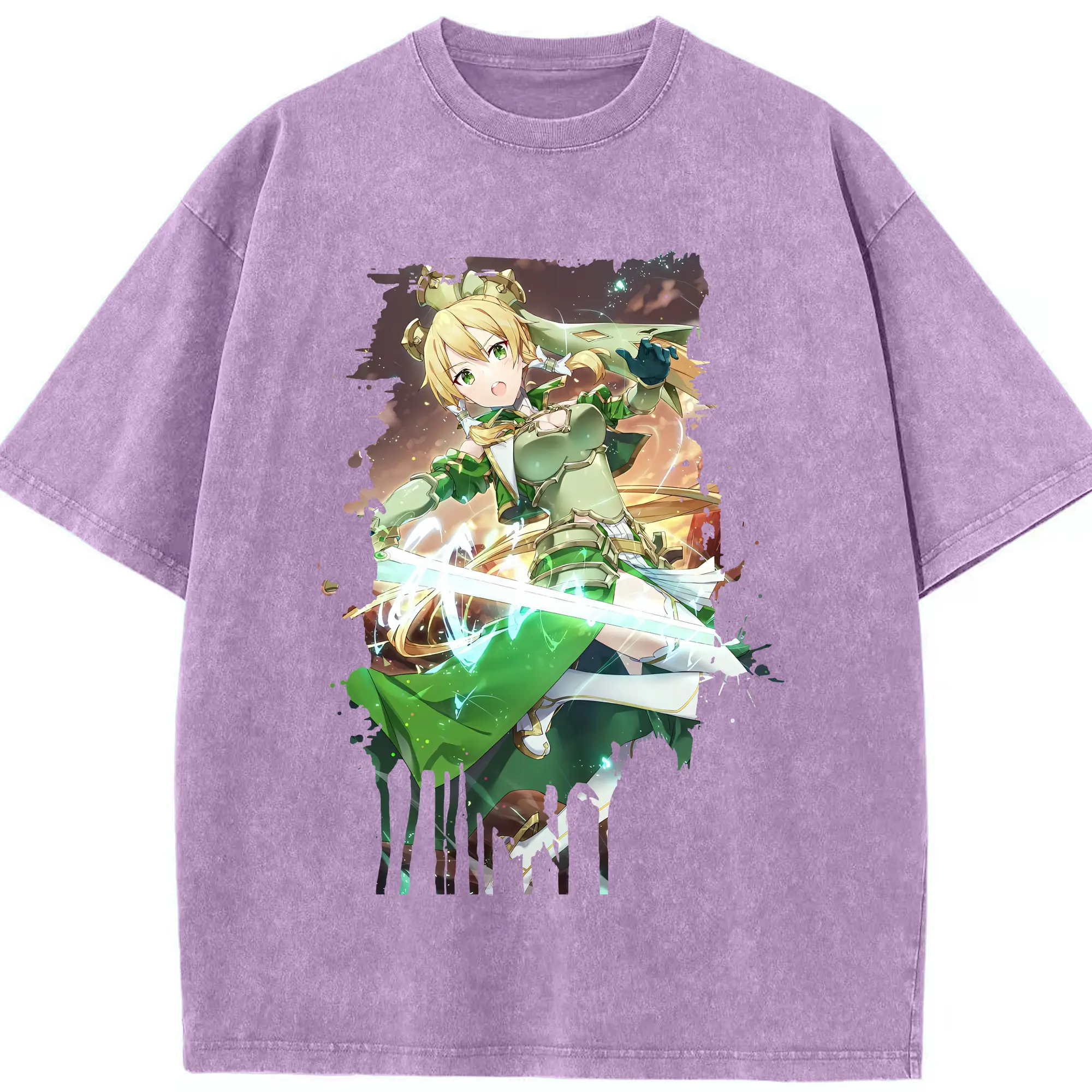 ソードアートオンライン グッズ リーファ - 綿100% ヴィンテージ風 半袖Tシャツ ・ 背面プリント ・ 柔らか肌触り ・ 通気性 快適 ・ スポーツ カジュアル 外出用
