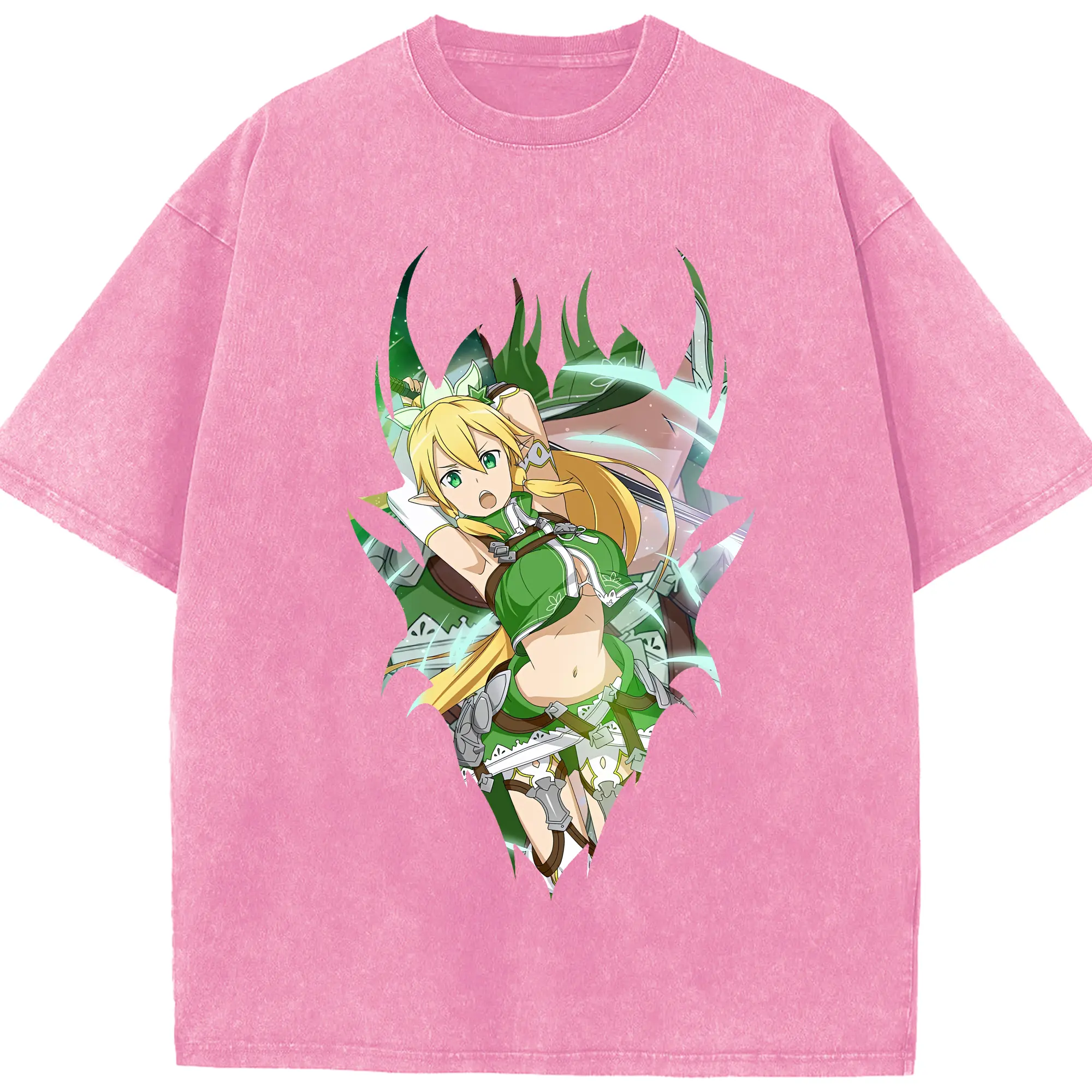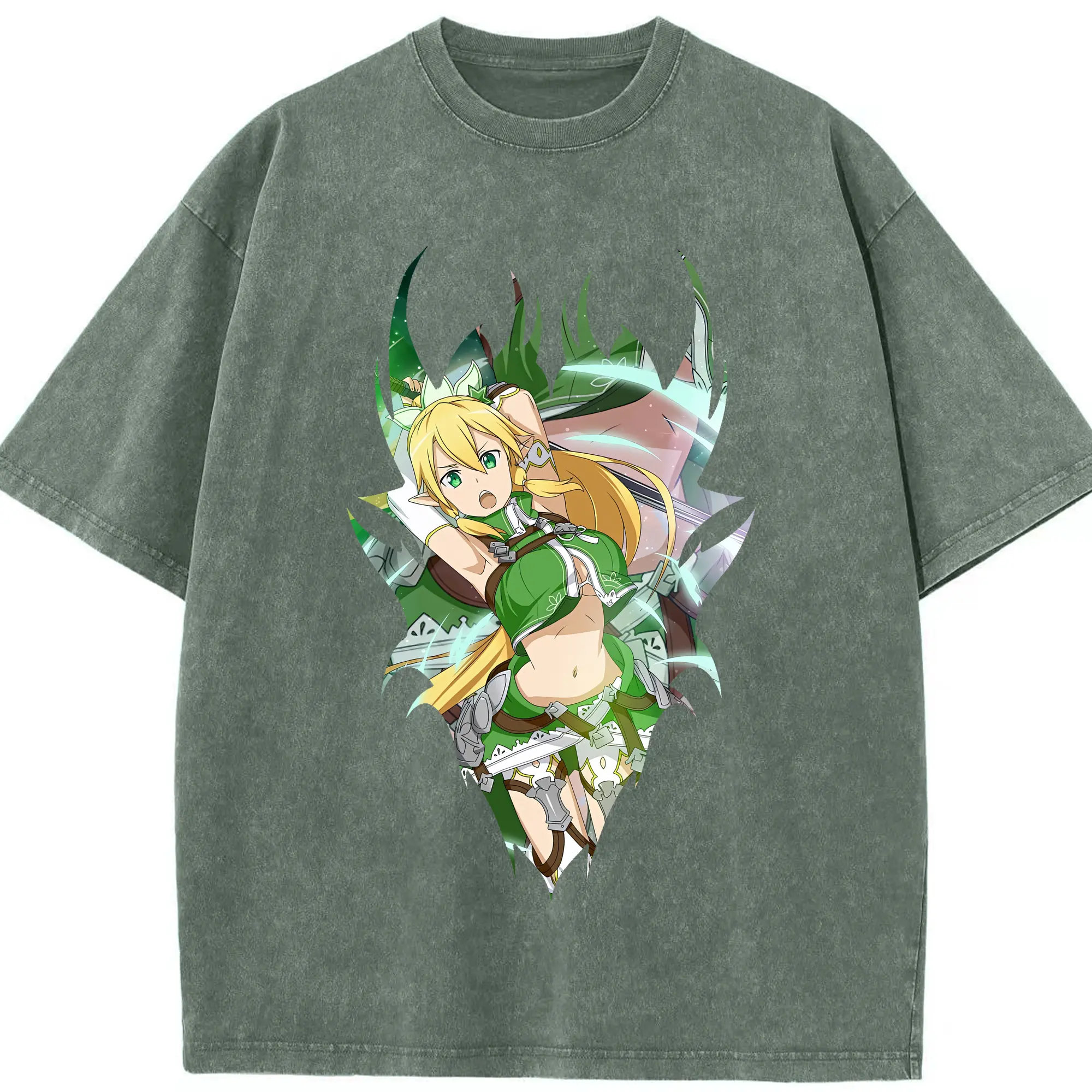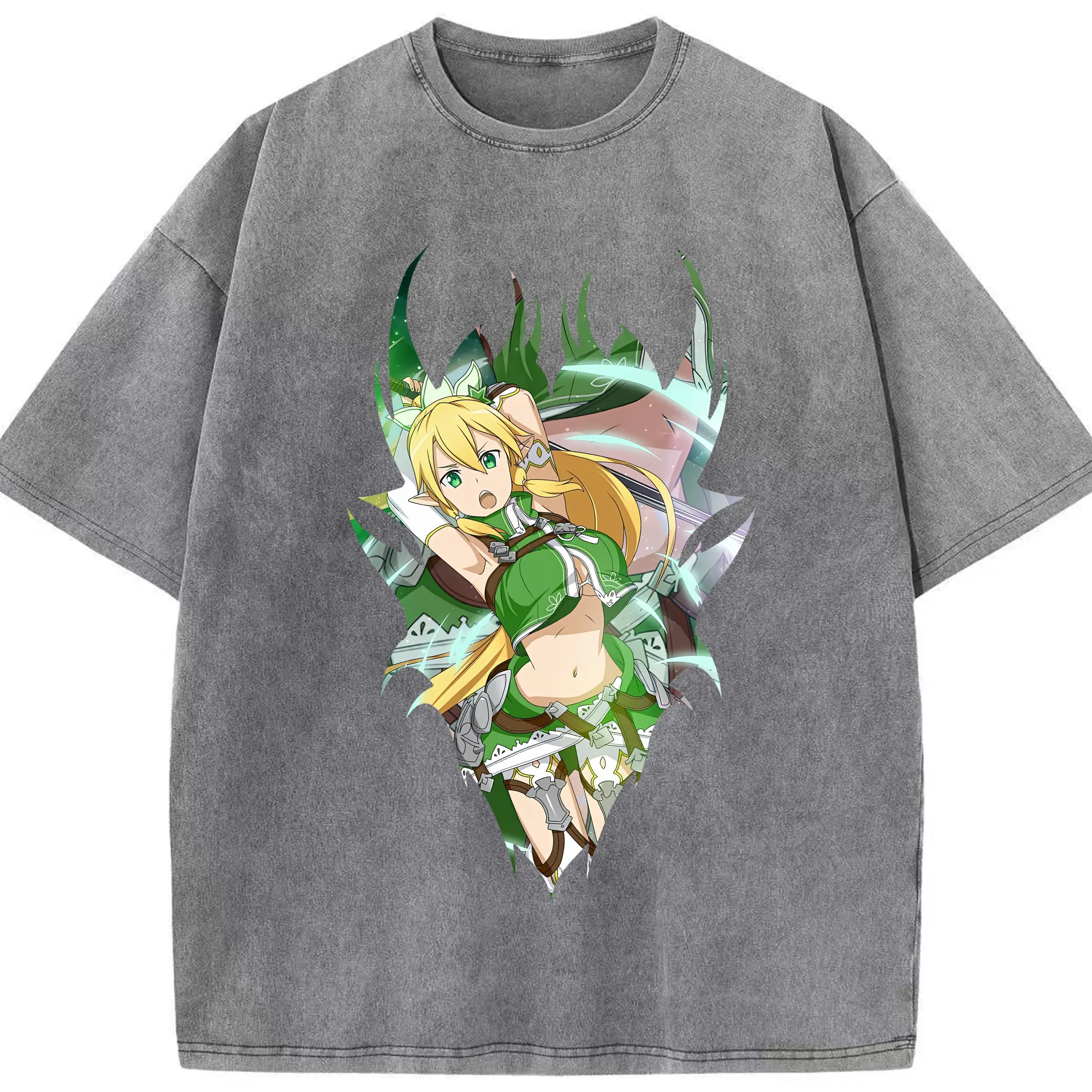 ソードアートオンライン グッズ リーファ - 綿100% ヴィンテージ風 半袖Tシャツ ・ 背面プリント ・ 柔らか肌触り ・ 通気性 快適 ・ スポーツ カジュアル 外出用