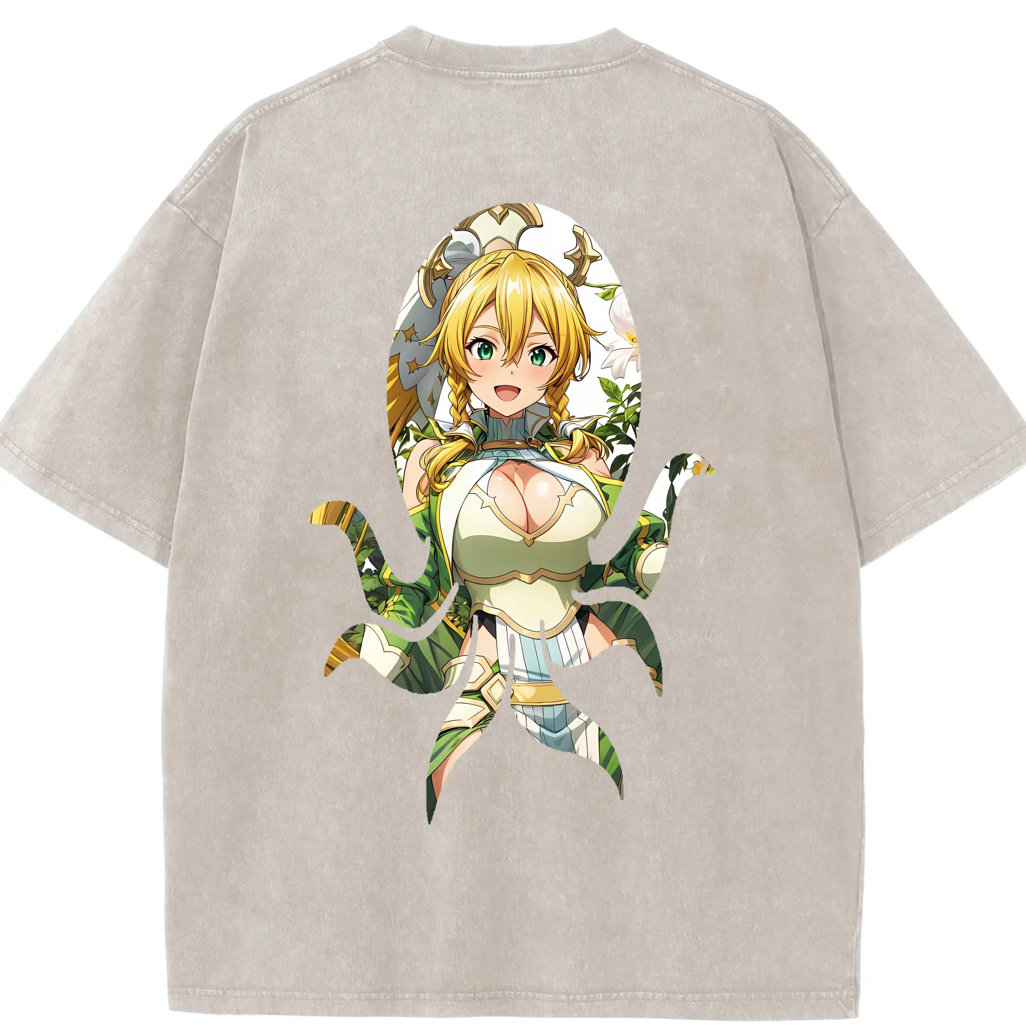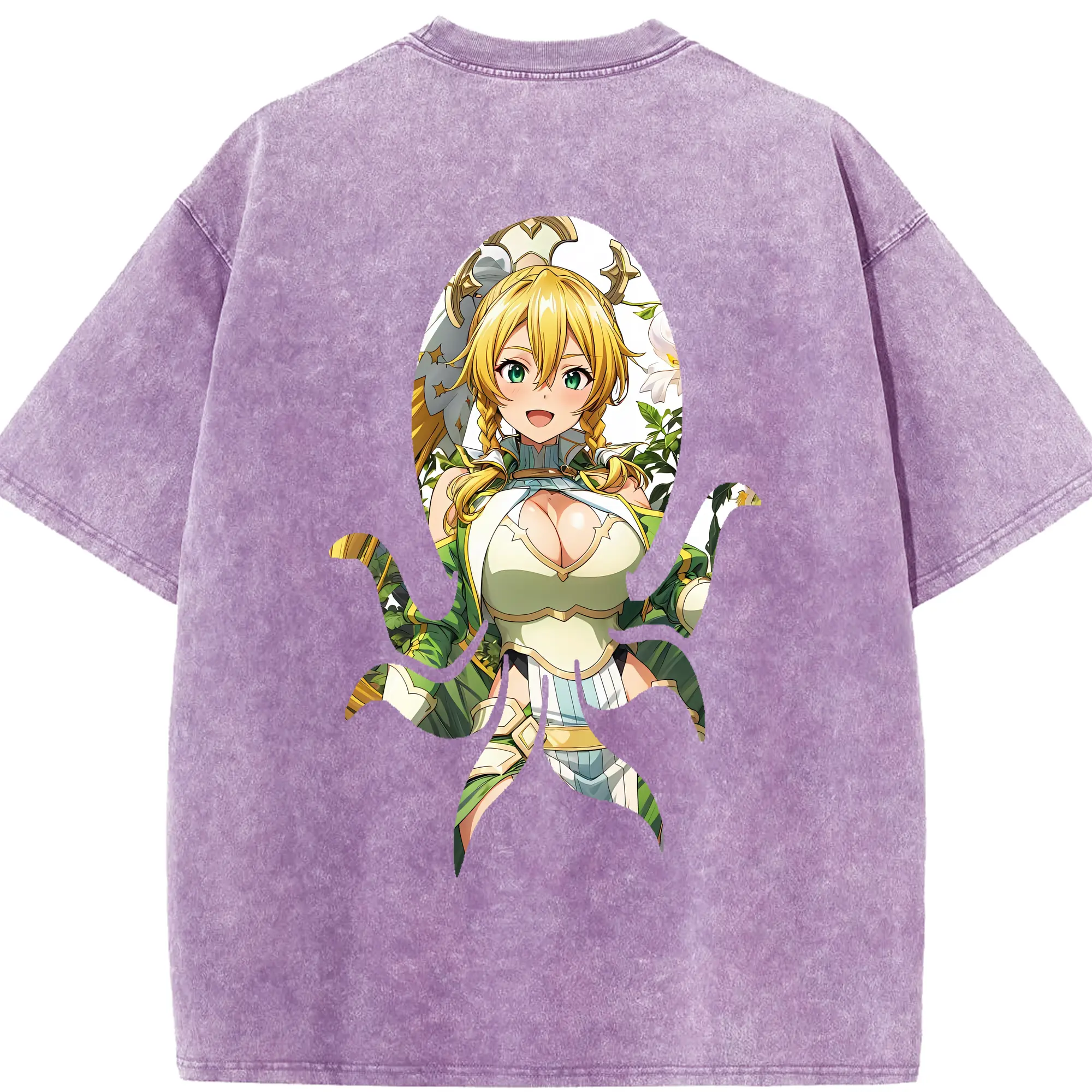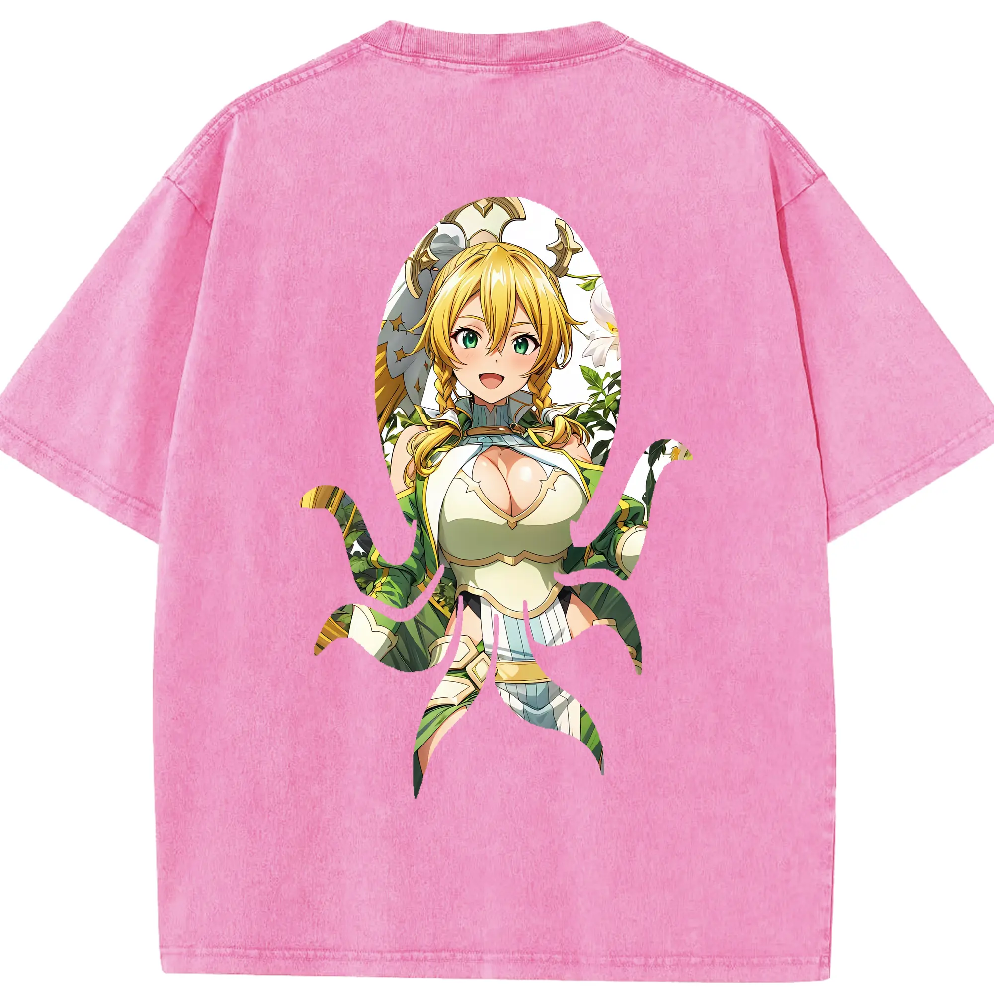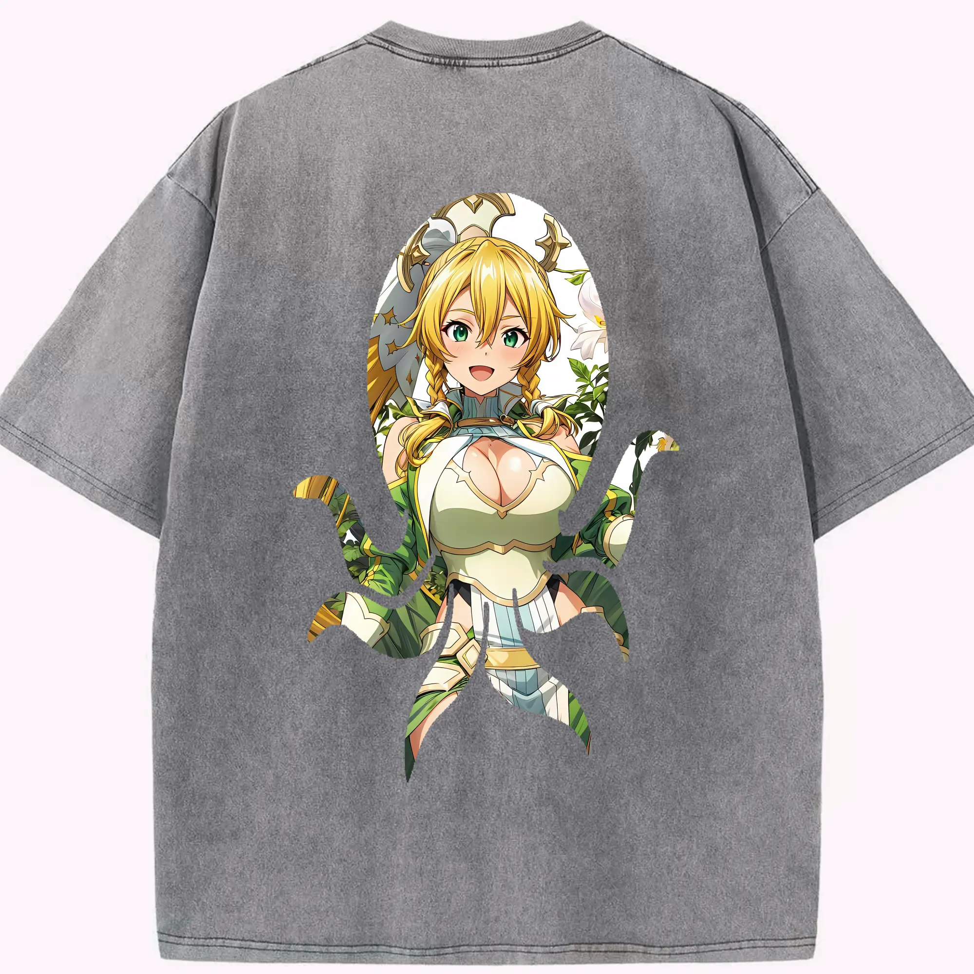 ソードアートオンライン グッズ リーファ - 綿100% ヴィンテージ風 半袖Tシャツ ・ フロントプリント ・ 柔らか肌触り ・ 通気性 快適 ・ スポーツ カジュアル 外出用