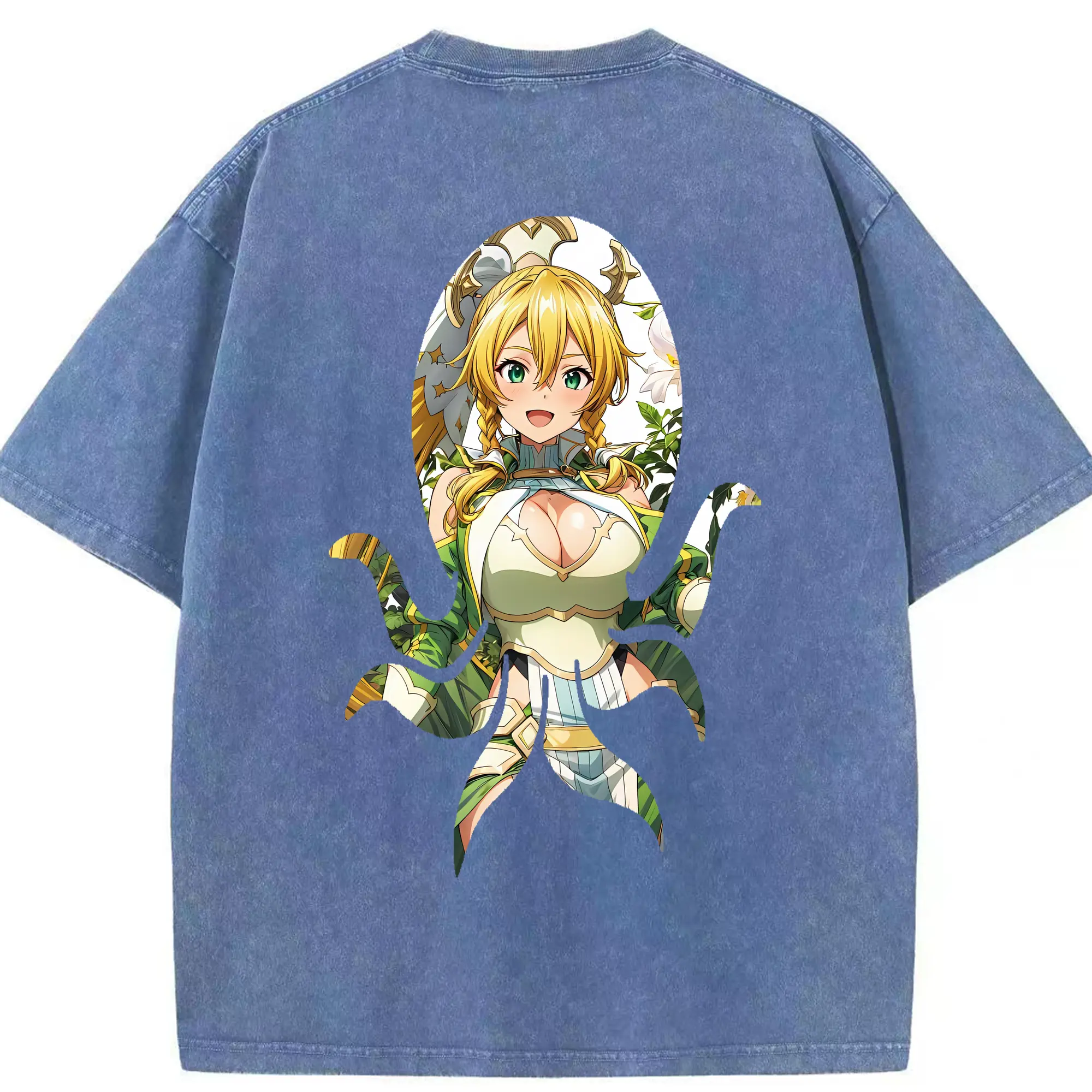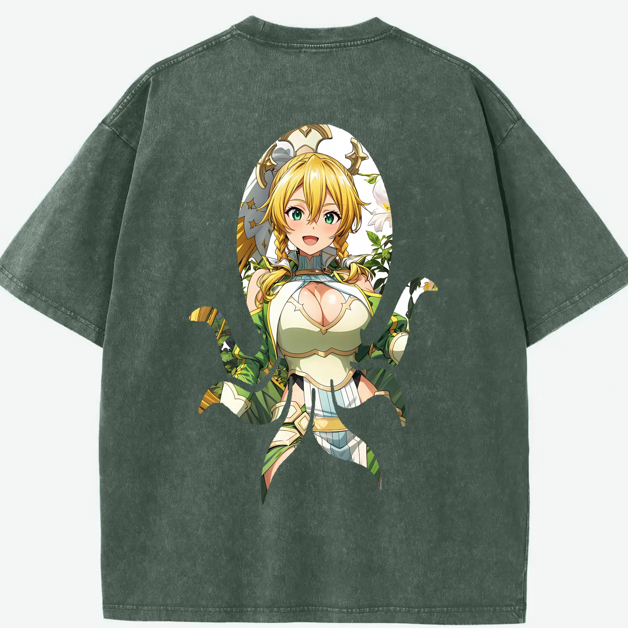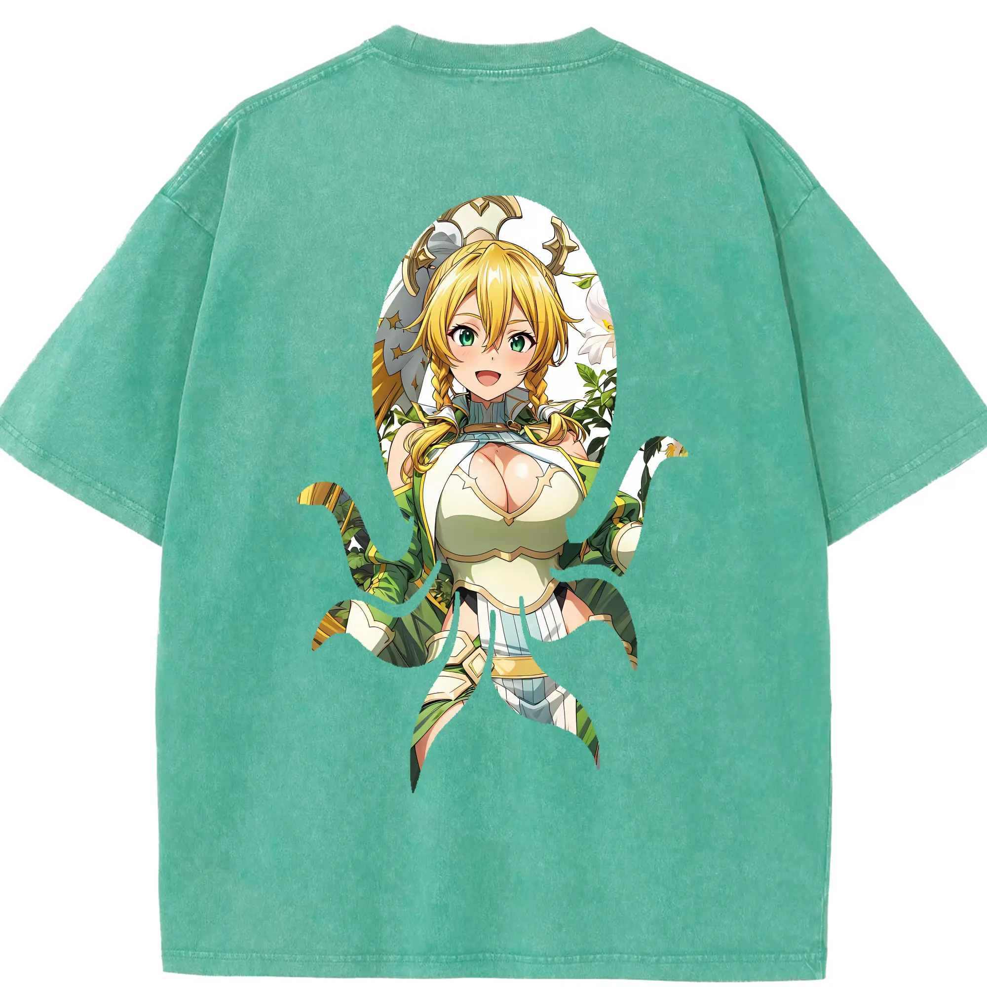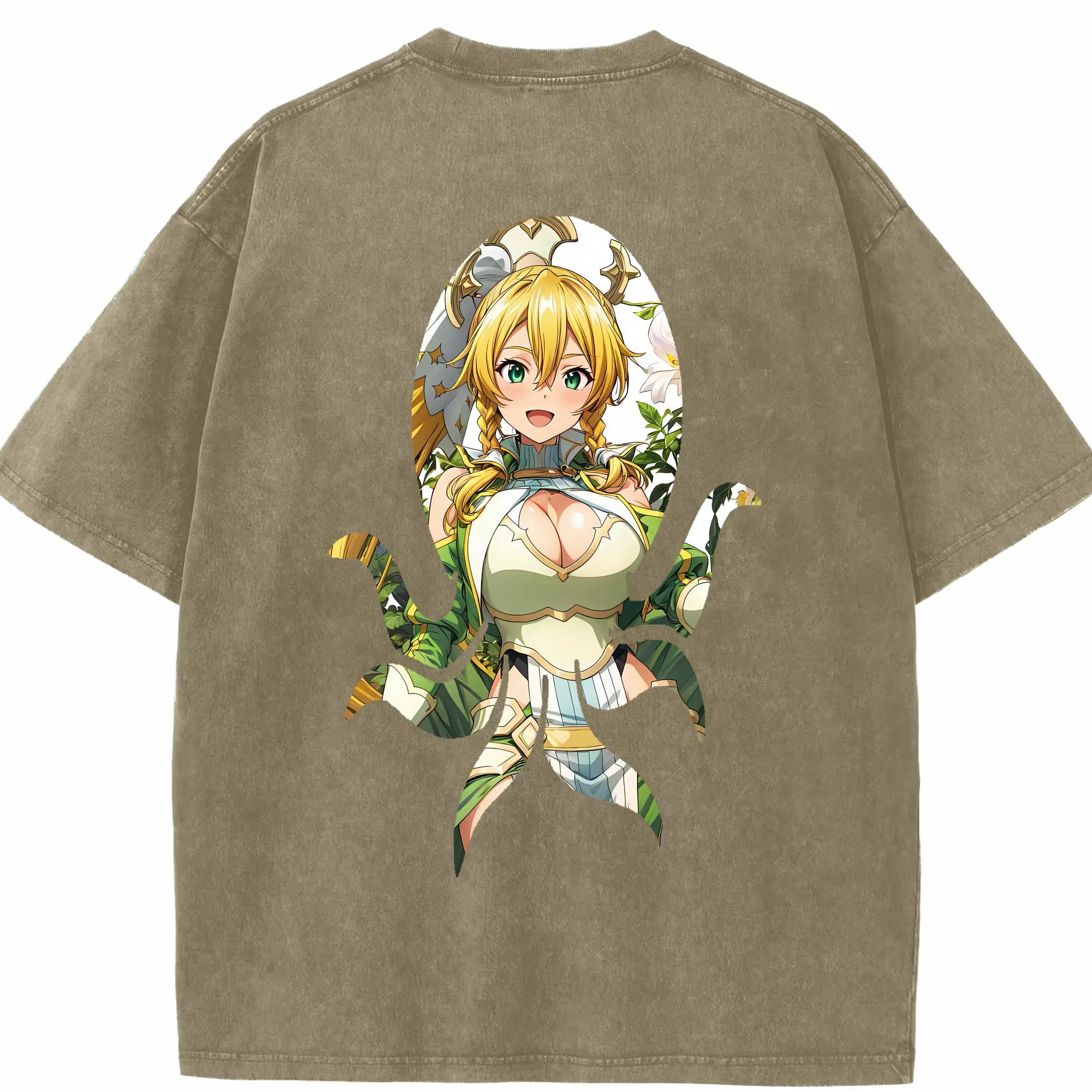 ソードアートオンライン グッズ リーファ - 綿100% ヴィンテージ風 半袖Tシャツ ・ フロントプリント ・ 柔らか肌触り ・ 通気性 快適 ・ スポーツ カジュアル 外出用