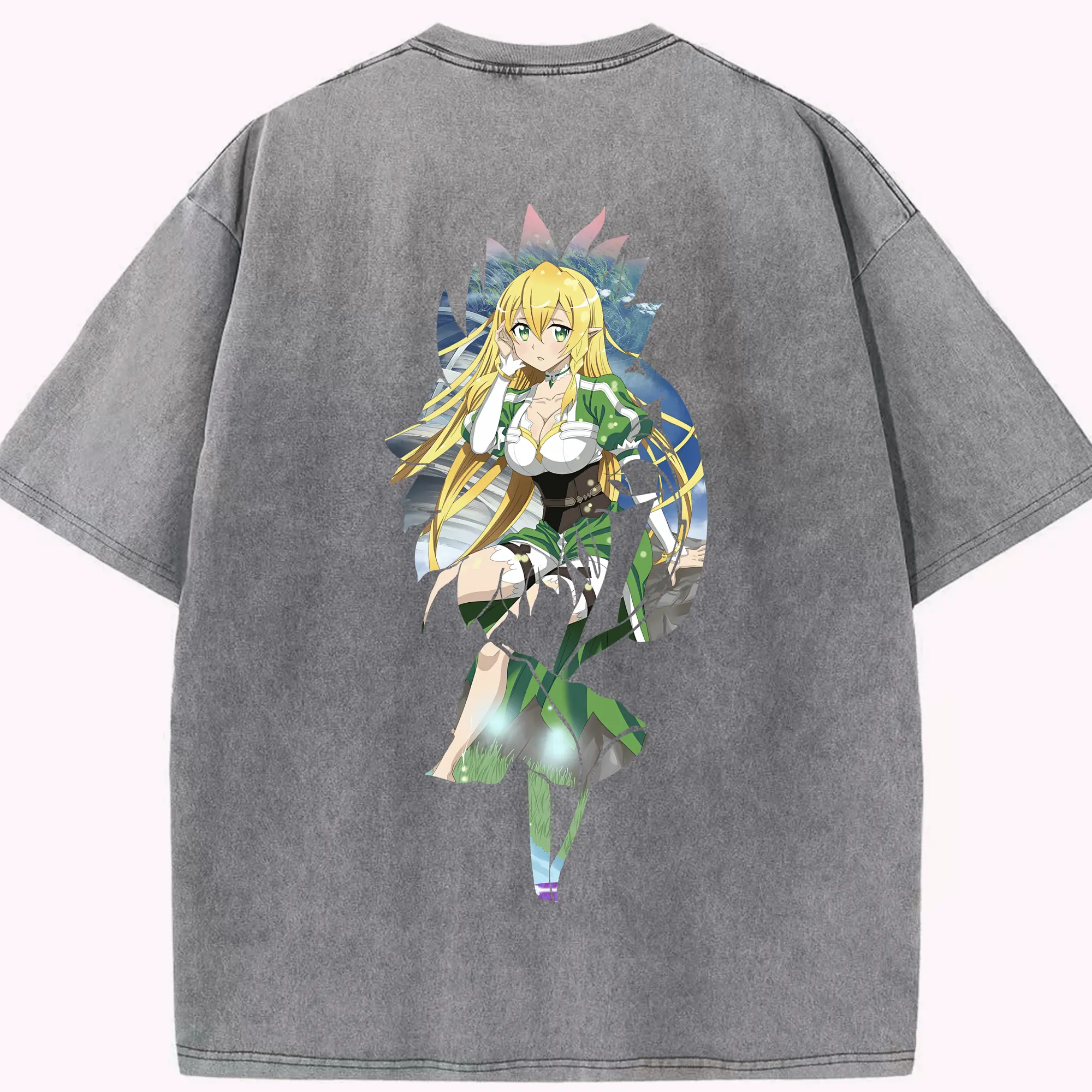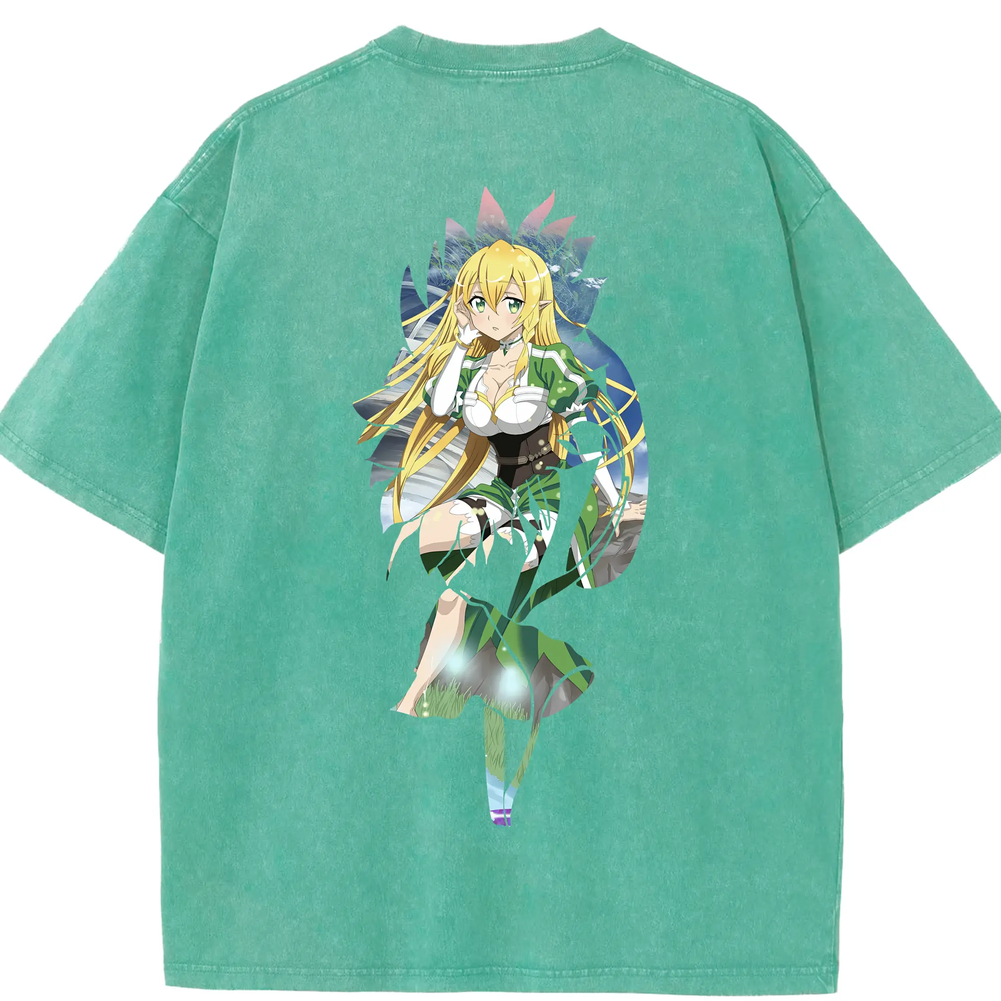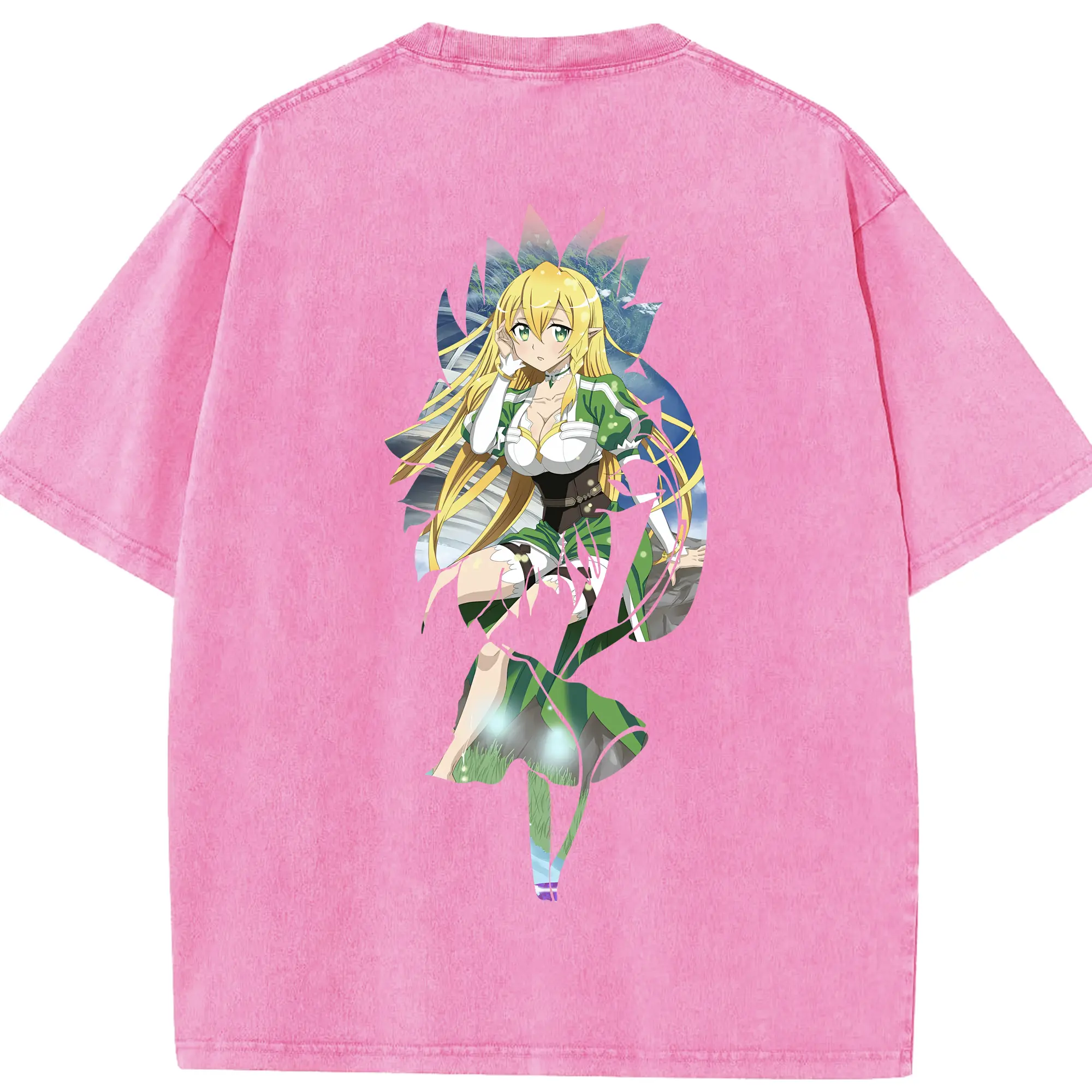 ソードアートオンライン グッズ リーファ - 綿100% ヴィンテージ風 半袖Tシャツ ・ フロントプリント ・ 柔らか肌触り ・ 通気性 快適 ・ スポーツ カジュアル 外出用