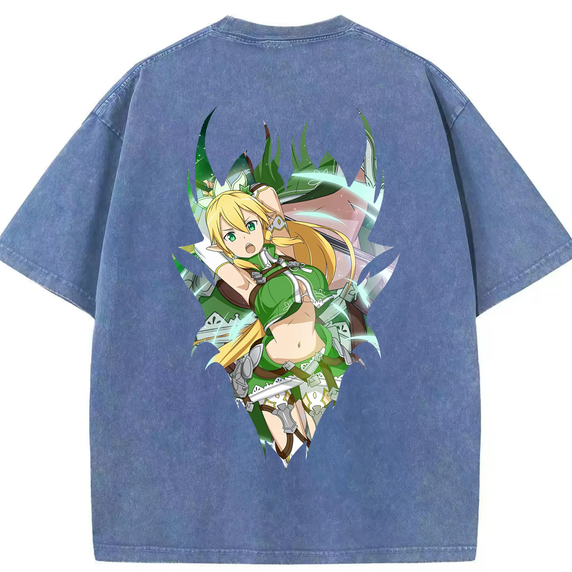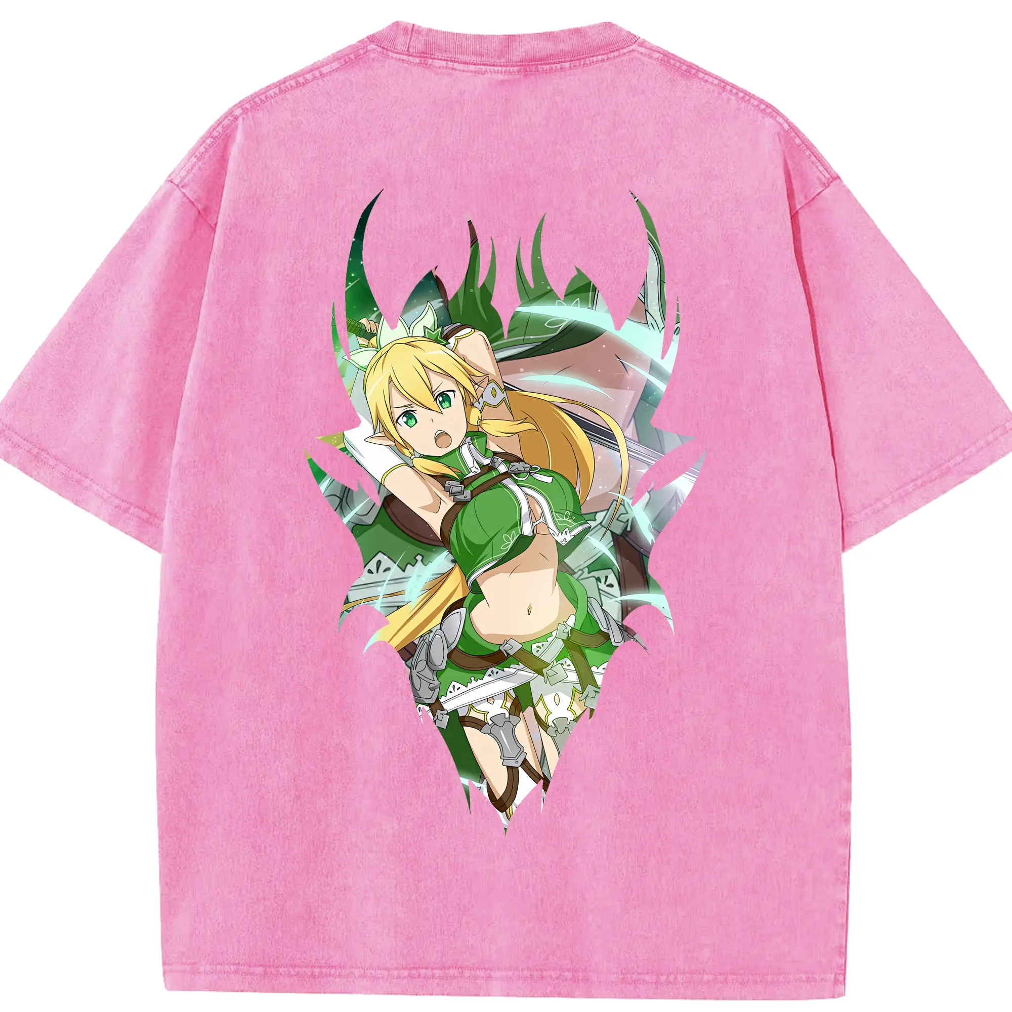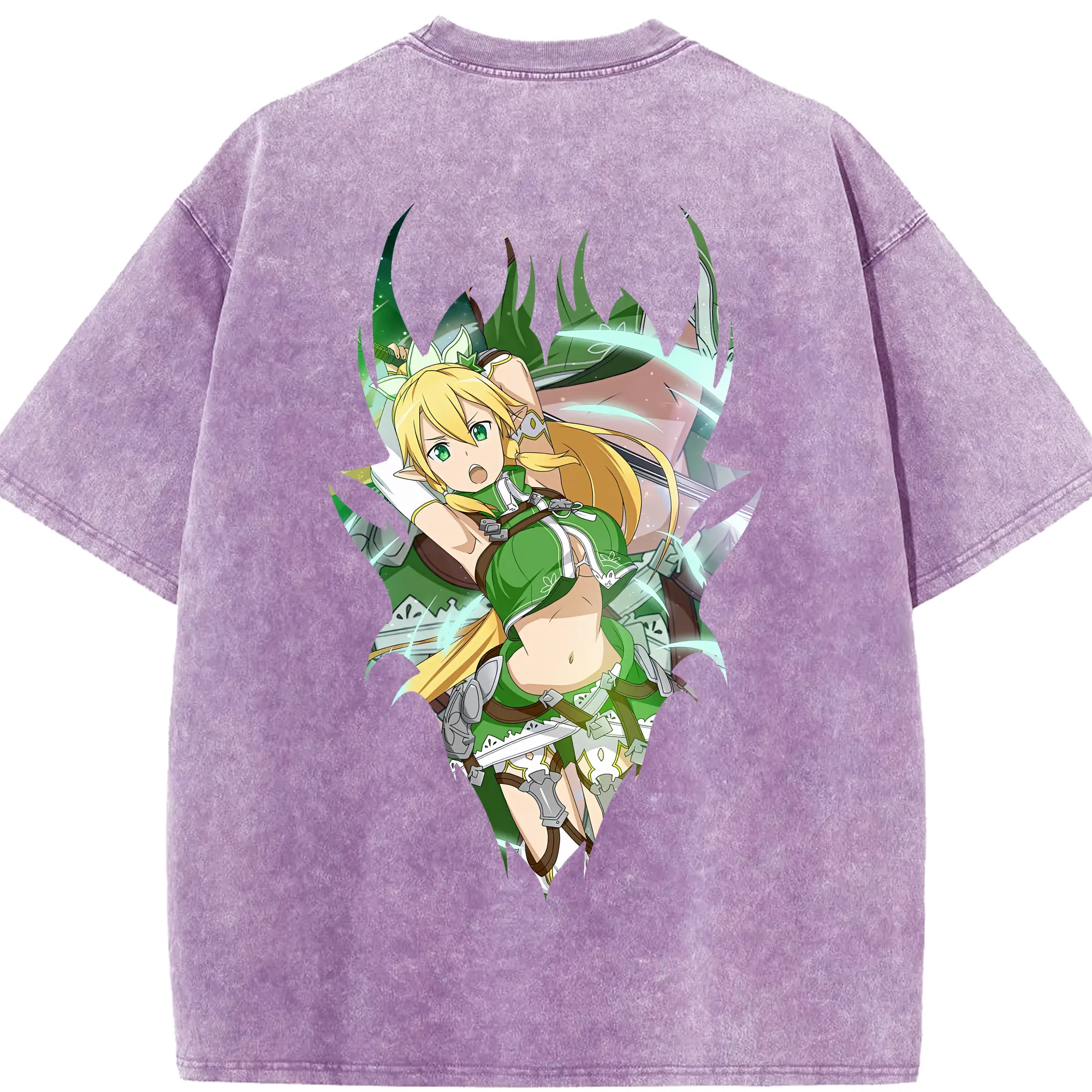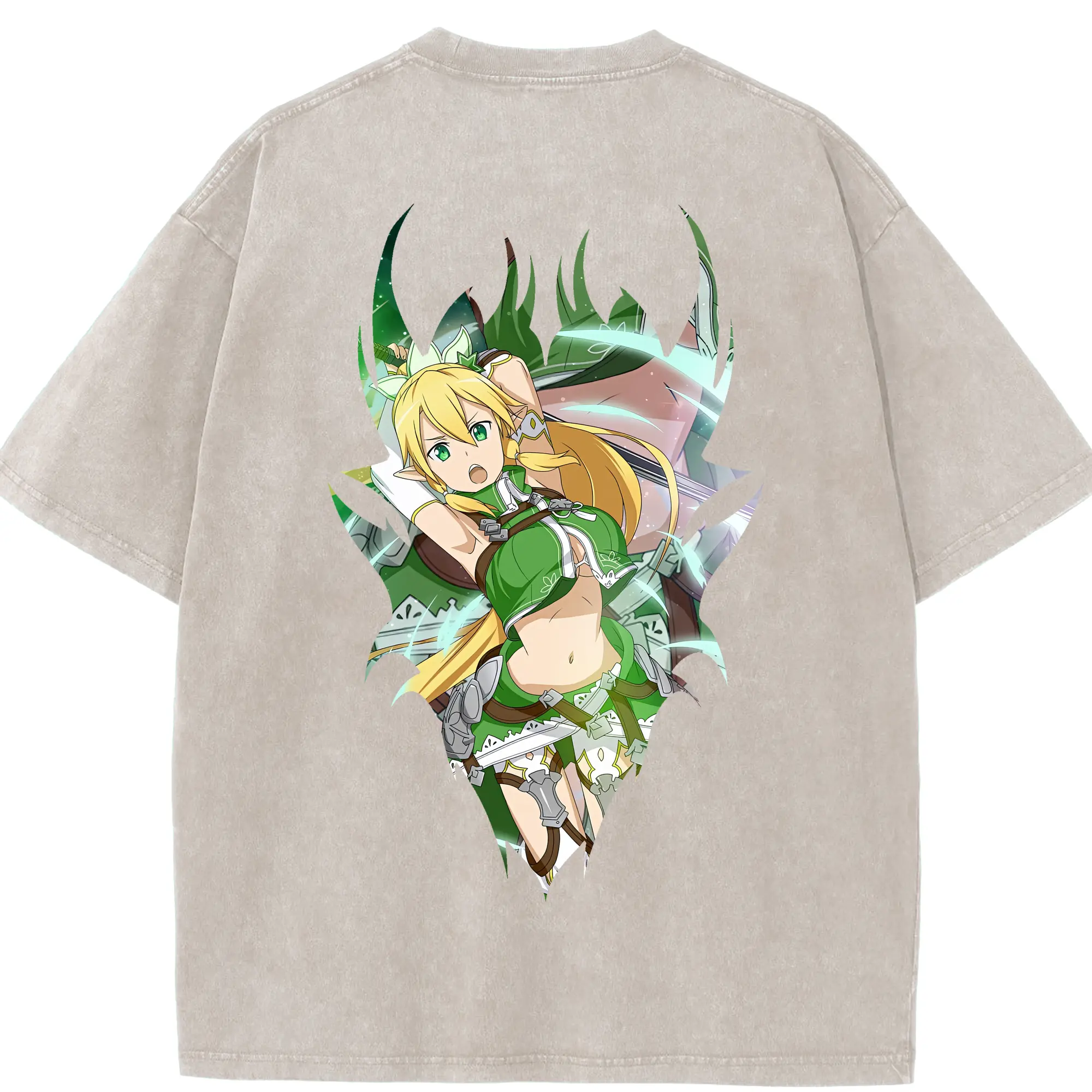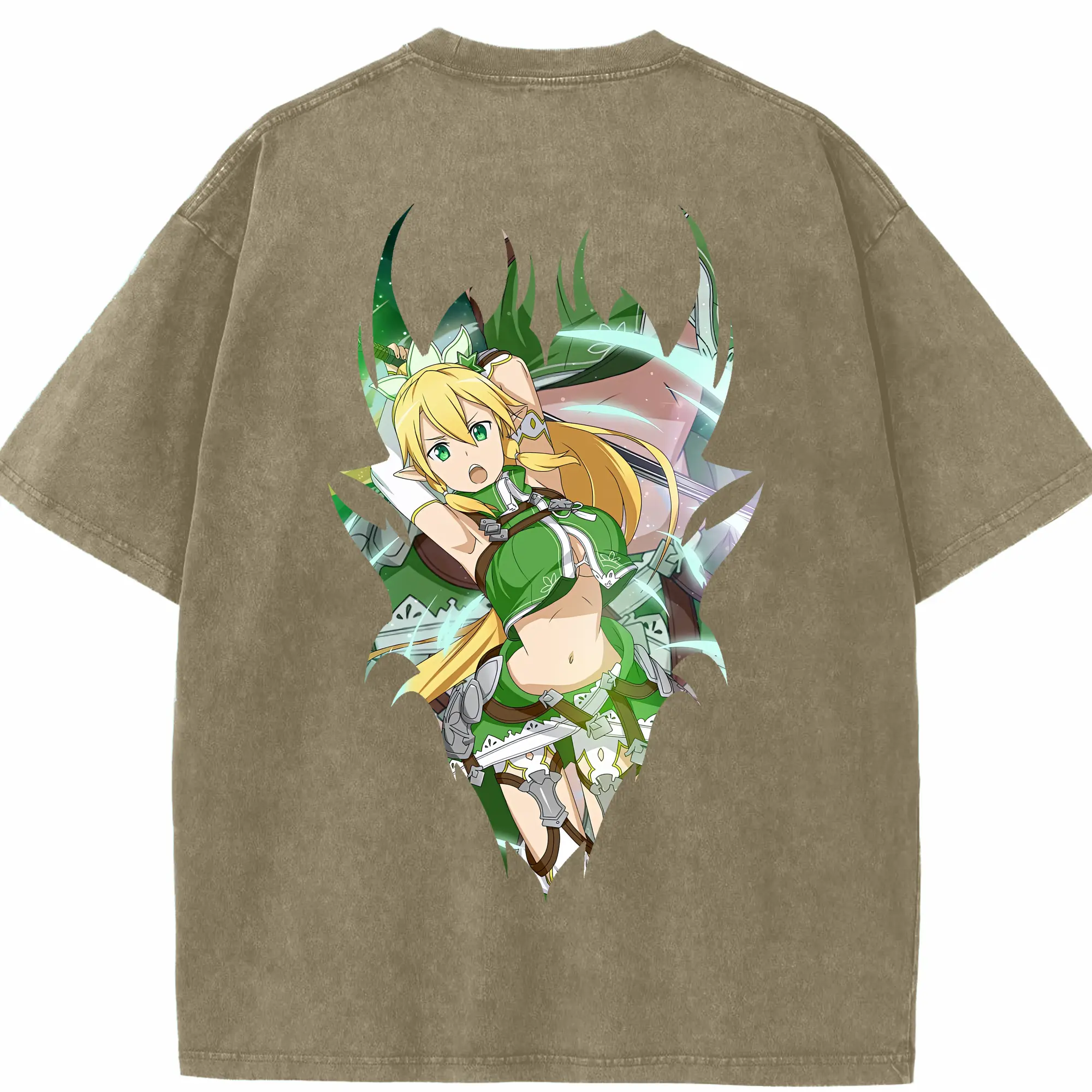 ソードアートオンライン グッズ リーファ - 綿100% ヴィンテージ風 半袖Tシャツ ・ フロントプリント ・ 柔らか肌触り ・ 通気性 快適 ・ スポーツ カジュアル 外出用