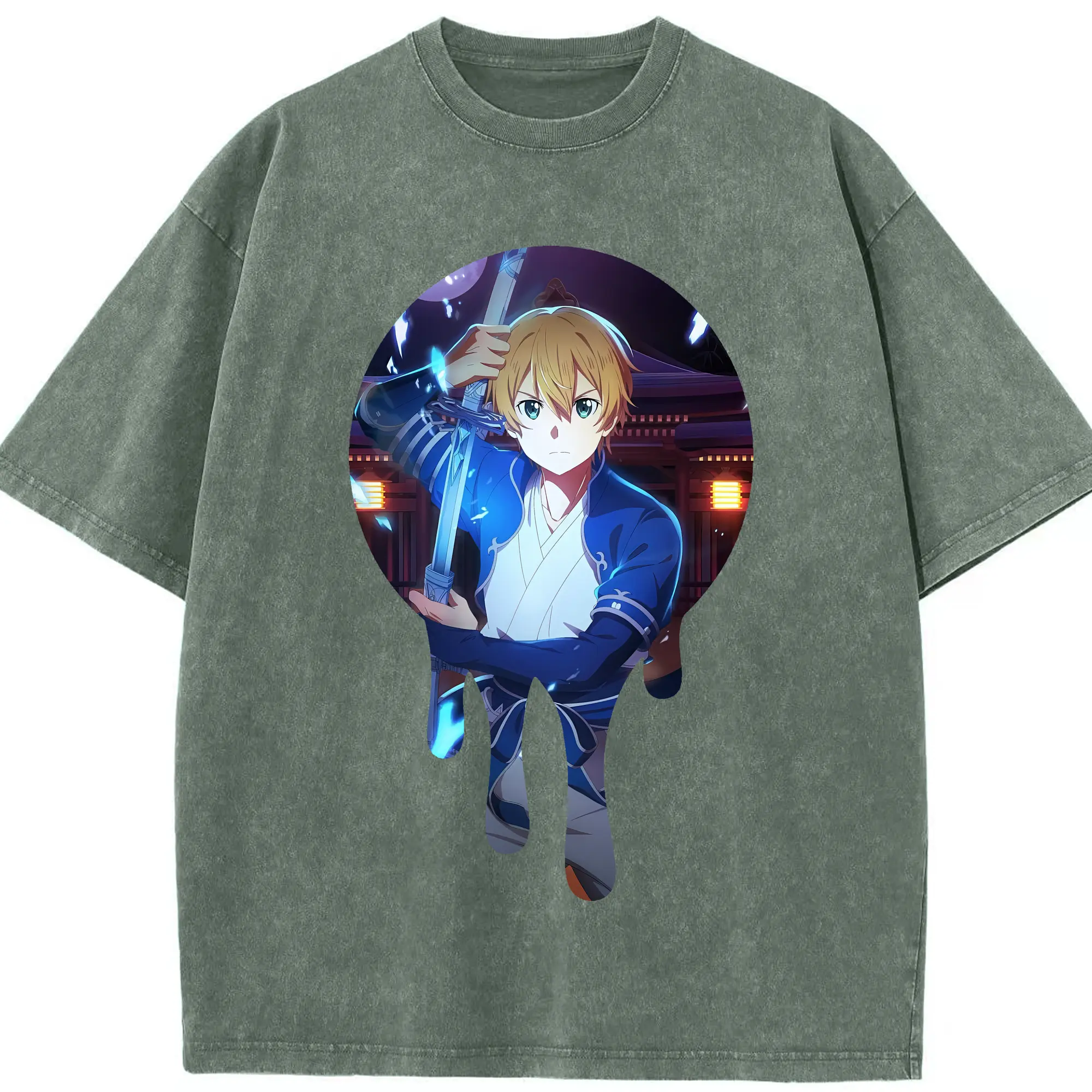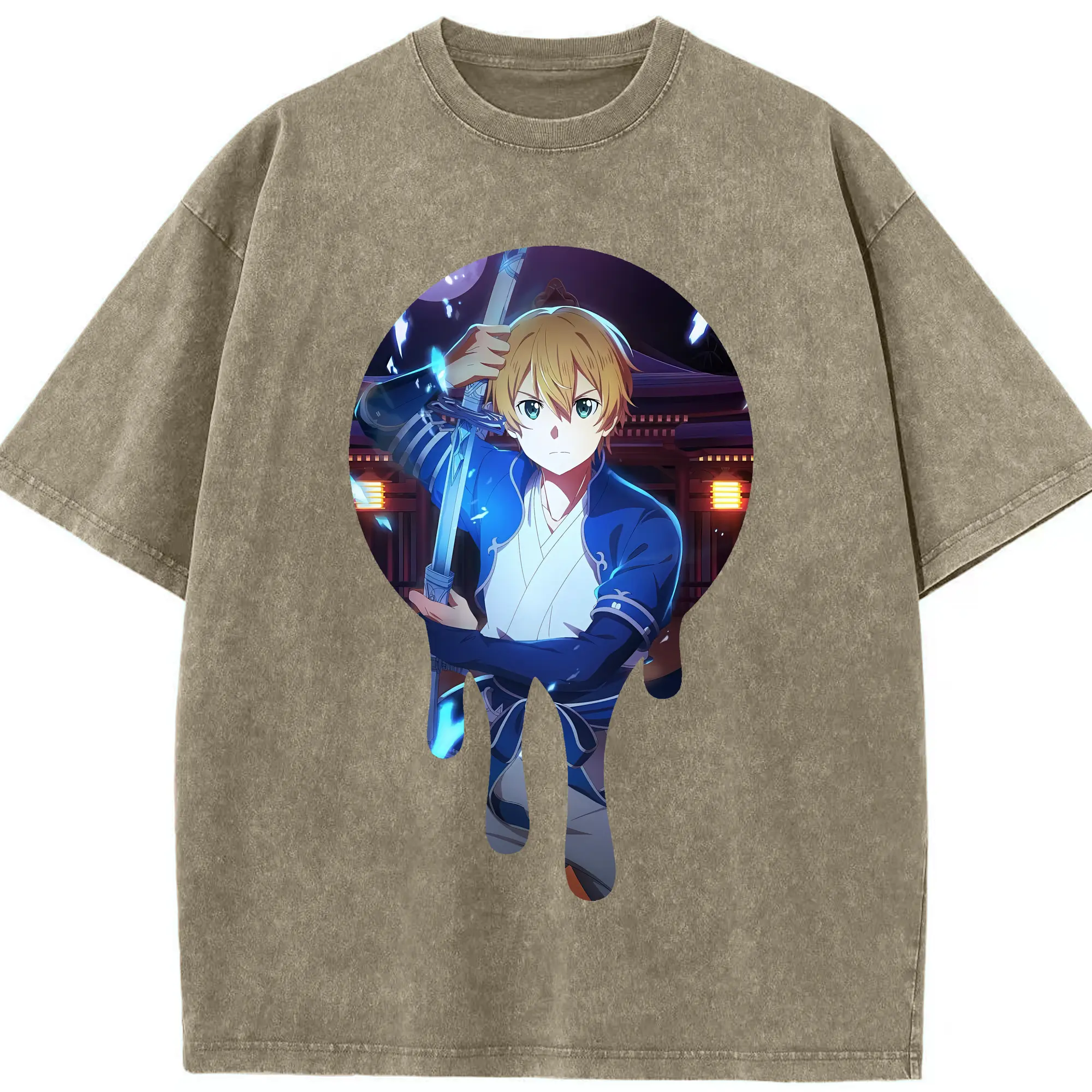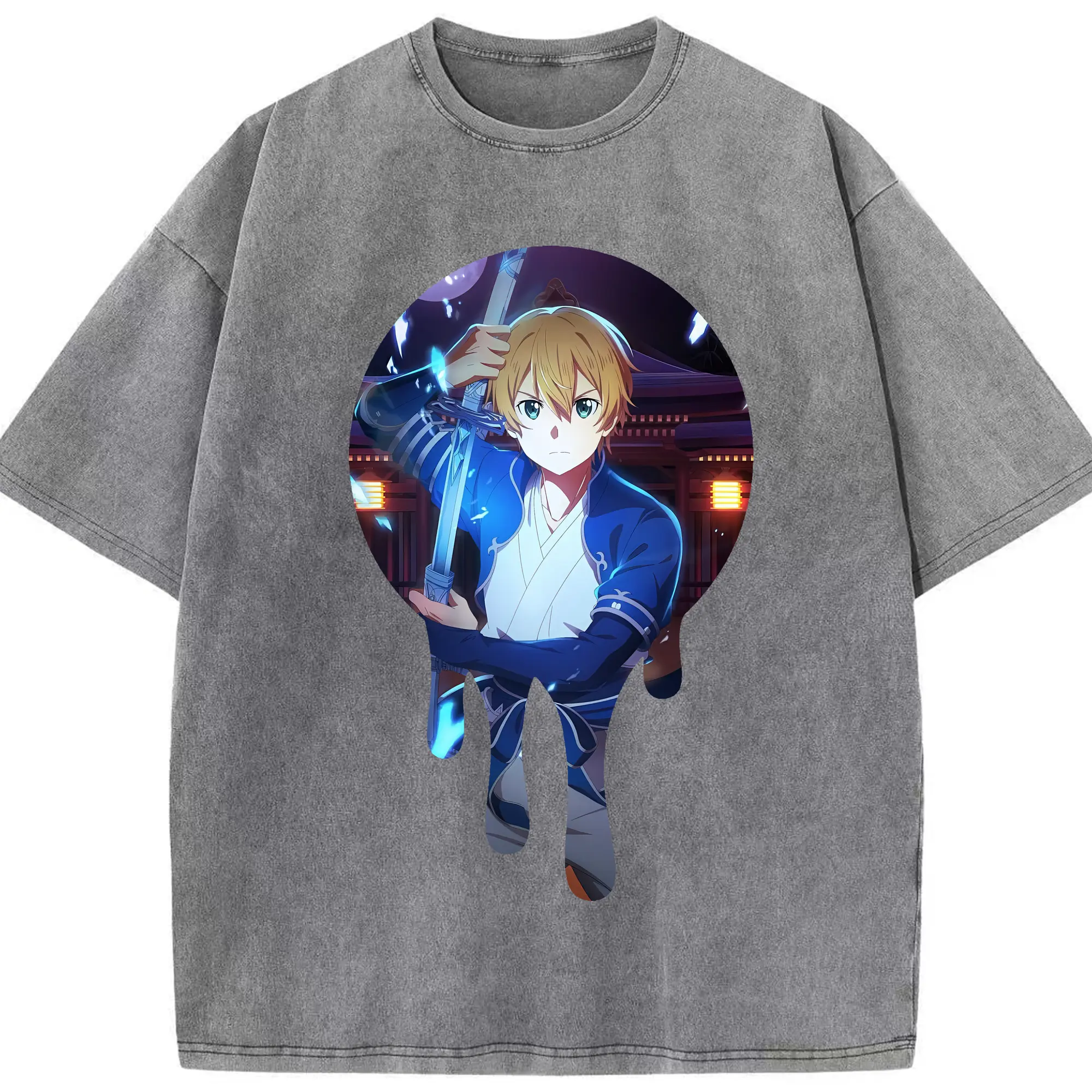 ソードアートオンライン グッズ ユージオ - 綿100% ヴィンテージ風 半袖Tシャツ ・ 背面プリント ・ 柔らか肌触り ・ 通気性 快適 ・ スポーツ カジュアル 外出用