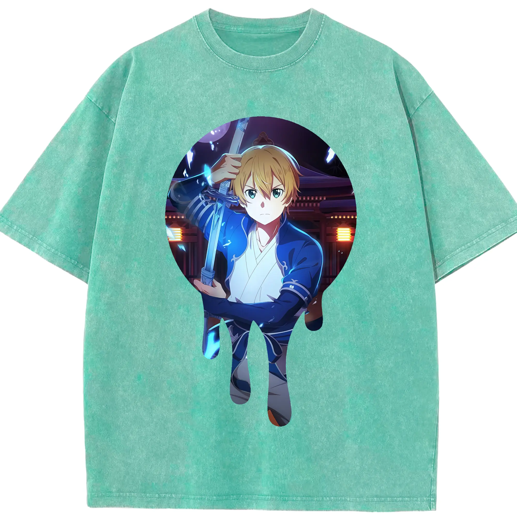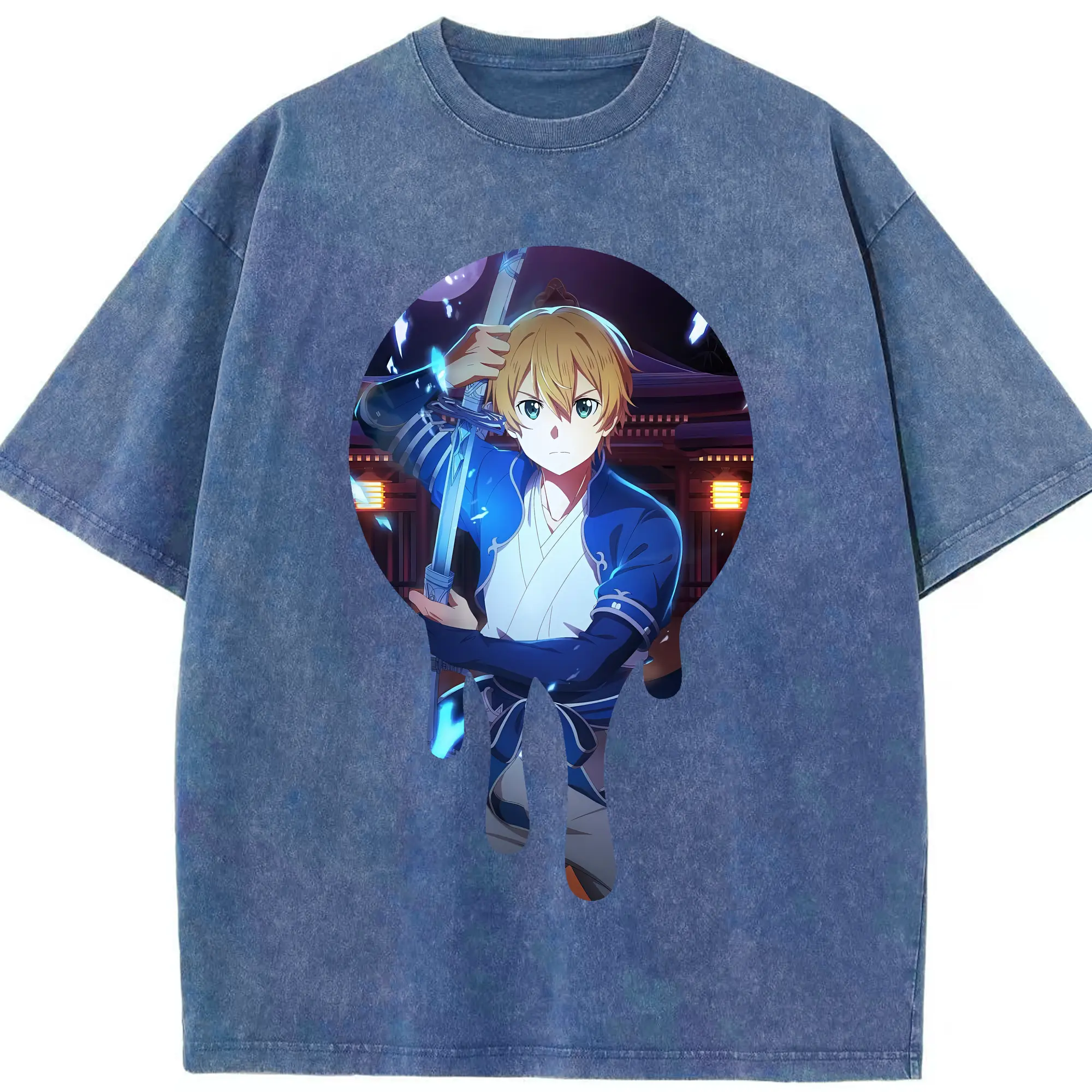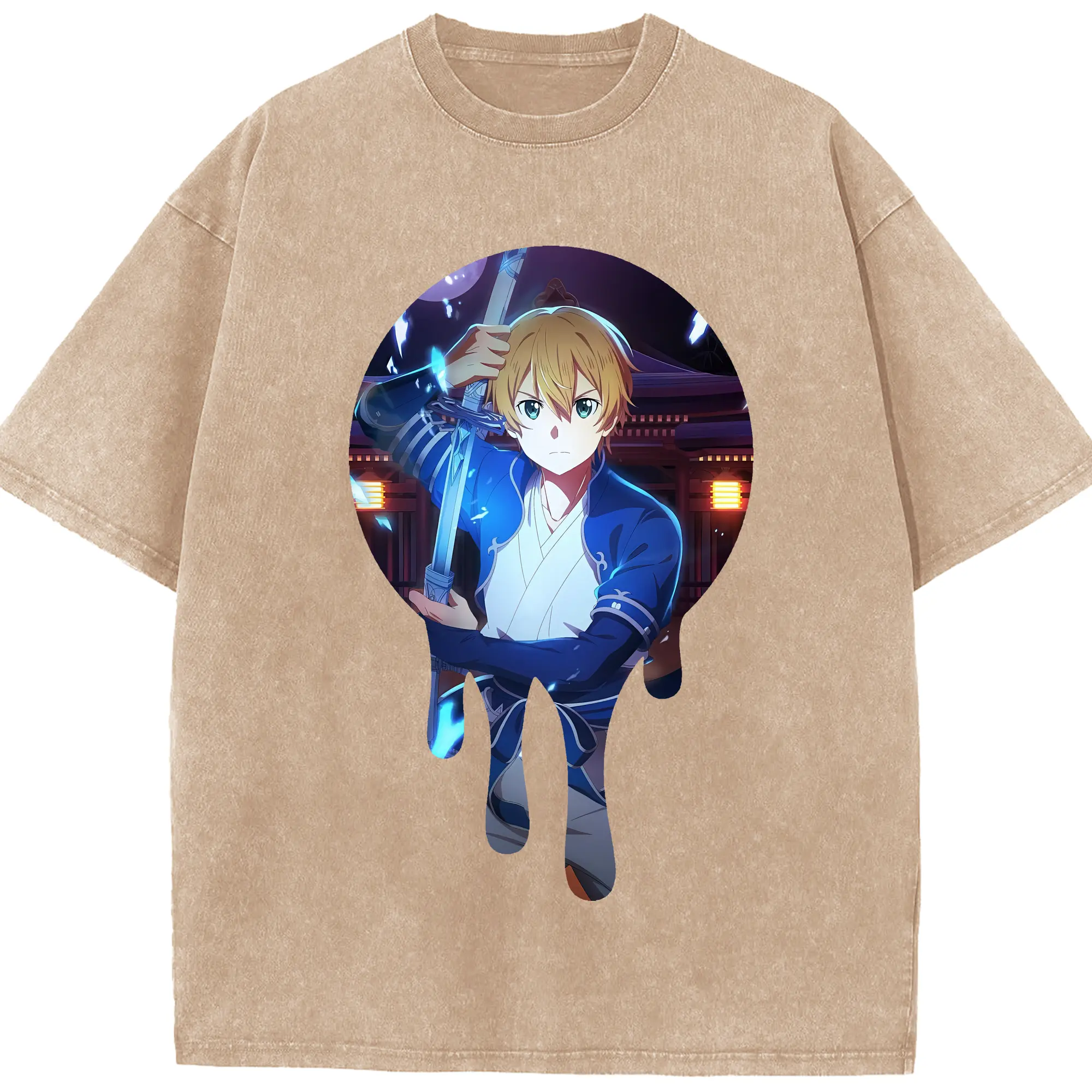 ソードアートオンライン グッズ ユージオ - 綿100% ヴィンテージ風 半袖Tシャツ ・ 背面プリント ・ 柔らか肌触り ・ 通気性 快適 ・ スポーツ カジュアル 外出用