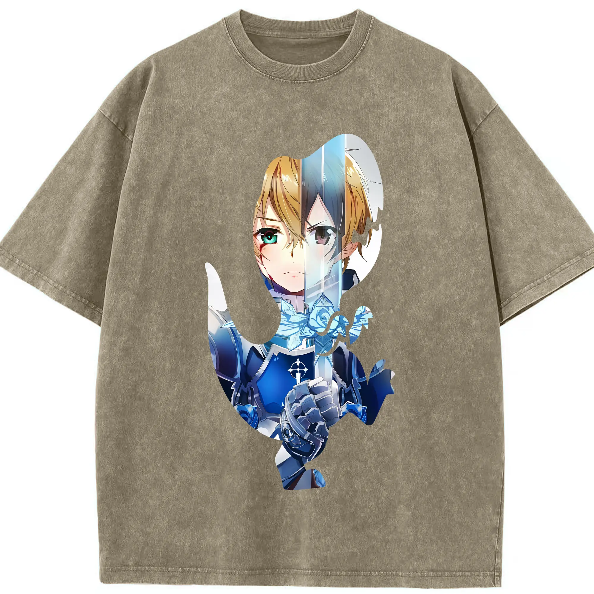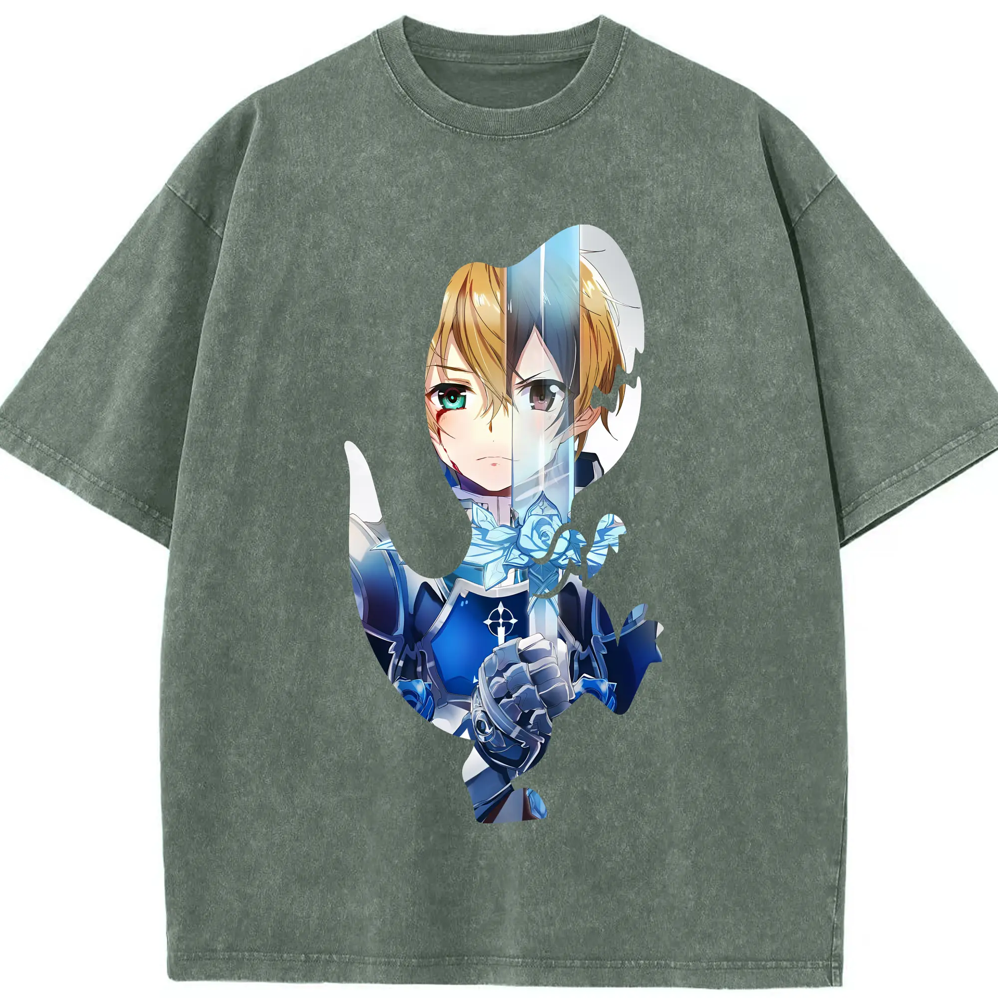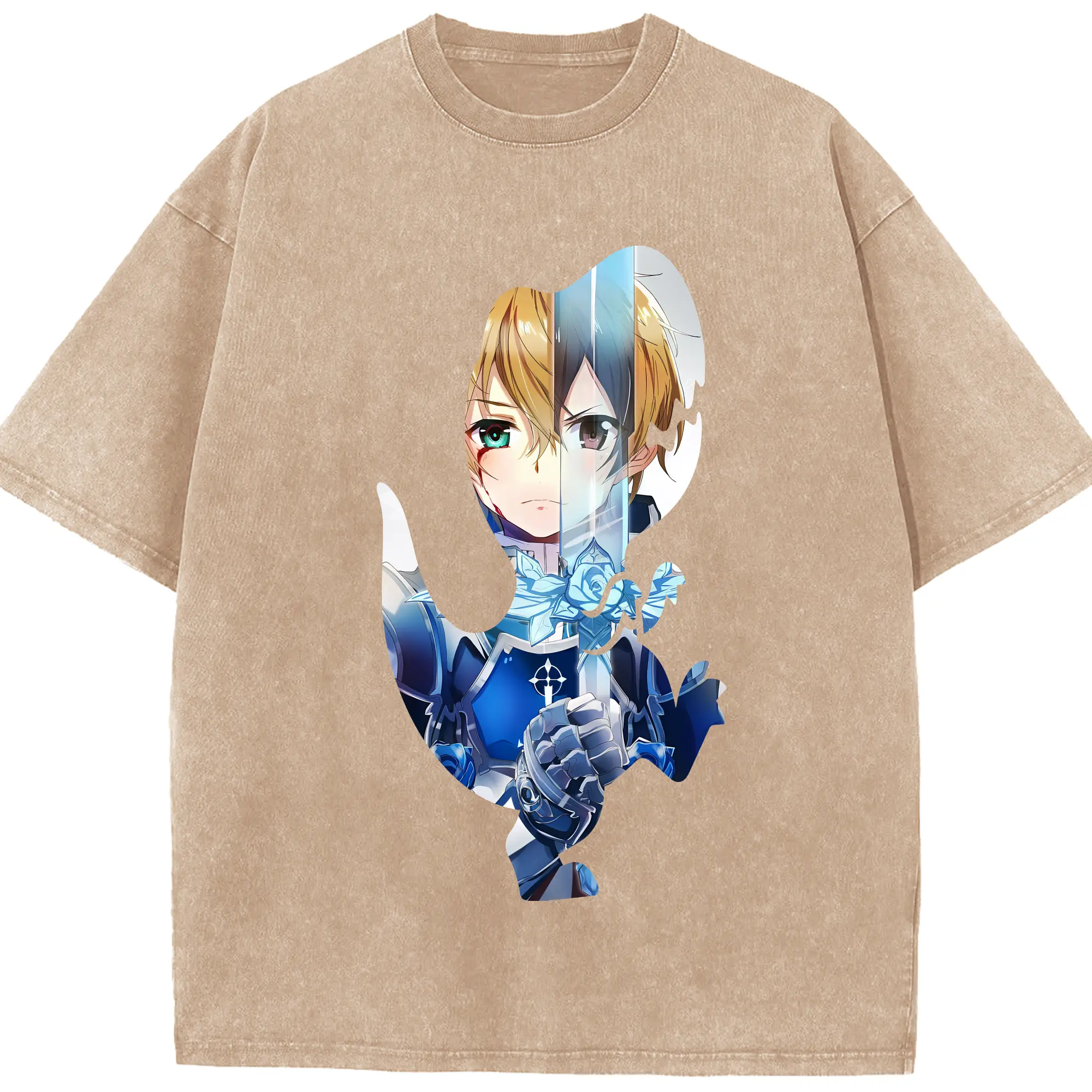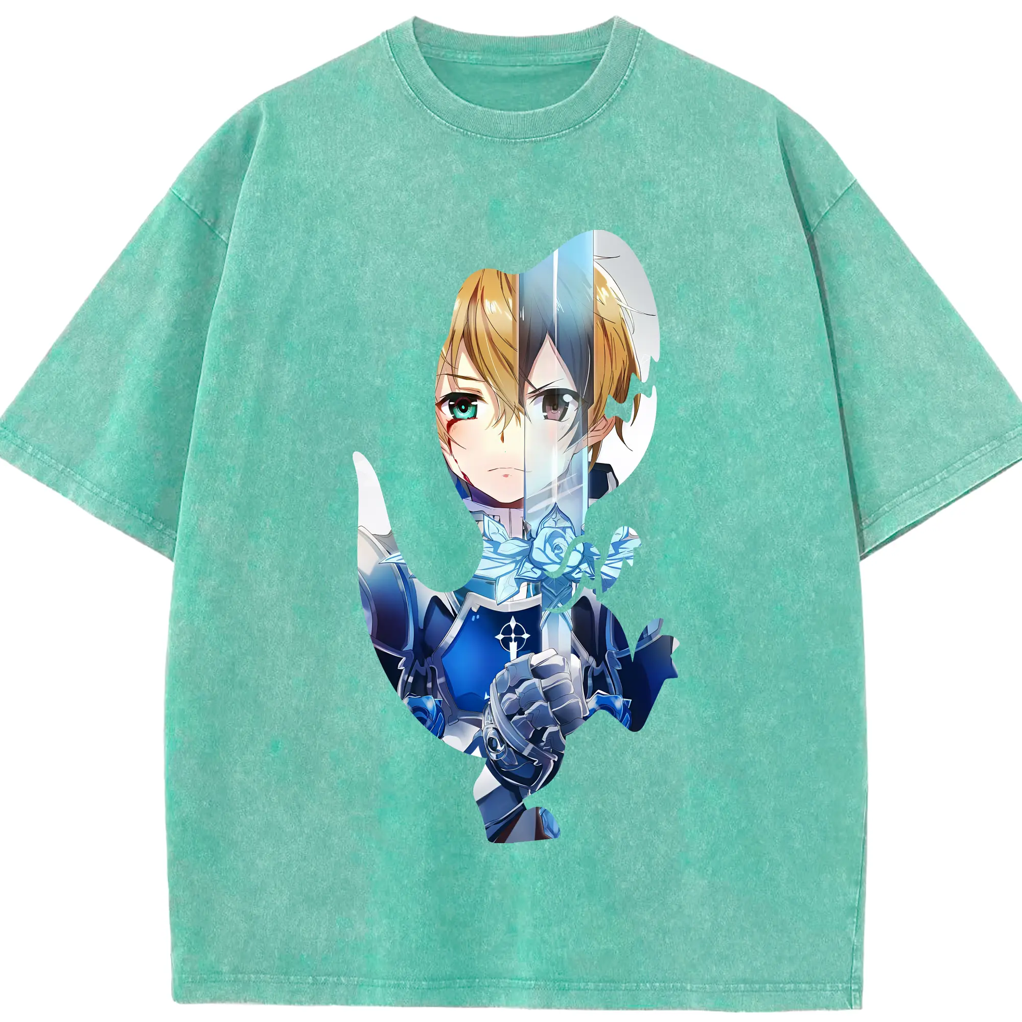 ソードアートオンライン グッズ ユージオ - 綿100% ヴィンテージ風 半袖Tシャツ ・ 背面プリント ・ 柔らか肌触り ・ 通気性 快適 ・ スポーツ カジュアル 外出用