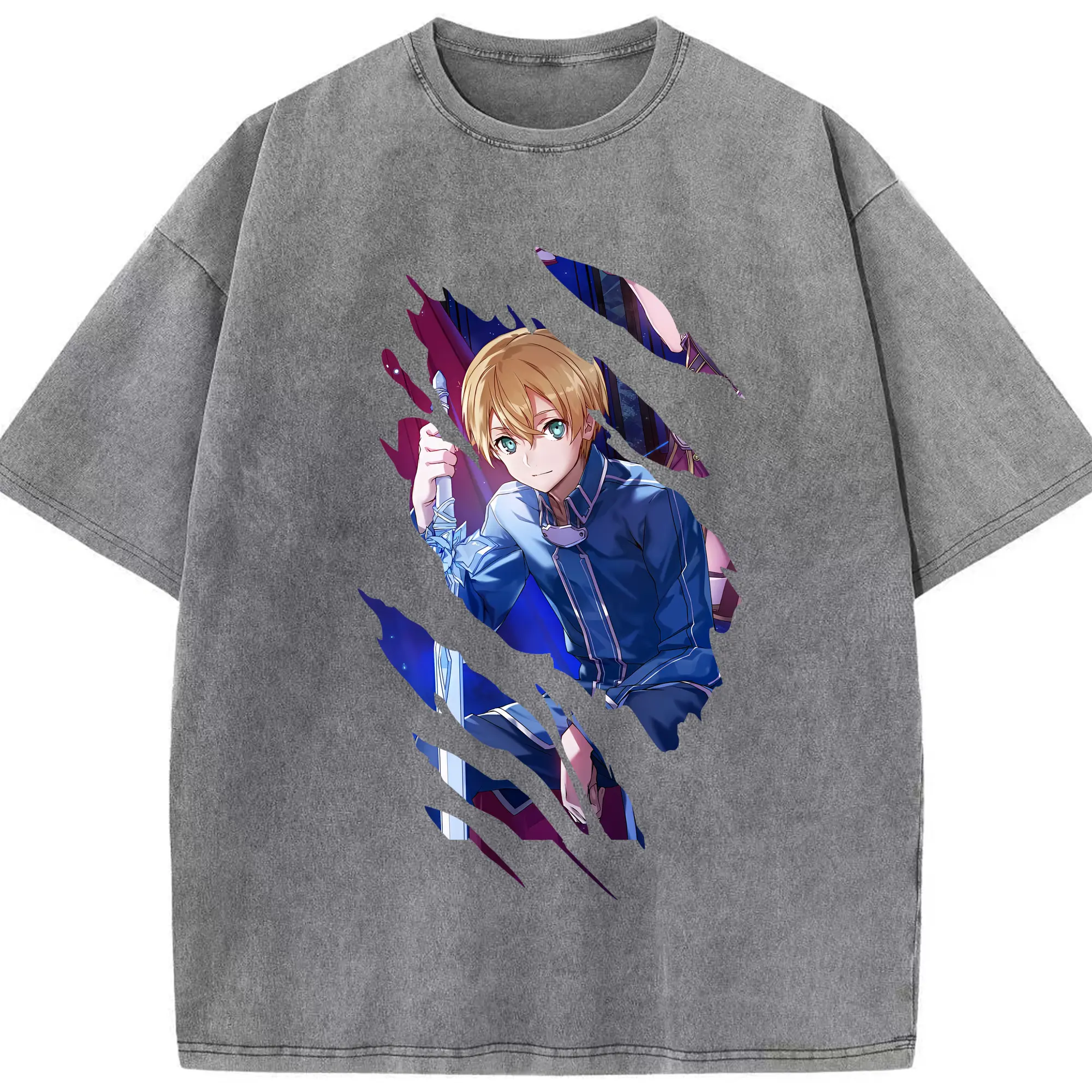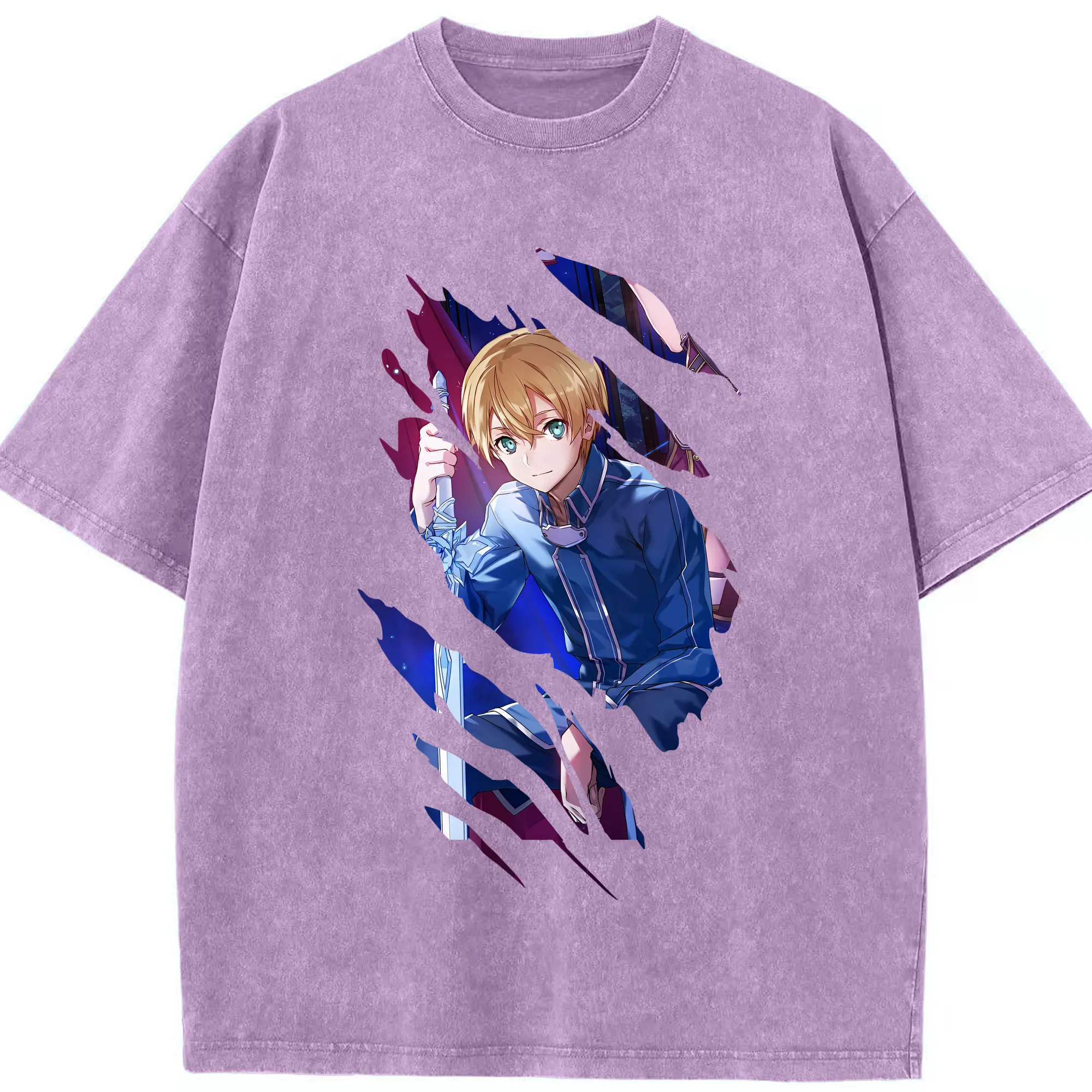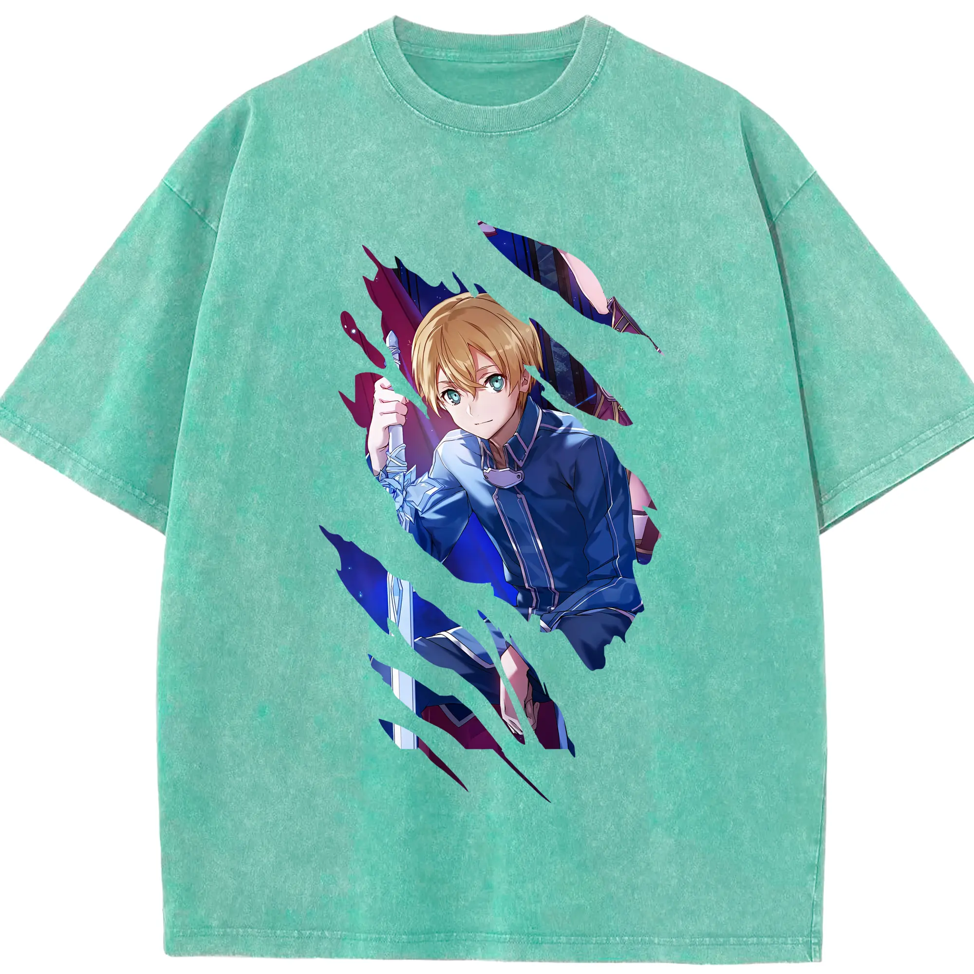 ソードアートオンライン グッズ ユージオ - 綿100% ヴィンテージ風 半袖Tシャツ ・ 背面プリント ・ 柔らか肌触り ・ 通気性 快適 ・ スポーツ カジュアル 外出用