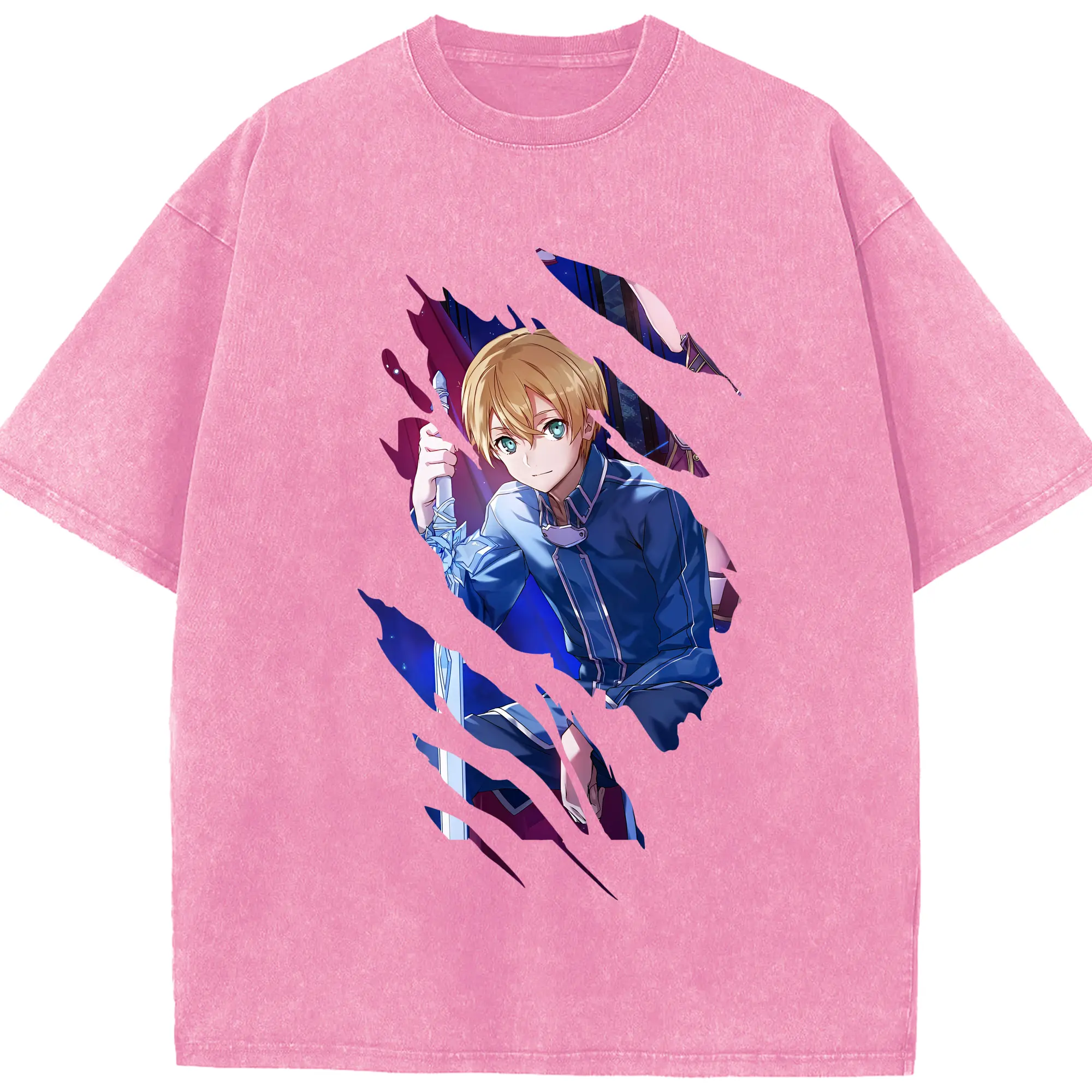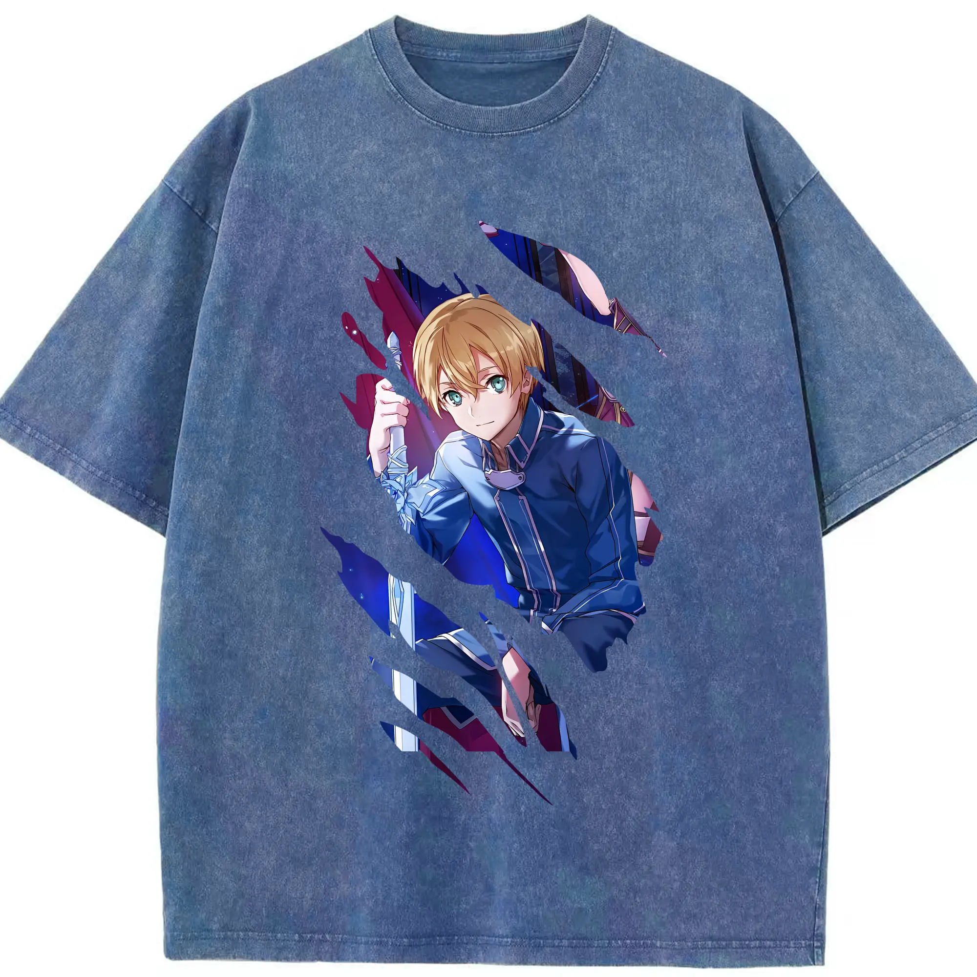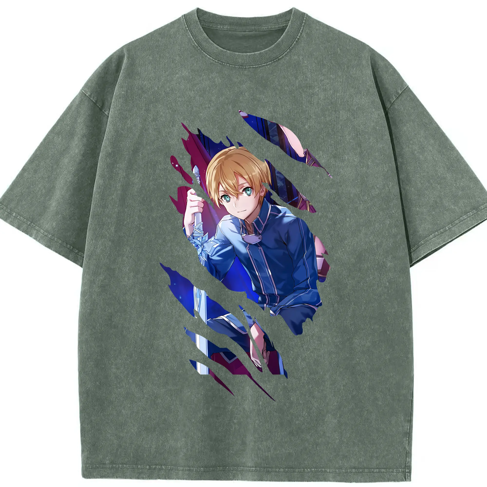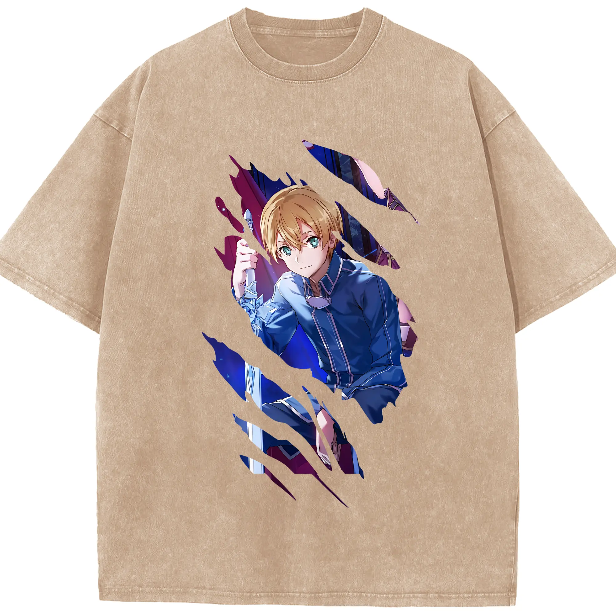 ソードアートオンライン グッズ ユージオ - 綿100% ヴィンテージ風 半袖Tシャツ ・ 背面プリント ・ 柔らか肌触り ・ 通気性 快適 ・ スポーツ カジュアル 外出用