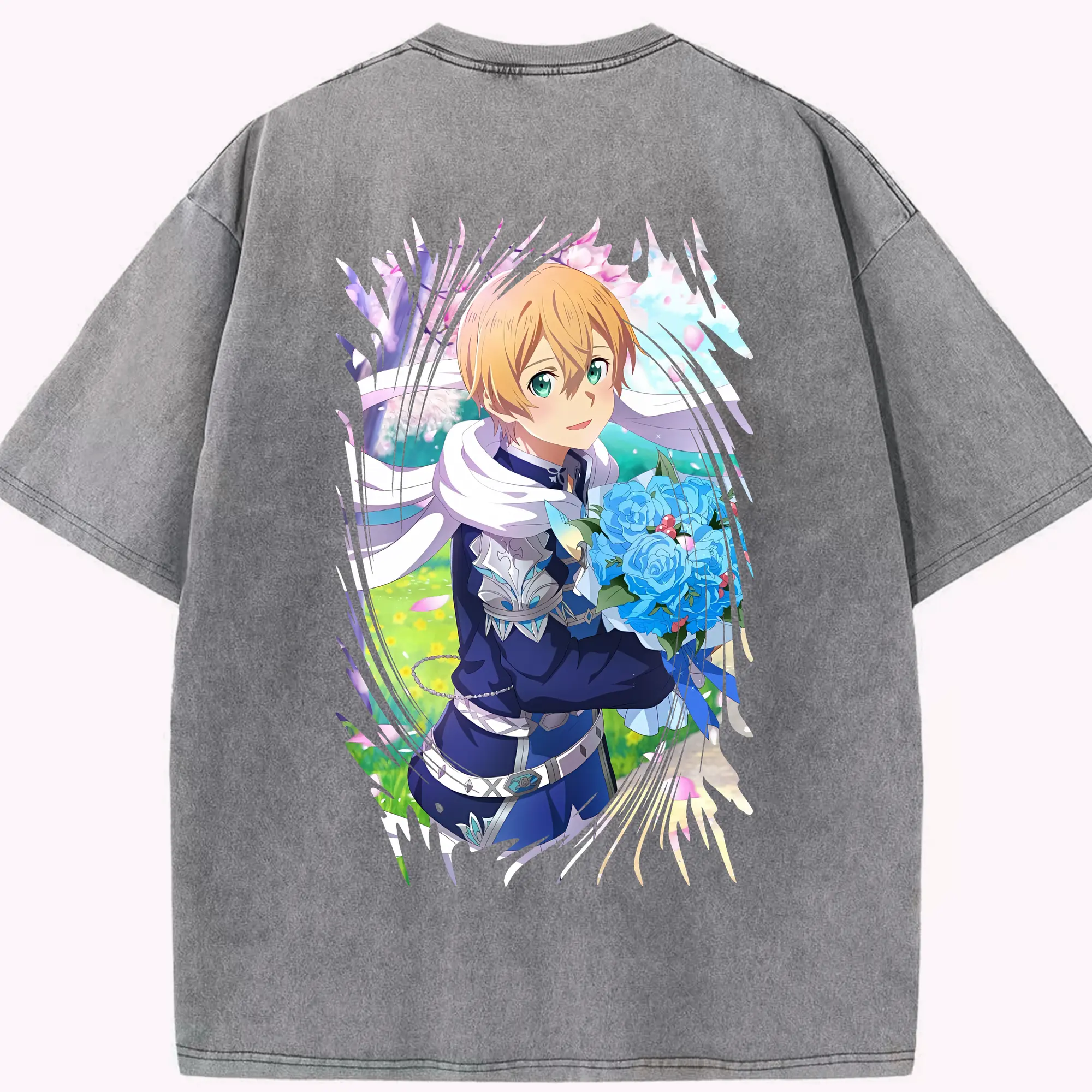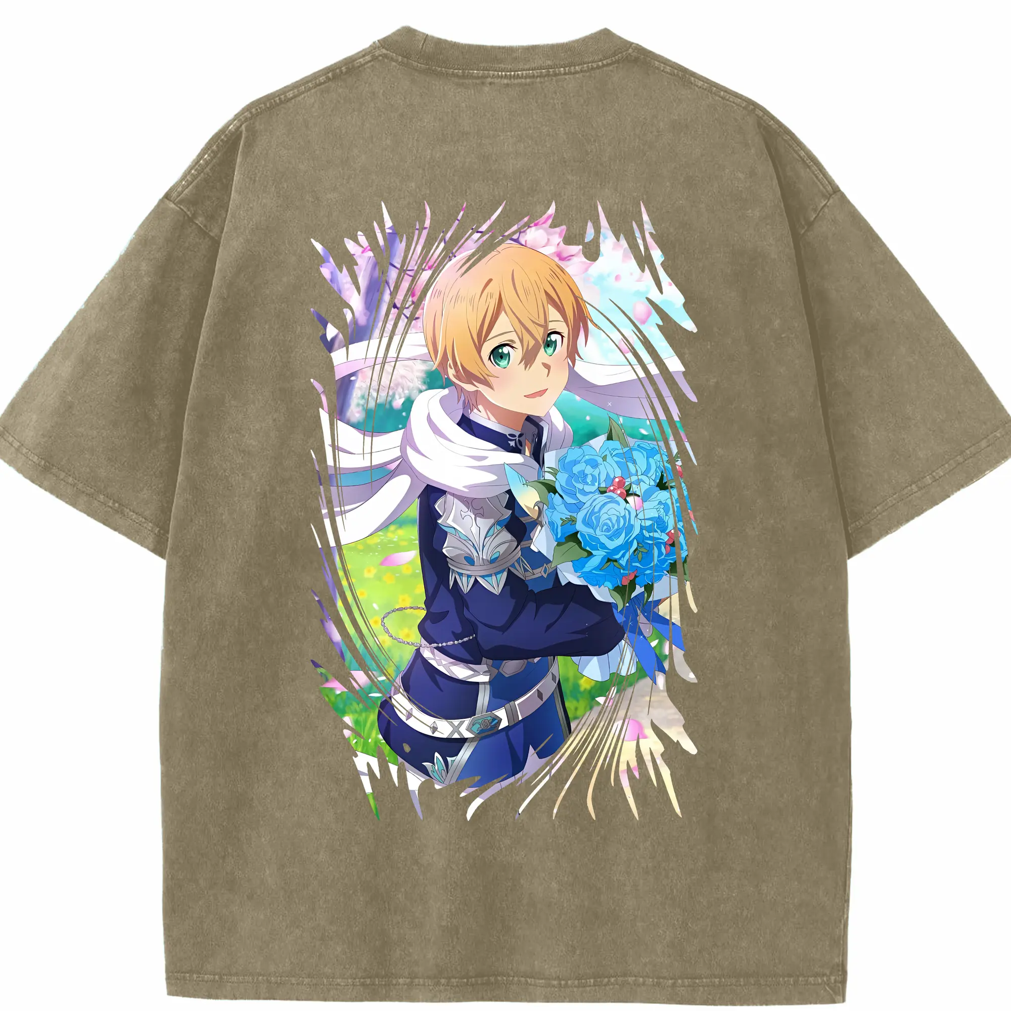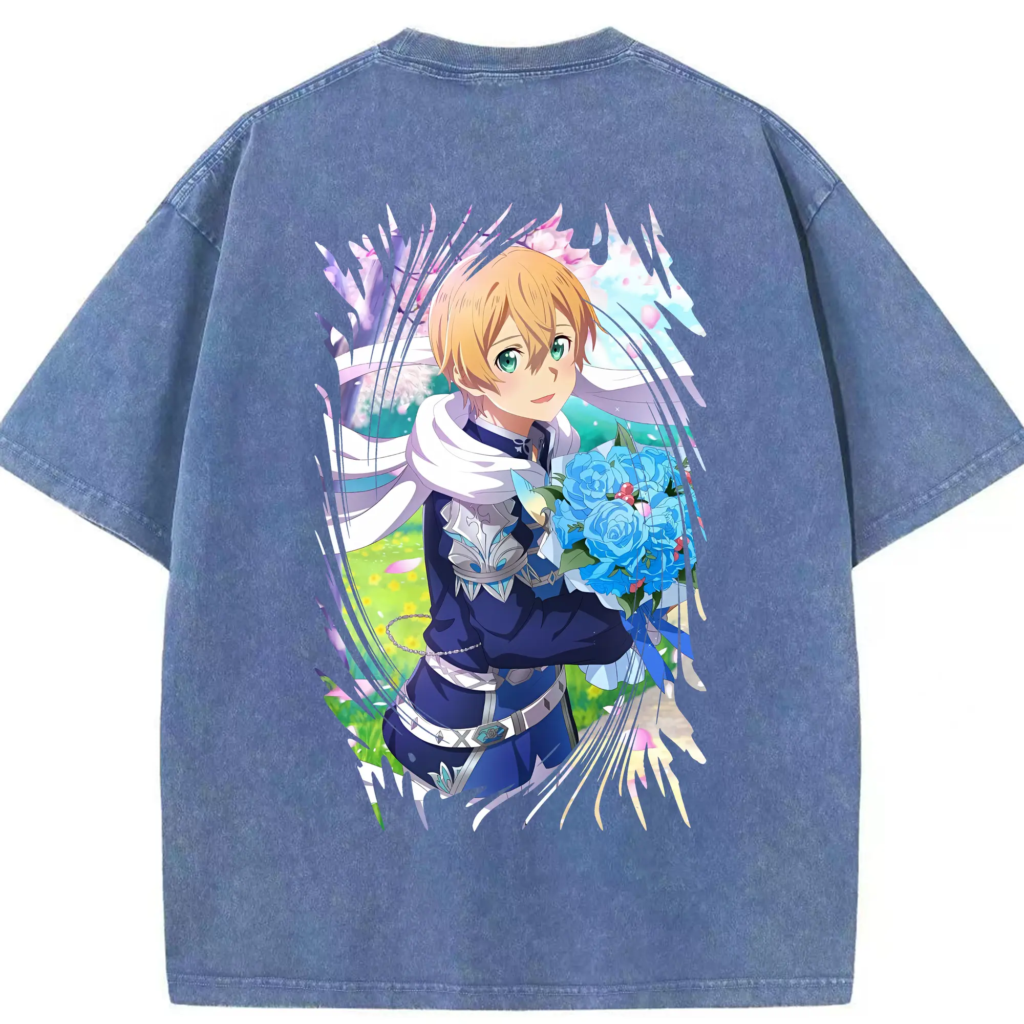 ソードアートオンライン グッズ ユージオ - 綿100% ヴィンテージ風 半袖Tシャツ ・ フロントプリント ・ 柔らか肌触り ・ 通気性 快適 ・ スポーツ カジュアル 外出用