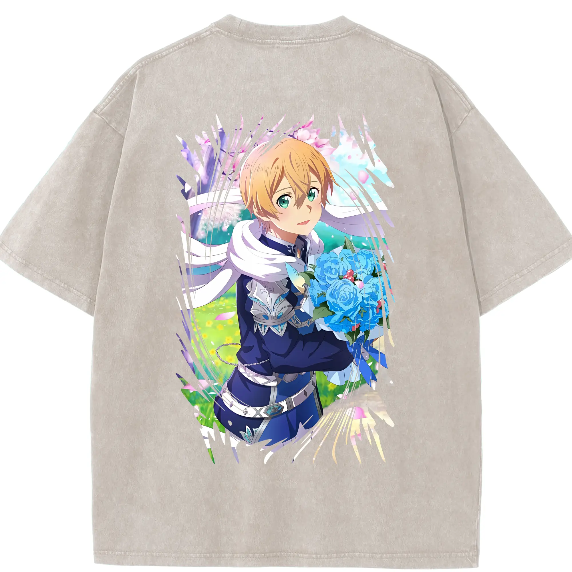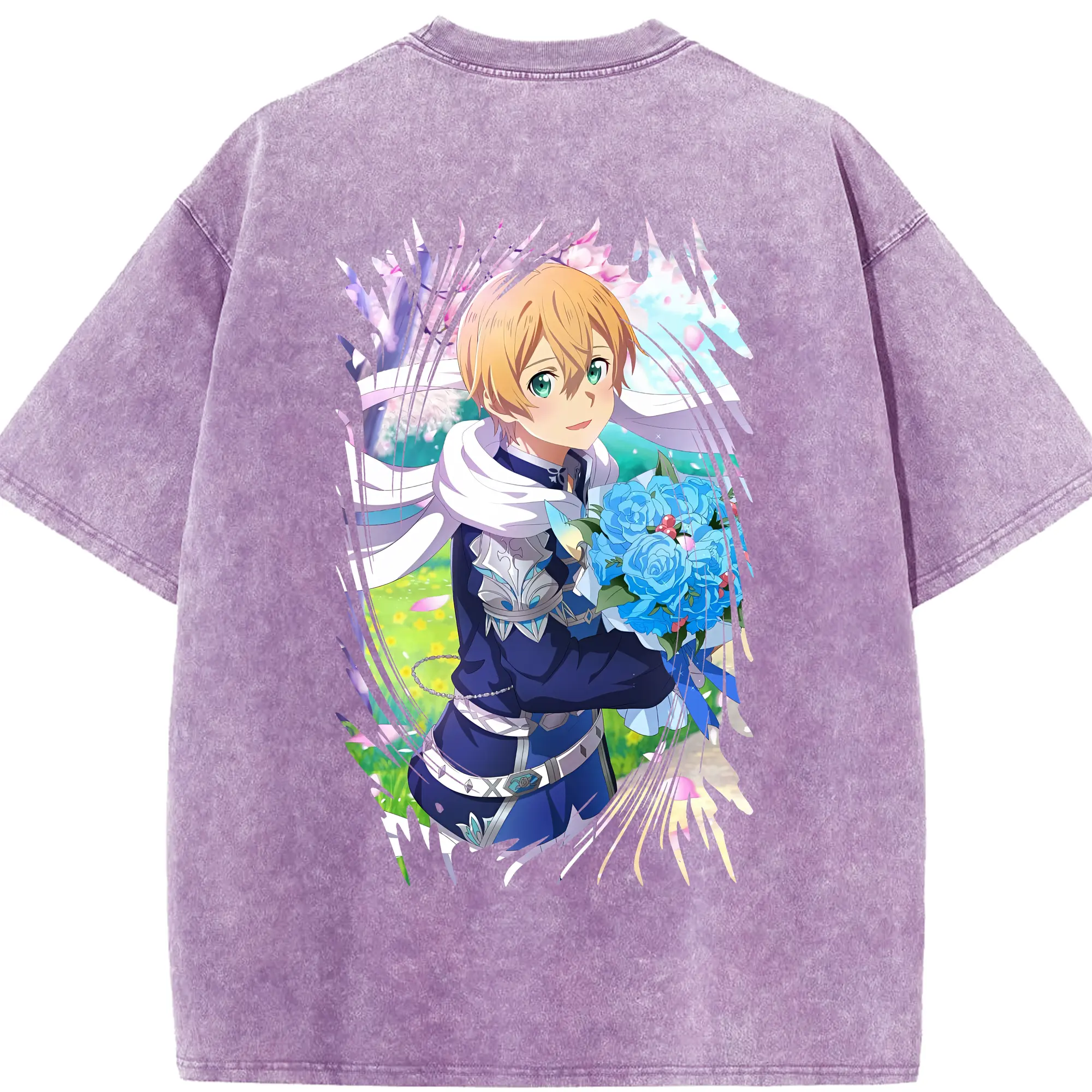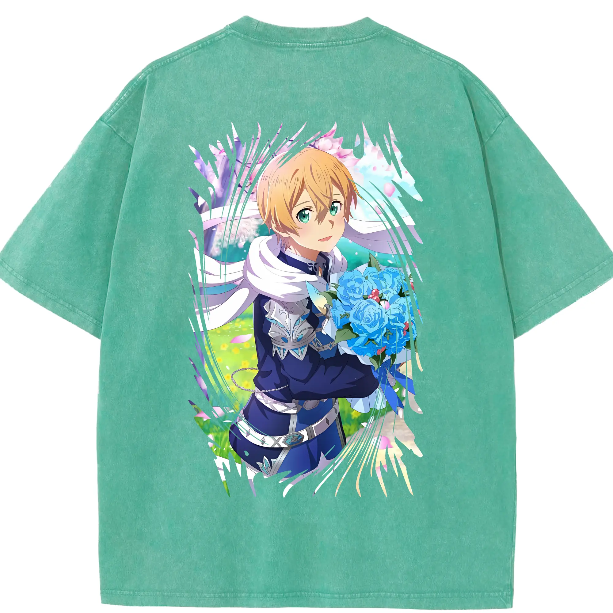 ソードアートオンライン グッズ ユージオ - 綿100% ヴィンテージ風 半袖Tシャツ ・ フロントプリント ・ 柔らか肌触り ・ 通気性 快適 ・ スポーツ カジュアル 外出用