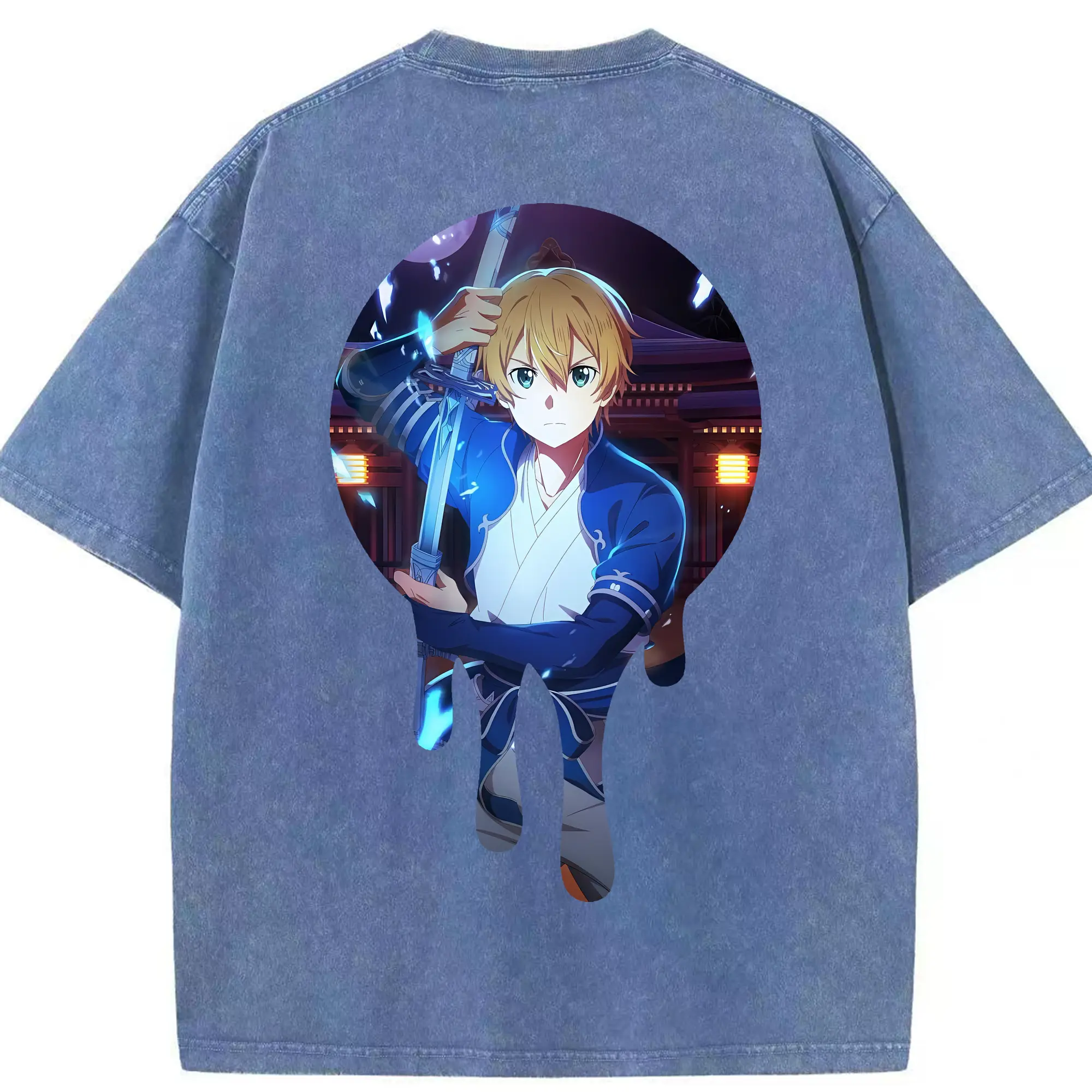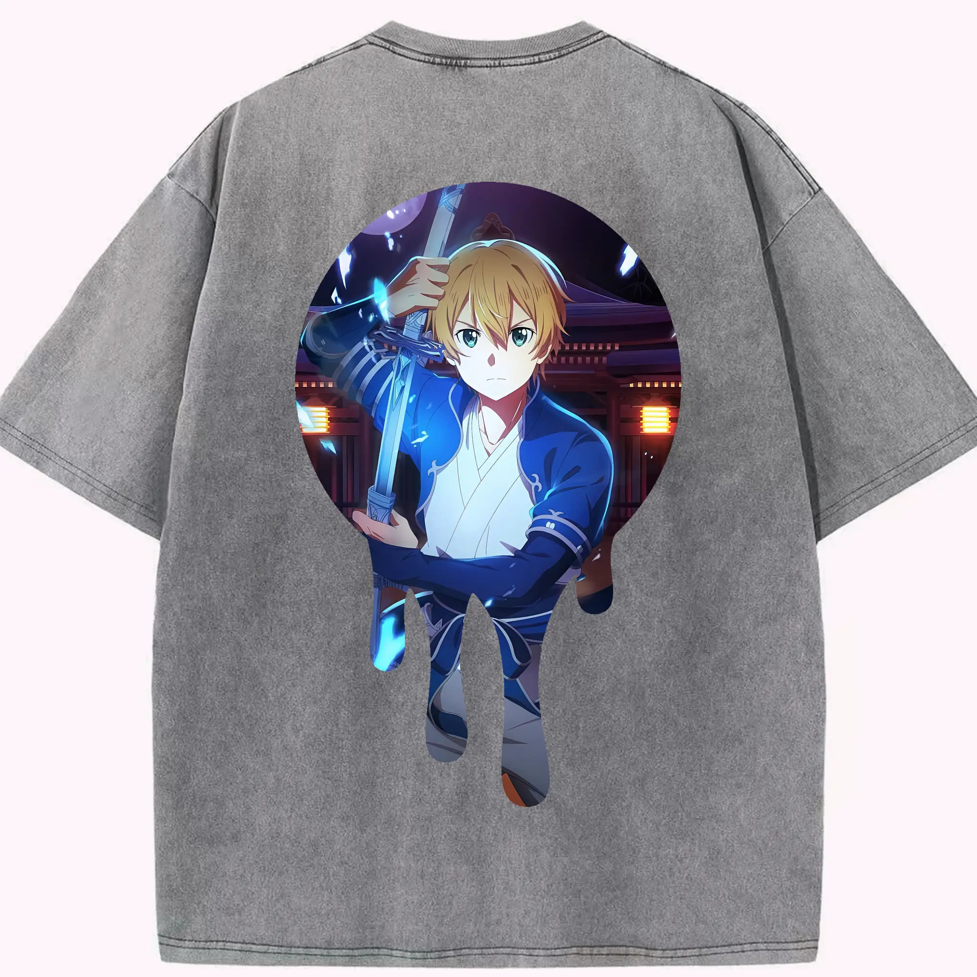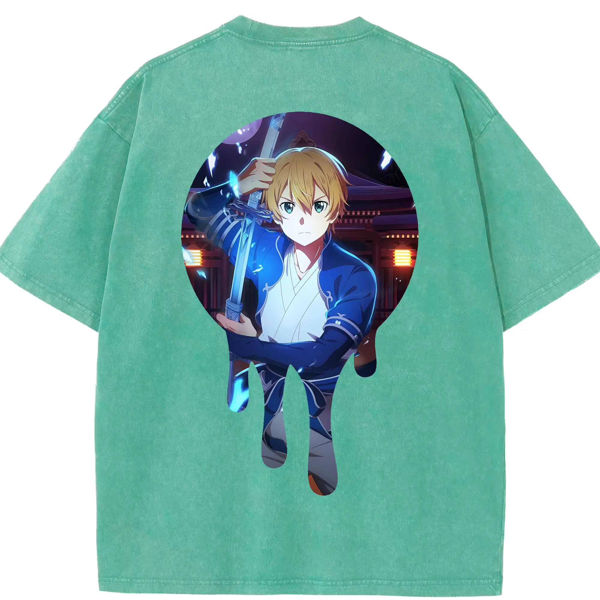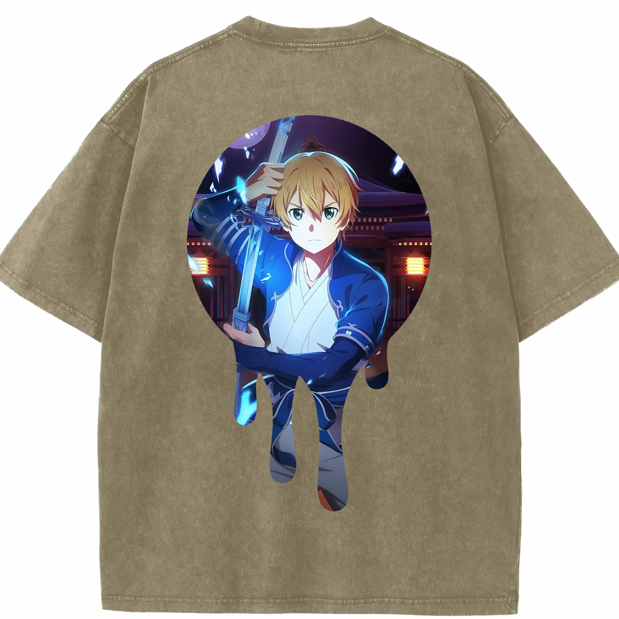 ソードアートオンライン グッズ ユージオ - 綿100% ヴィンテージ風 半袖Tシャツ ・ フロントプリント ・ 柔らか肌触り ・ 通気性 快適 ・ スポーツ カジュアル 外出用
