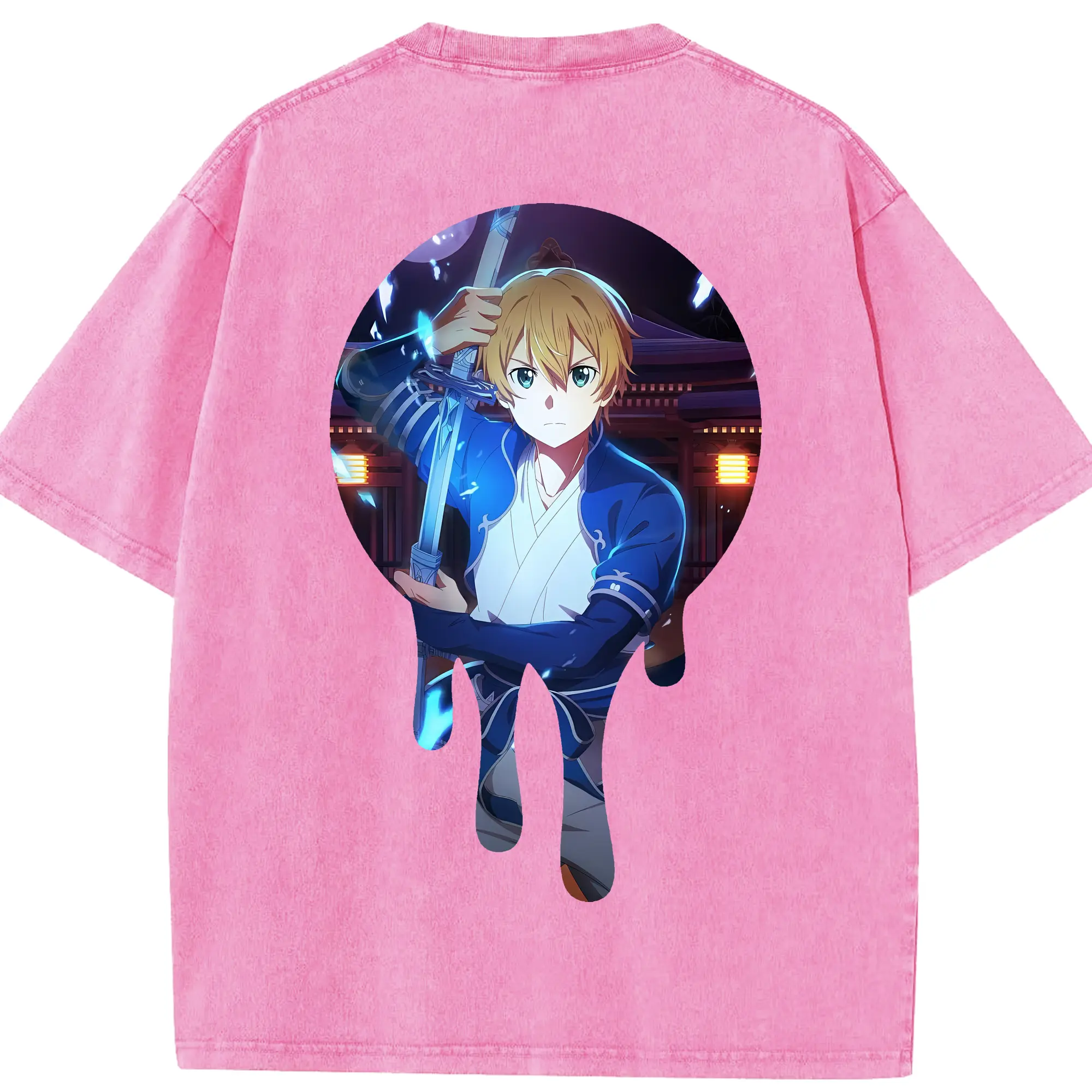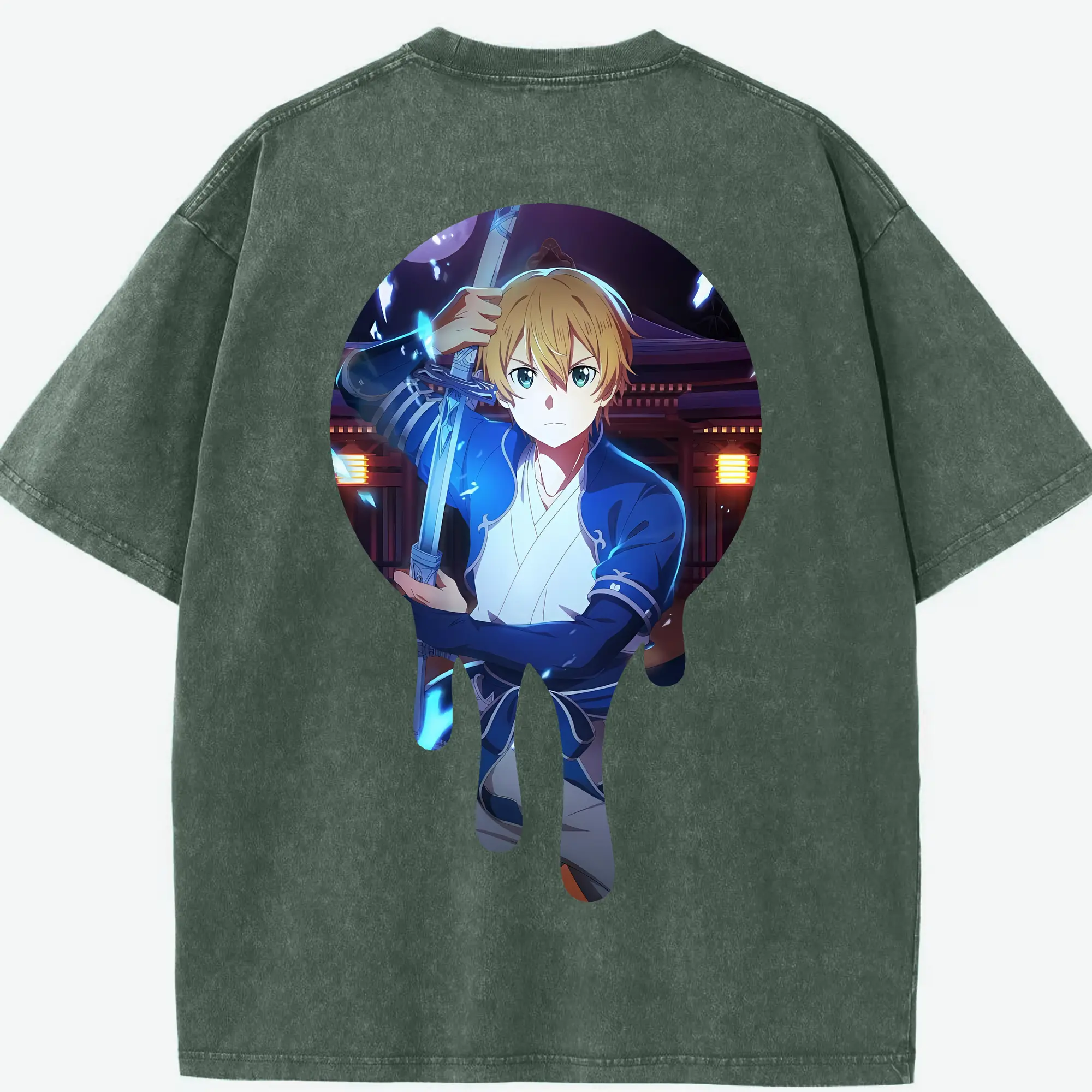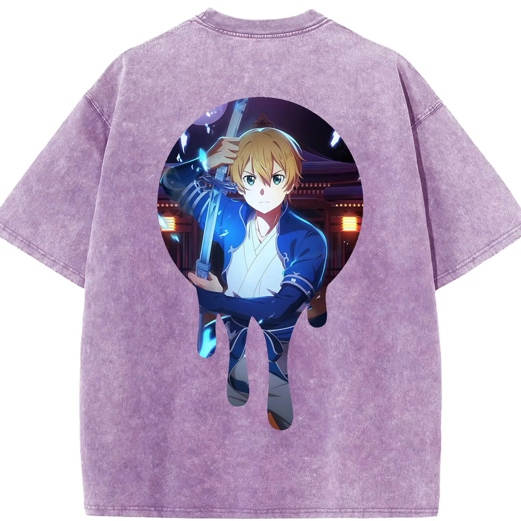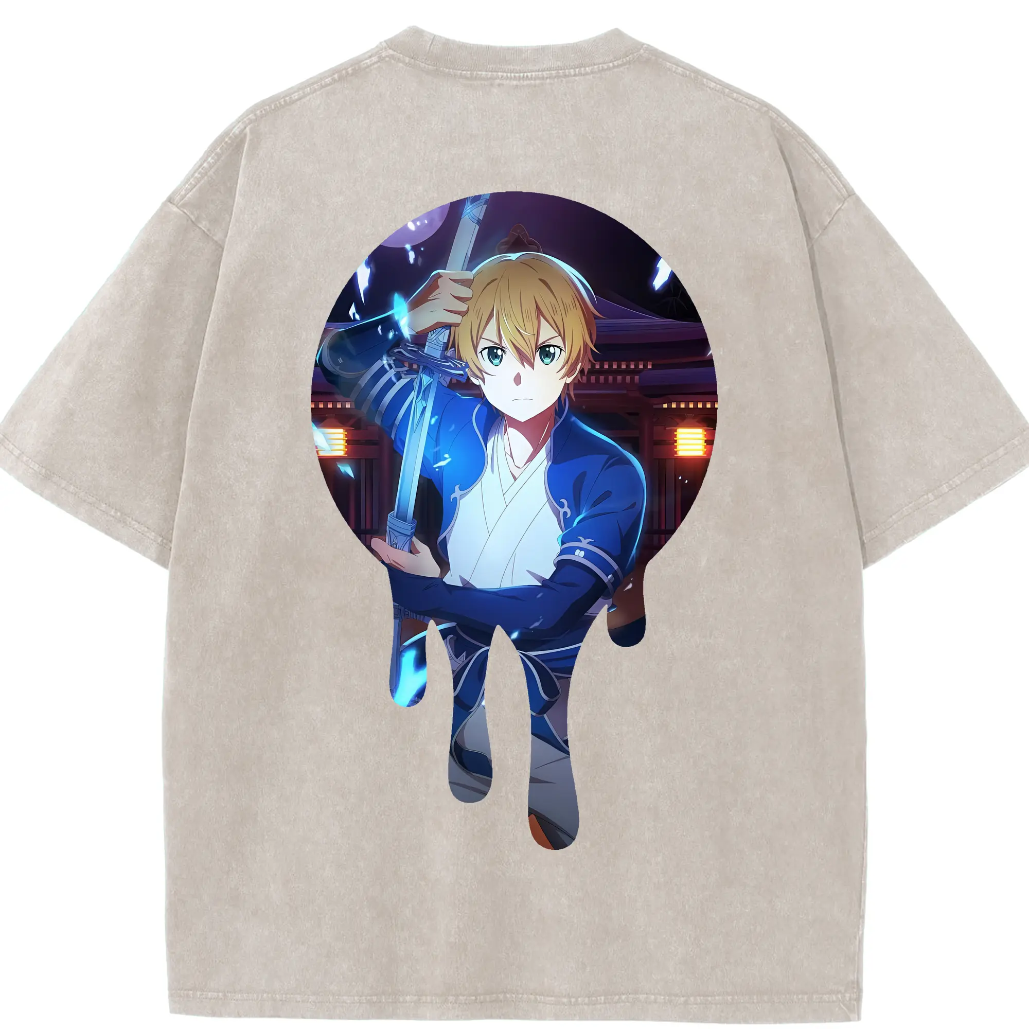 ソードアートオンライン グッズ ユージオ - 綿100% ヴィンテージ風 半袖Tシャツ ・ フロントプリント ・ 柔らか肌触り ・ 通気性 快適 ・ スポーツ カジュアル 外出用