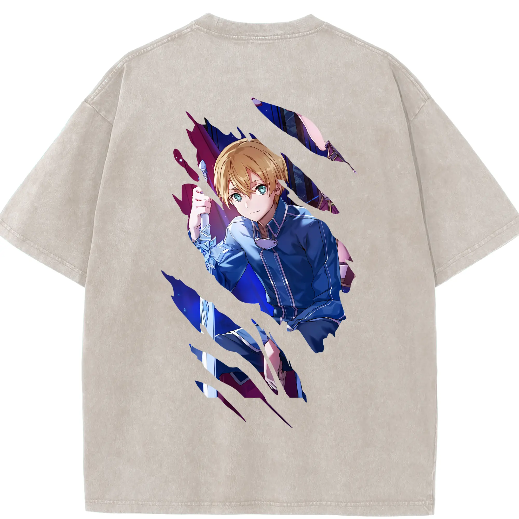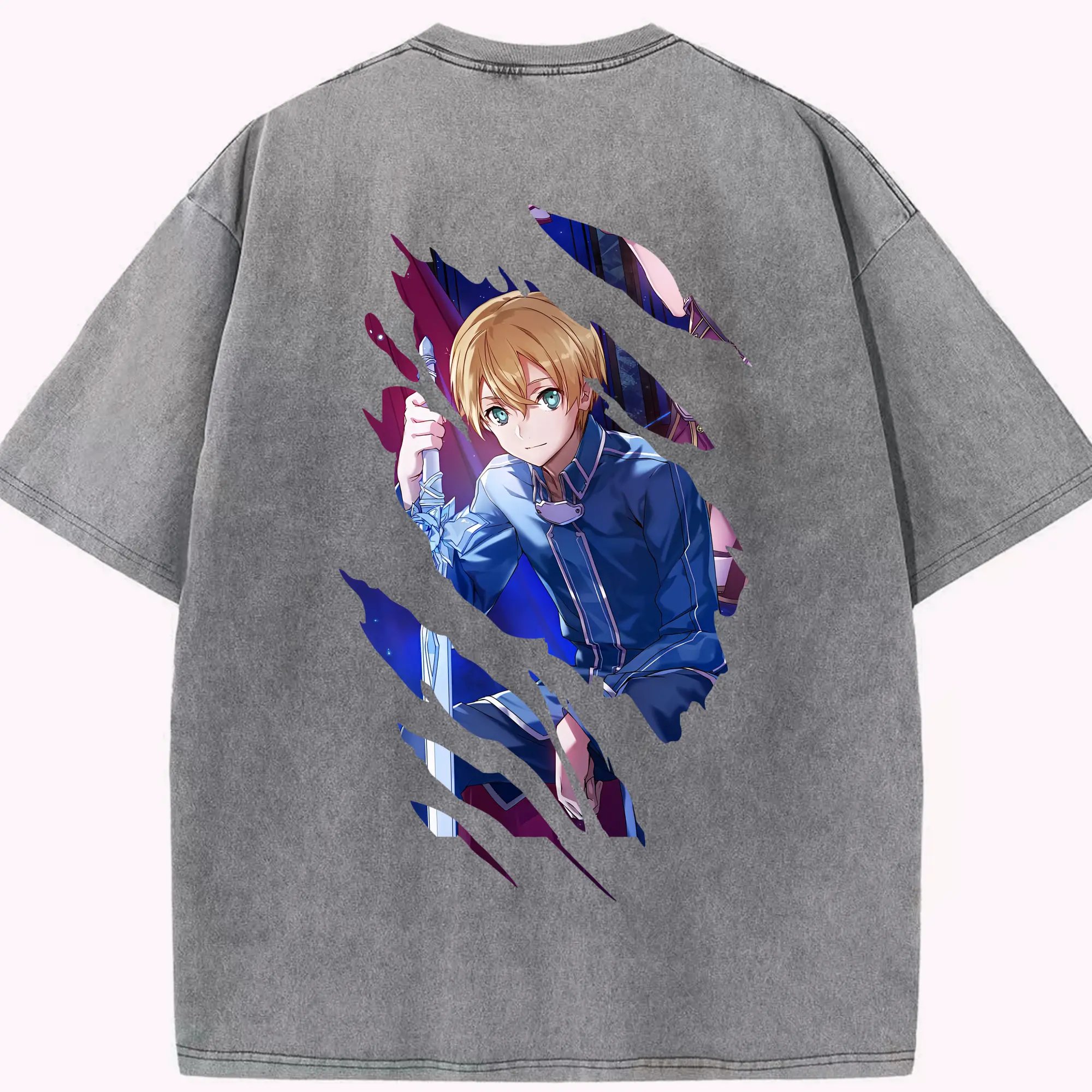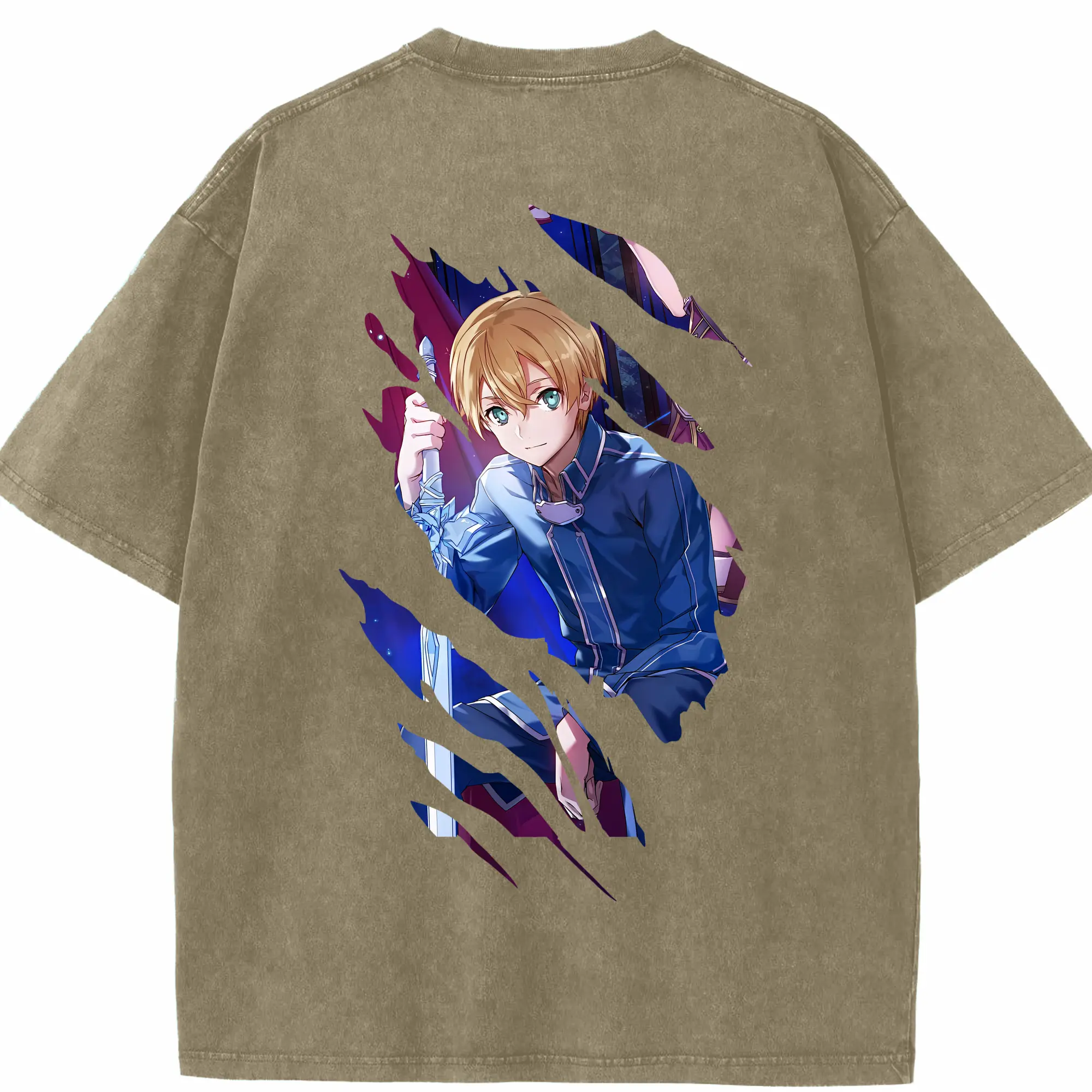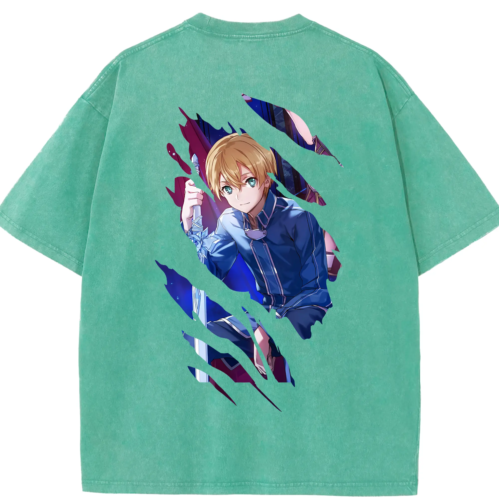 ソードアートオンライン グッズ ユージオ - 綿100% ヴィンテージ風 半袖Tシャツ ・ フロントプリント ・ 柔らか肌触り ・ 通気性 快適 ・ スポーツ カジュアル 外出用