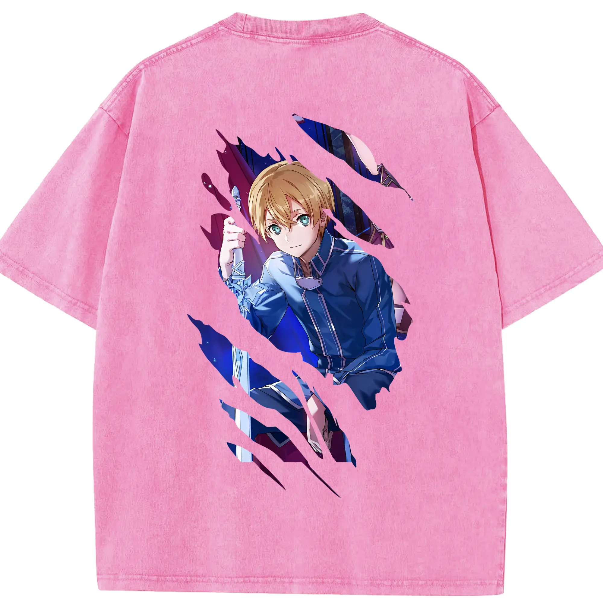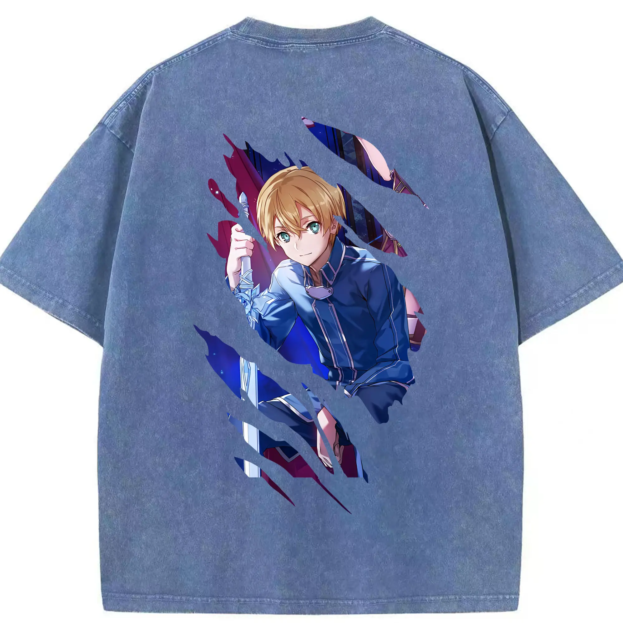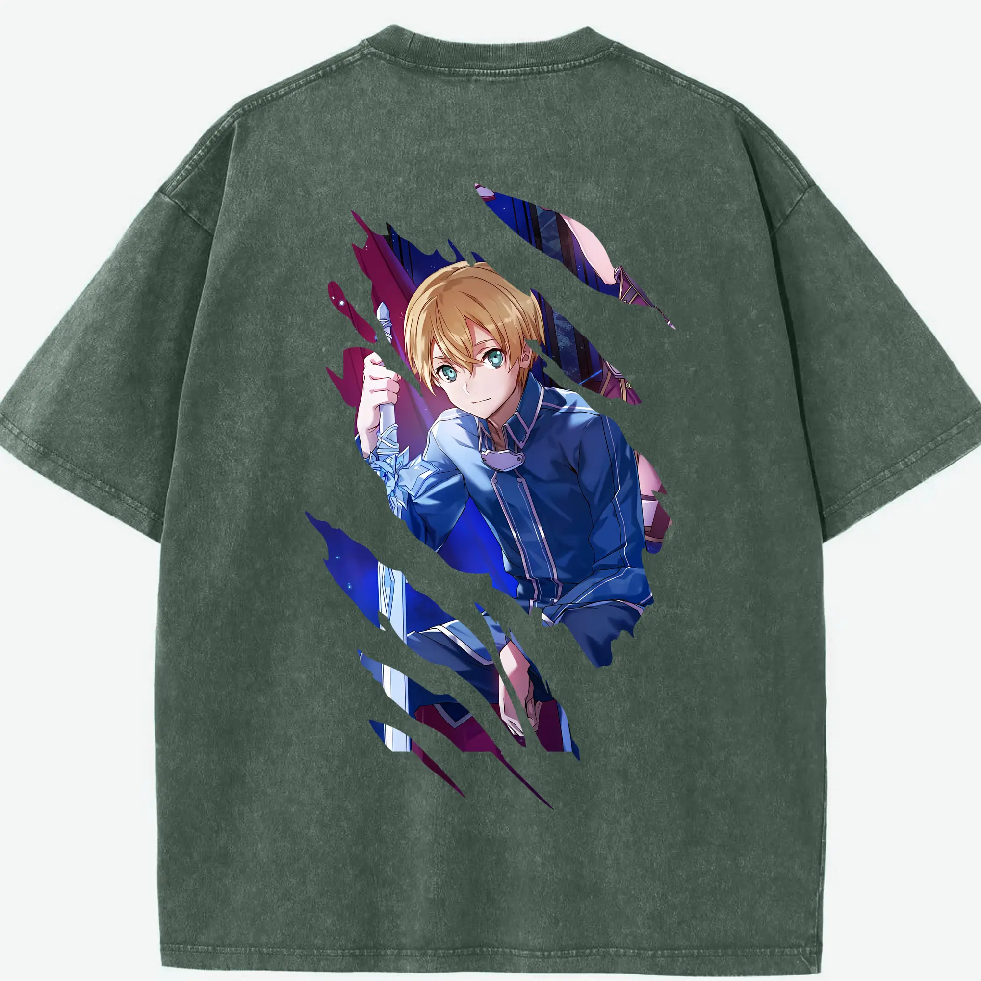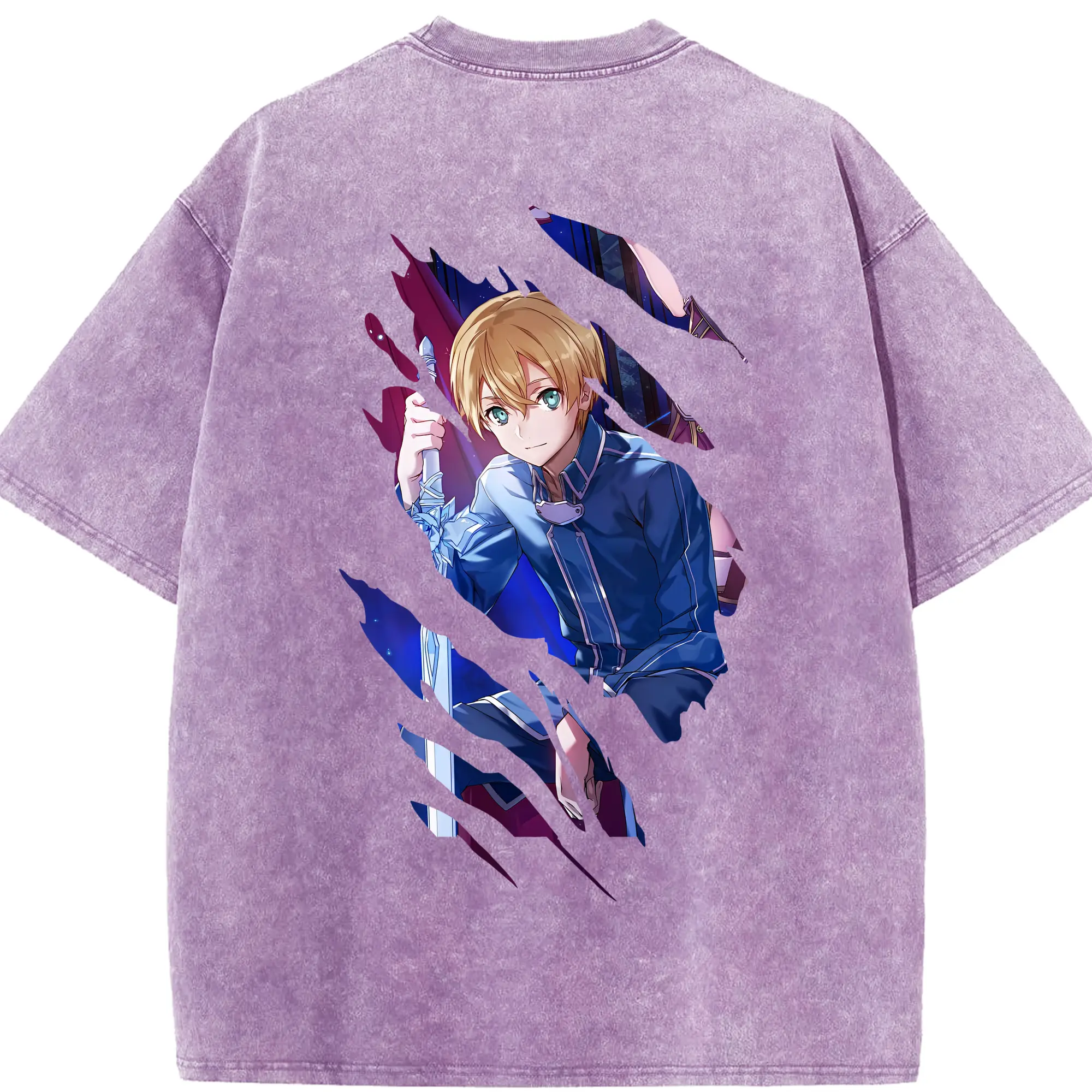 ソードアートオンライン グッズ ユージオ - 綿100% ヴィンテージ風 半袖Tシャツ ・ フロントプリント ・ 柔らか肌触り ・ 通気性 快適 ・ スポーツ カジュアル 外出用