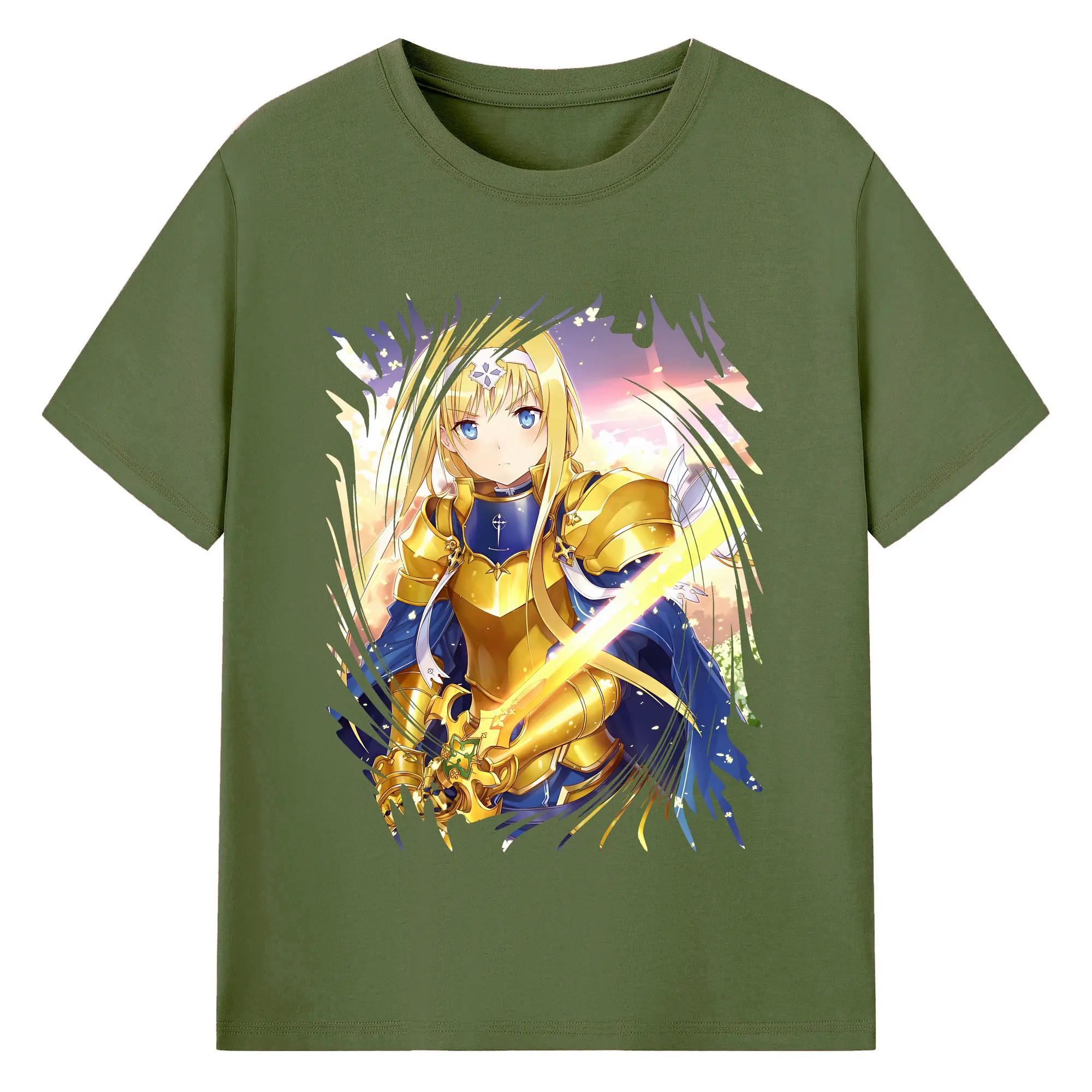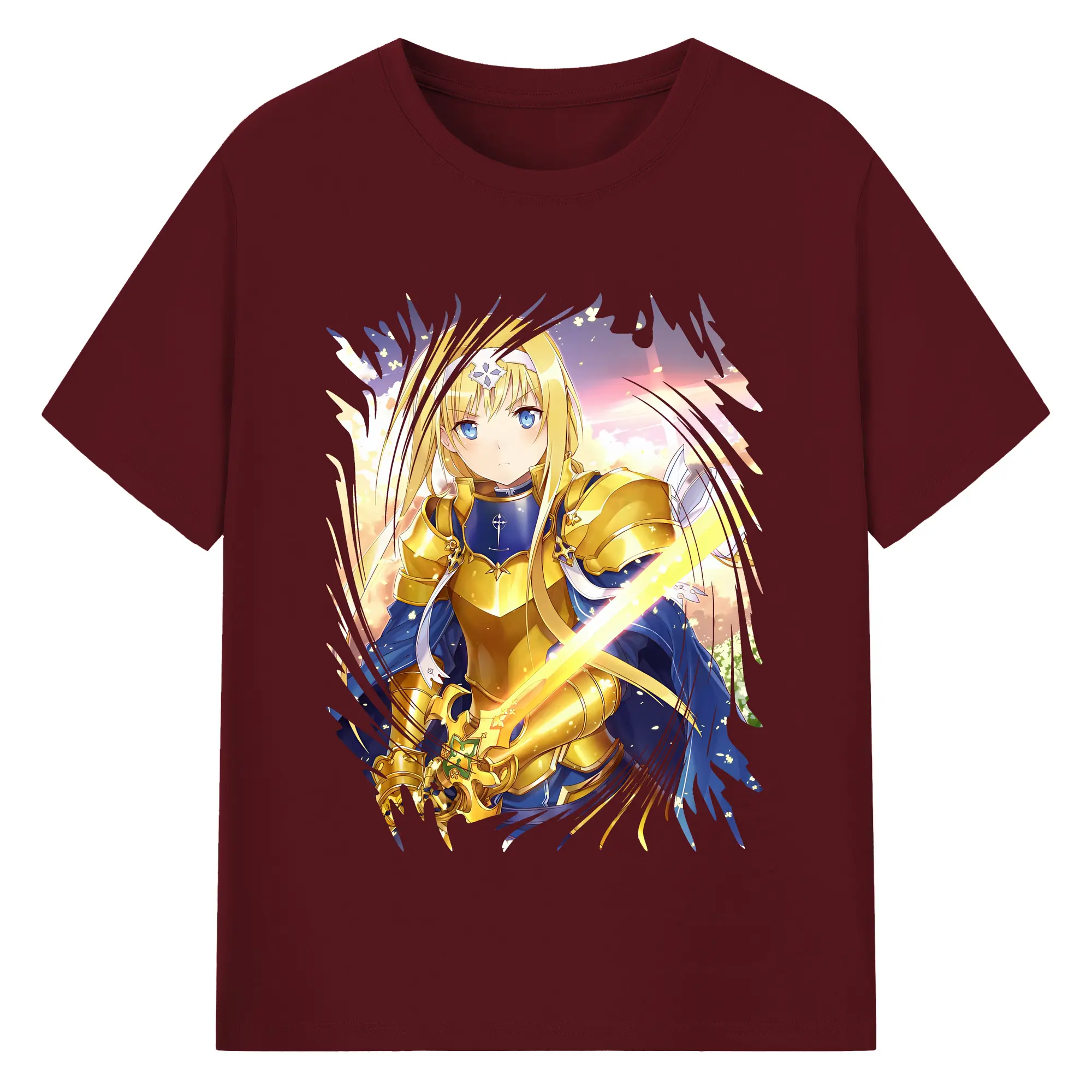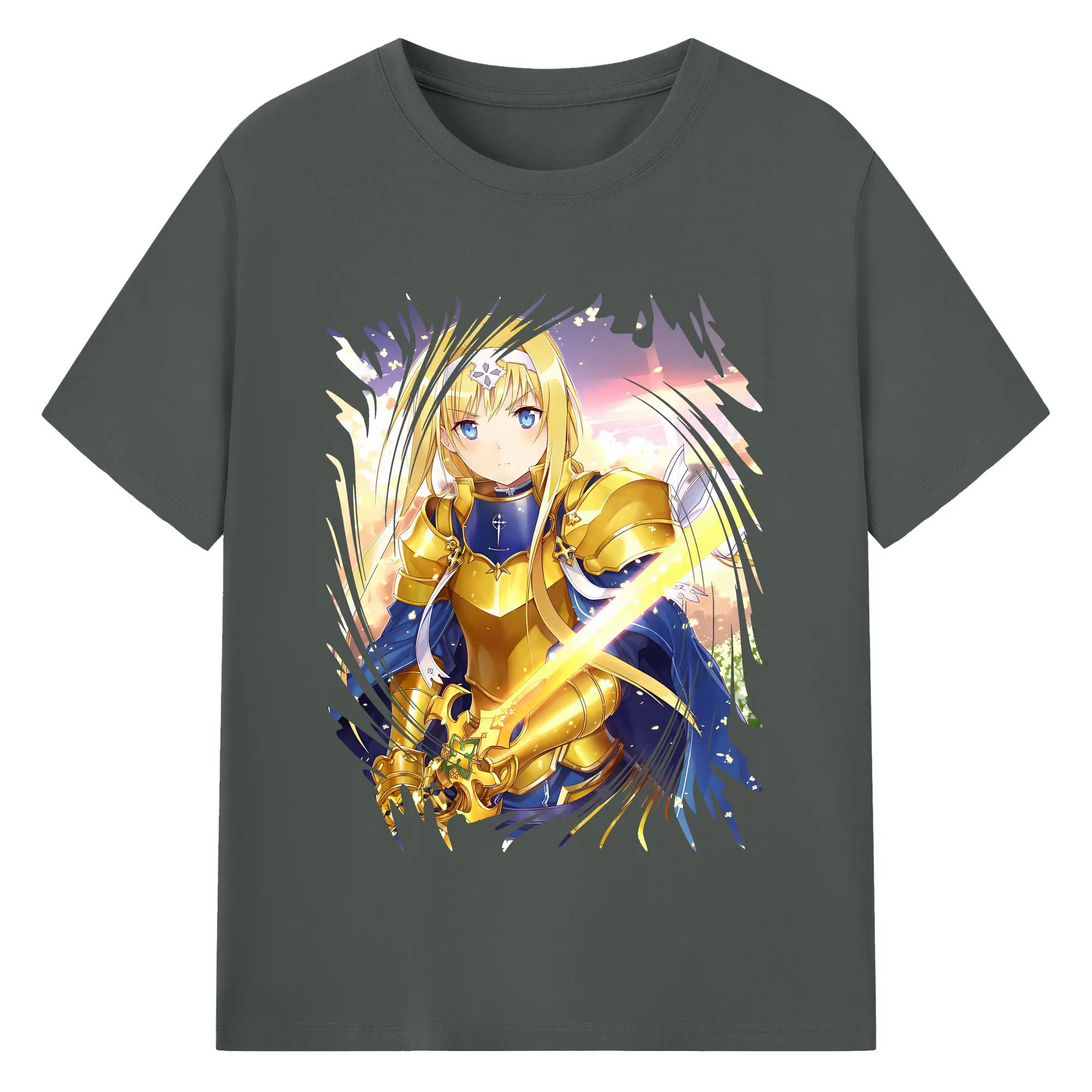 ソードアートオンライン グッズ アリス・ツーベルク - 綿100% 半袖Tシャツ ・ バックプリント ・ 快適 通気性 ・ 日常使い 散歩 スポーツ用