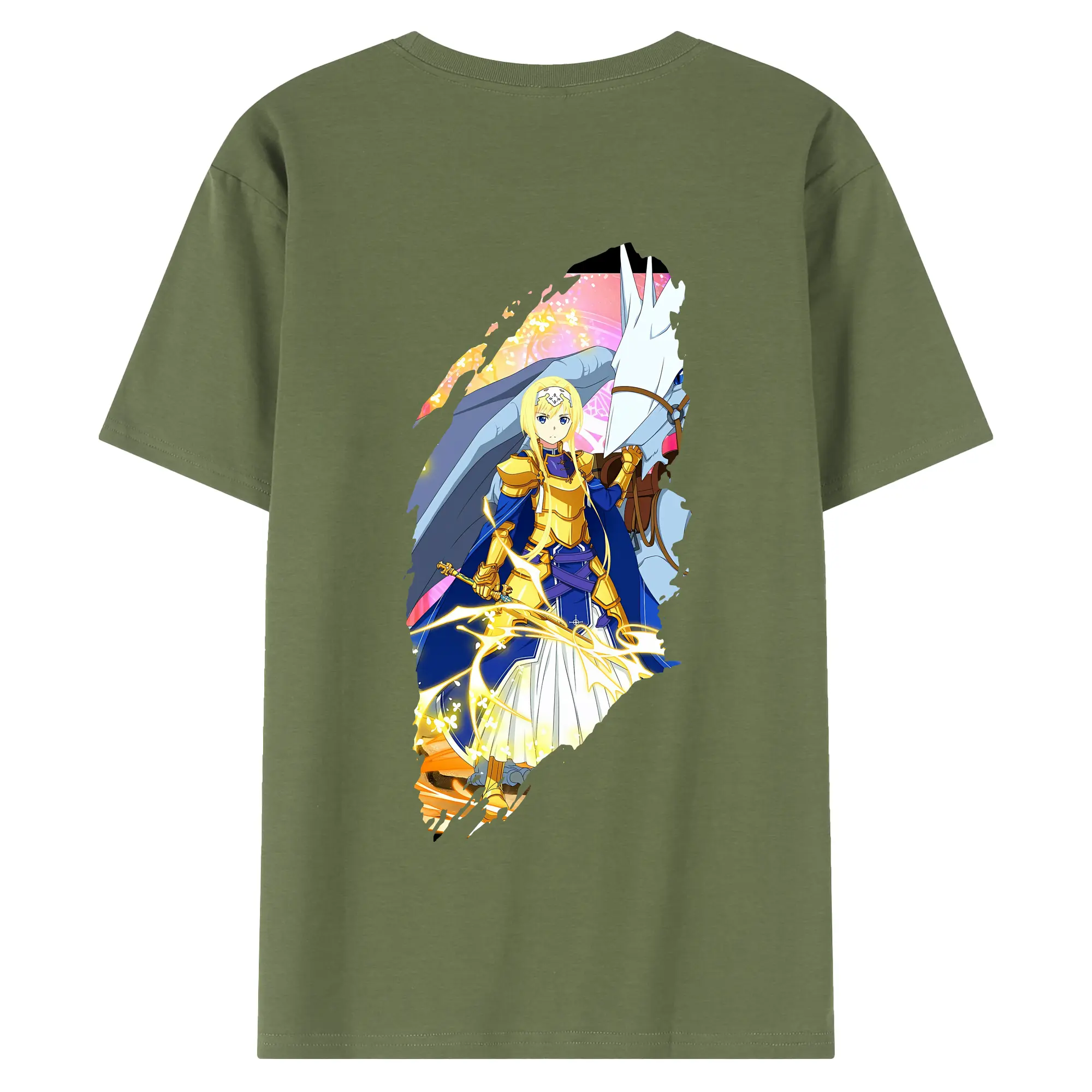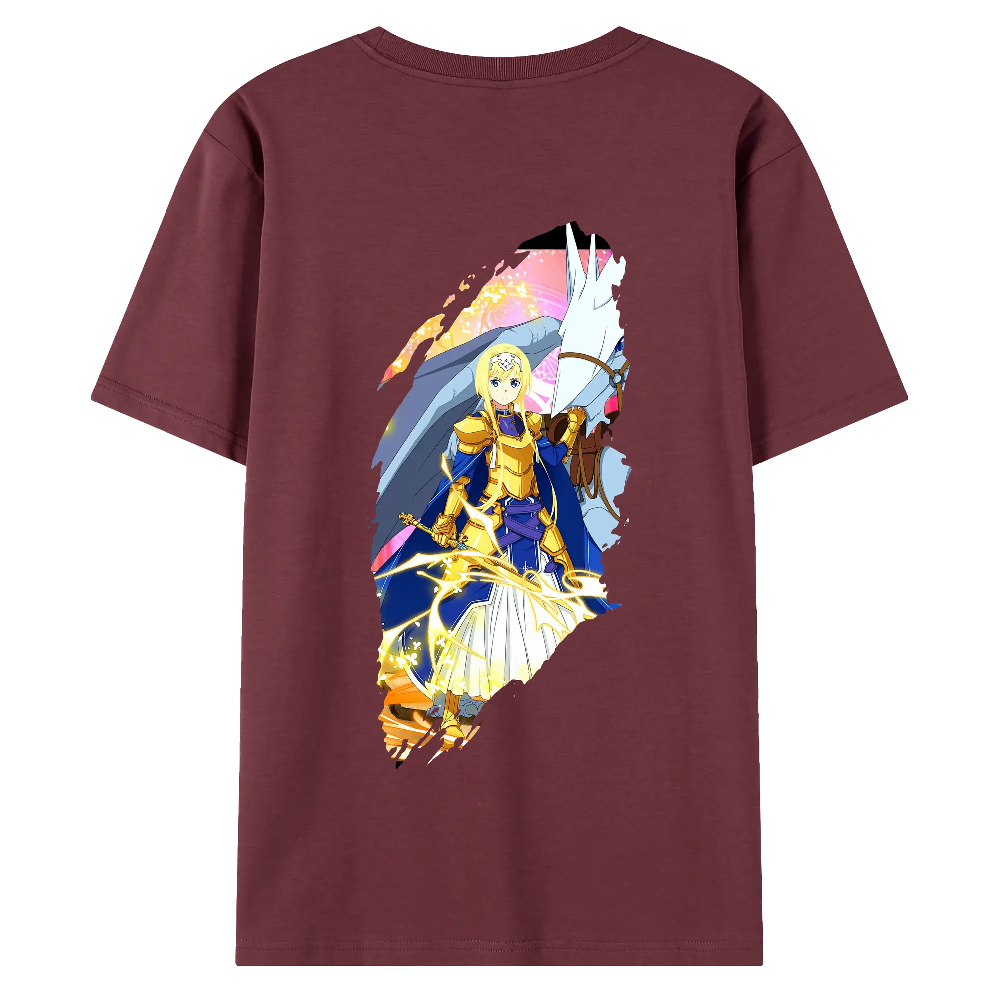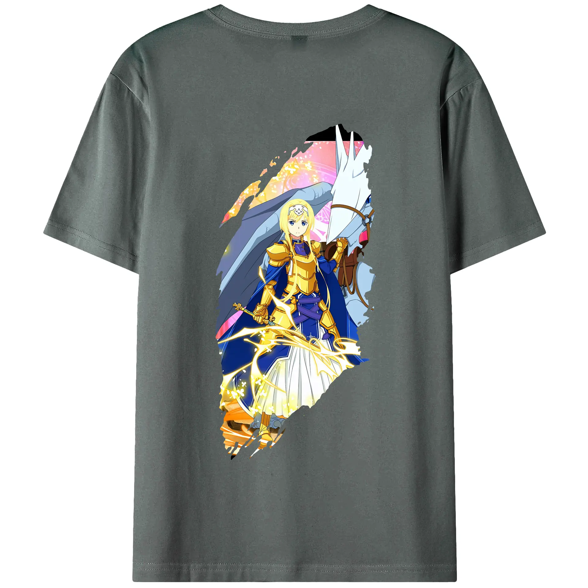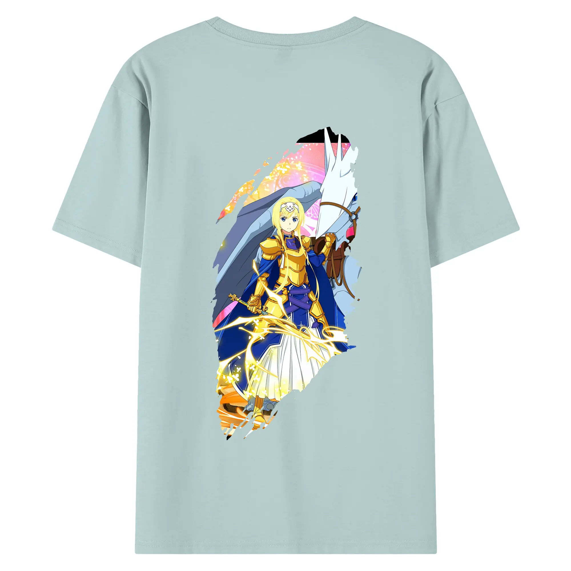 ソードアートオンライン グッズ アリス・ツーベルク - 綿100% 半袖Tシャツ ・ フロントプリント ・ 快適 通気性 ・ 日常使い 散歩 スポーツ用