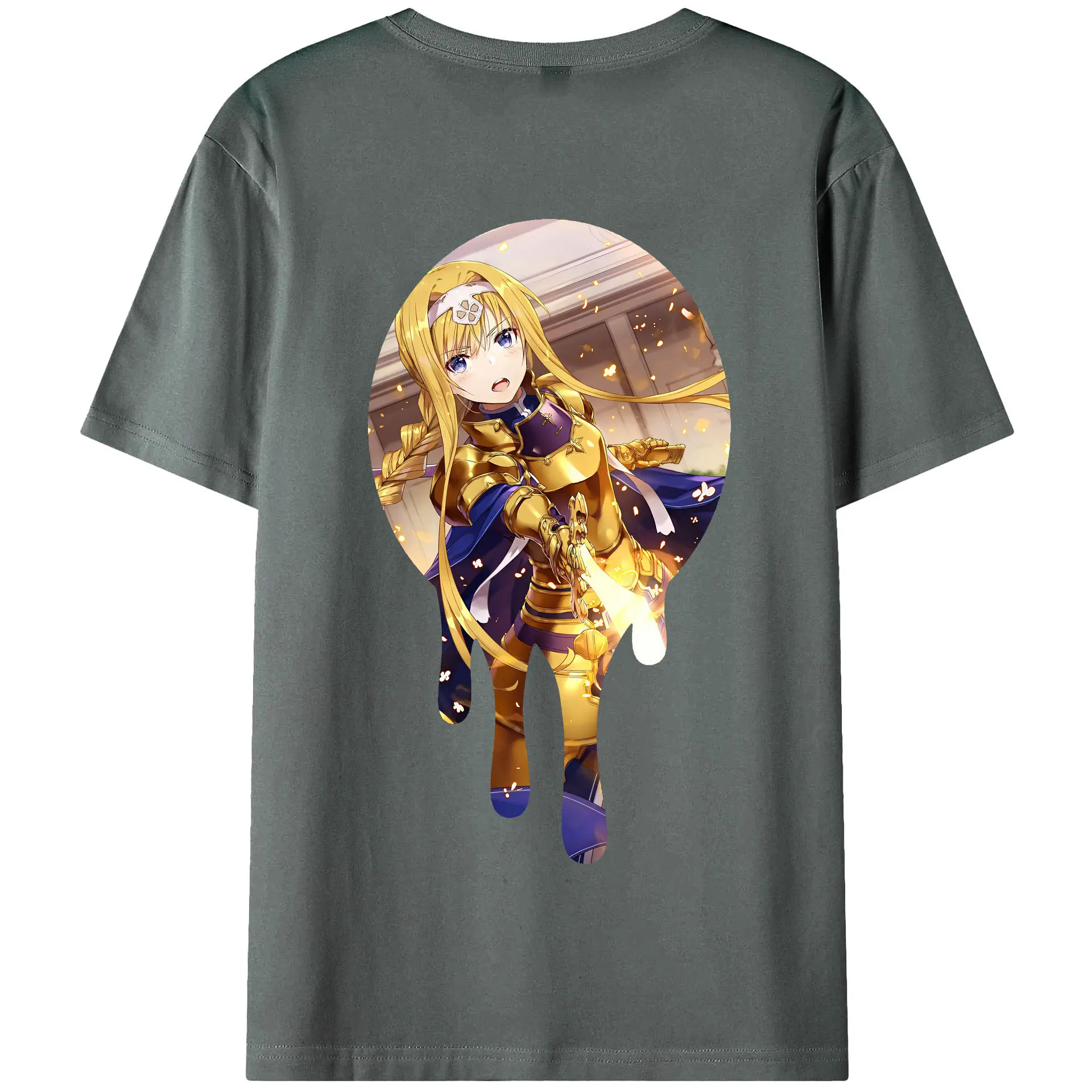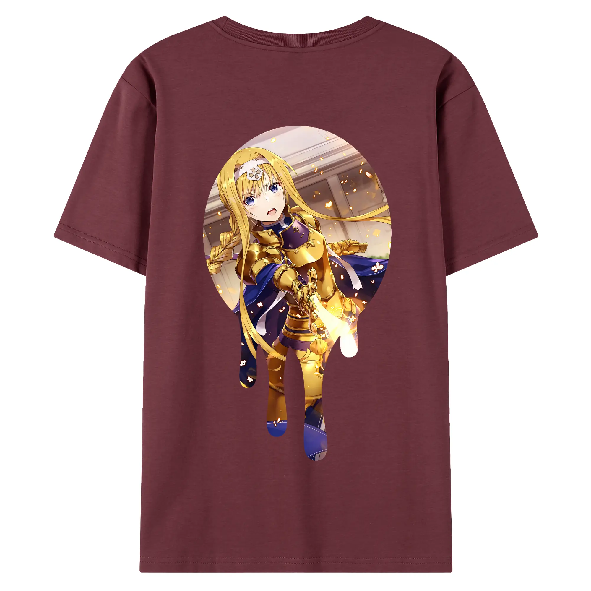 ソードアートオンライン グッズ アリス・ツーベルク - 綿100% 半袖Tシャツ ・ フロントプリント ・ 快適 通気性 ・ 日常使い 散歩 スポーツ用