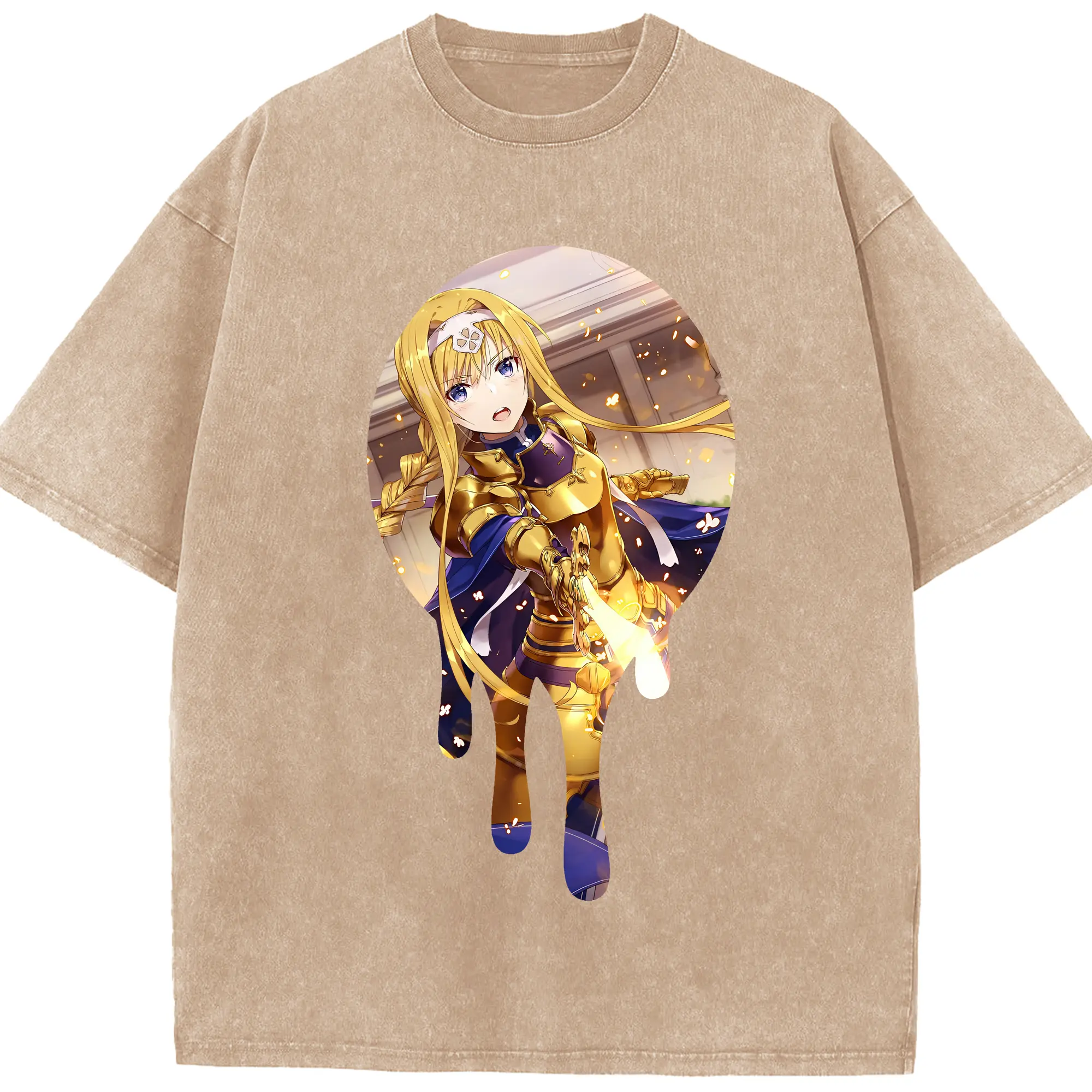 ソードアートオンライン グッズ アリス・ツーベルク - 綿100% ヴィンテージ風 半袖Tシャツ ・ 背面プリント ・ 柔らか肌触り ・ 通気性 快適 ・ スポーツ カジュアル 外出用