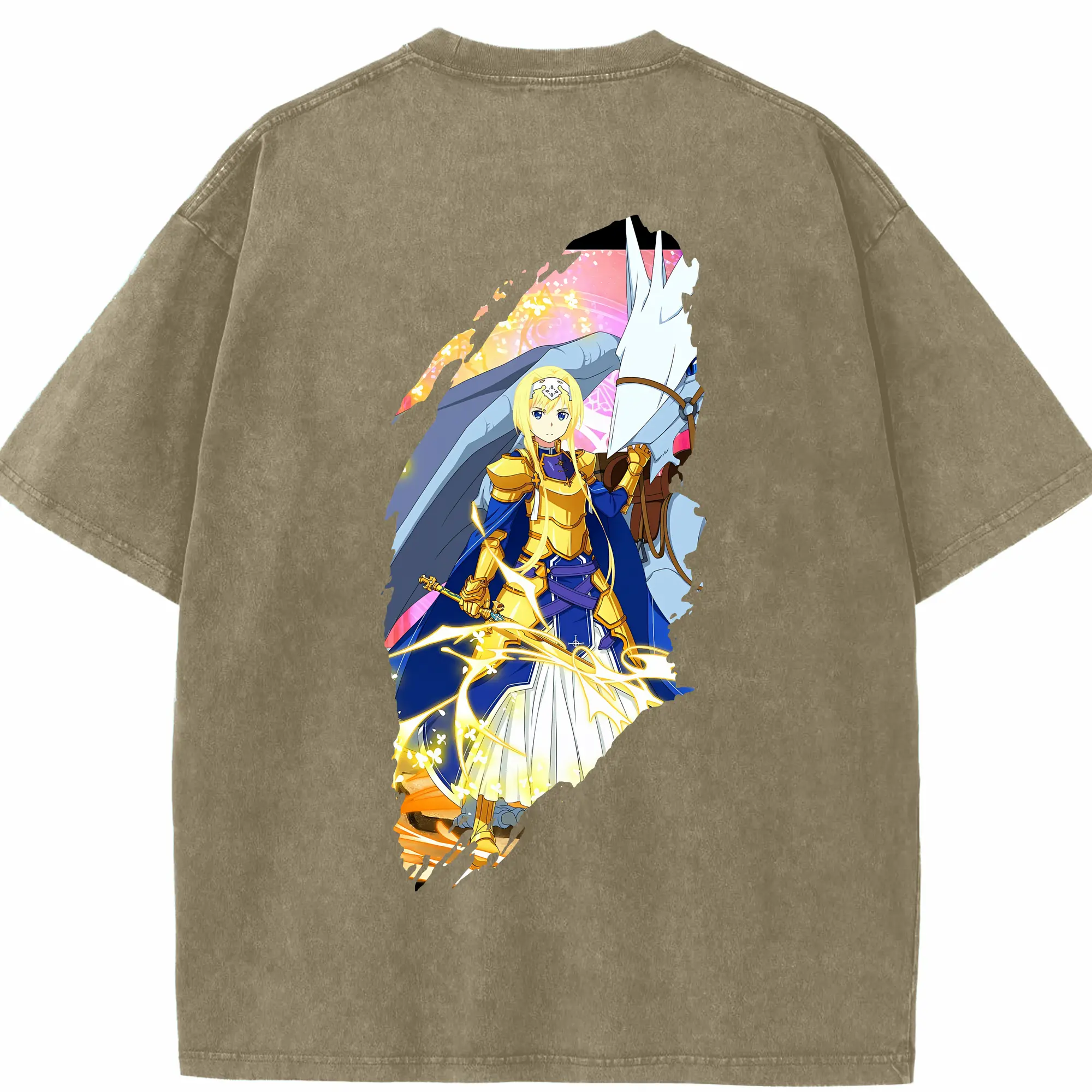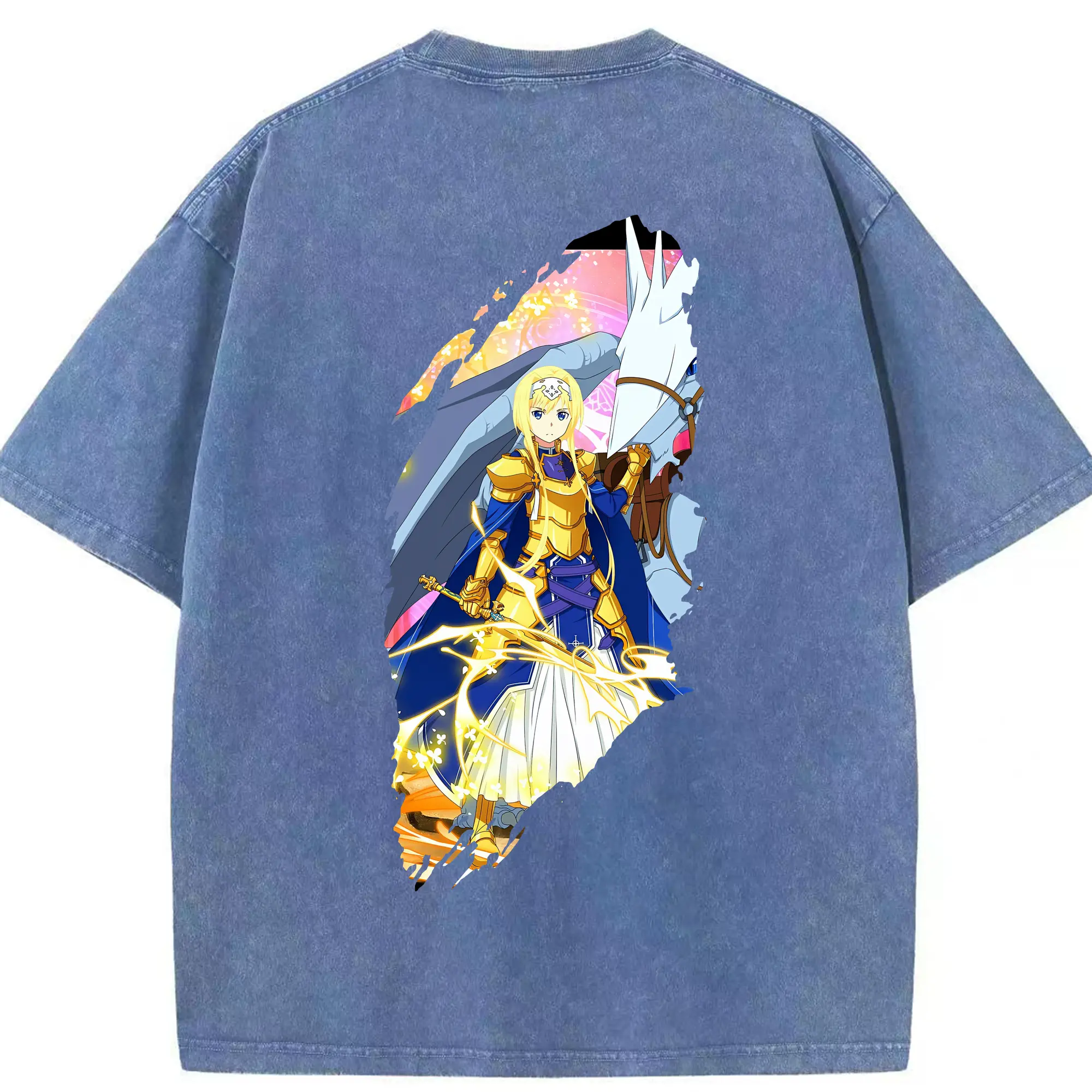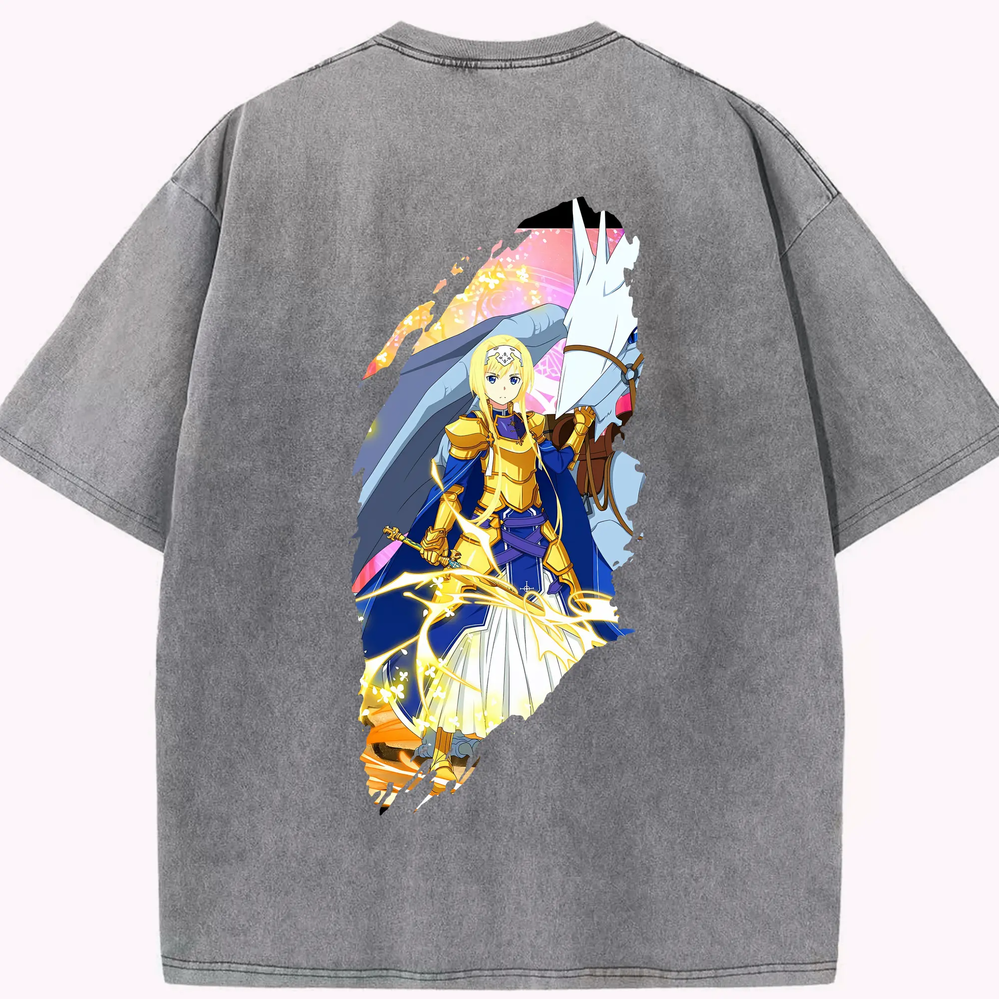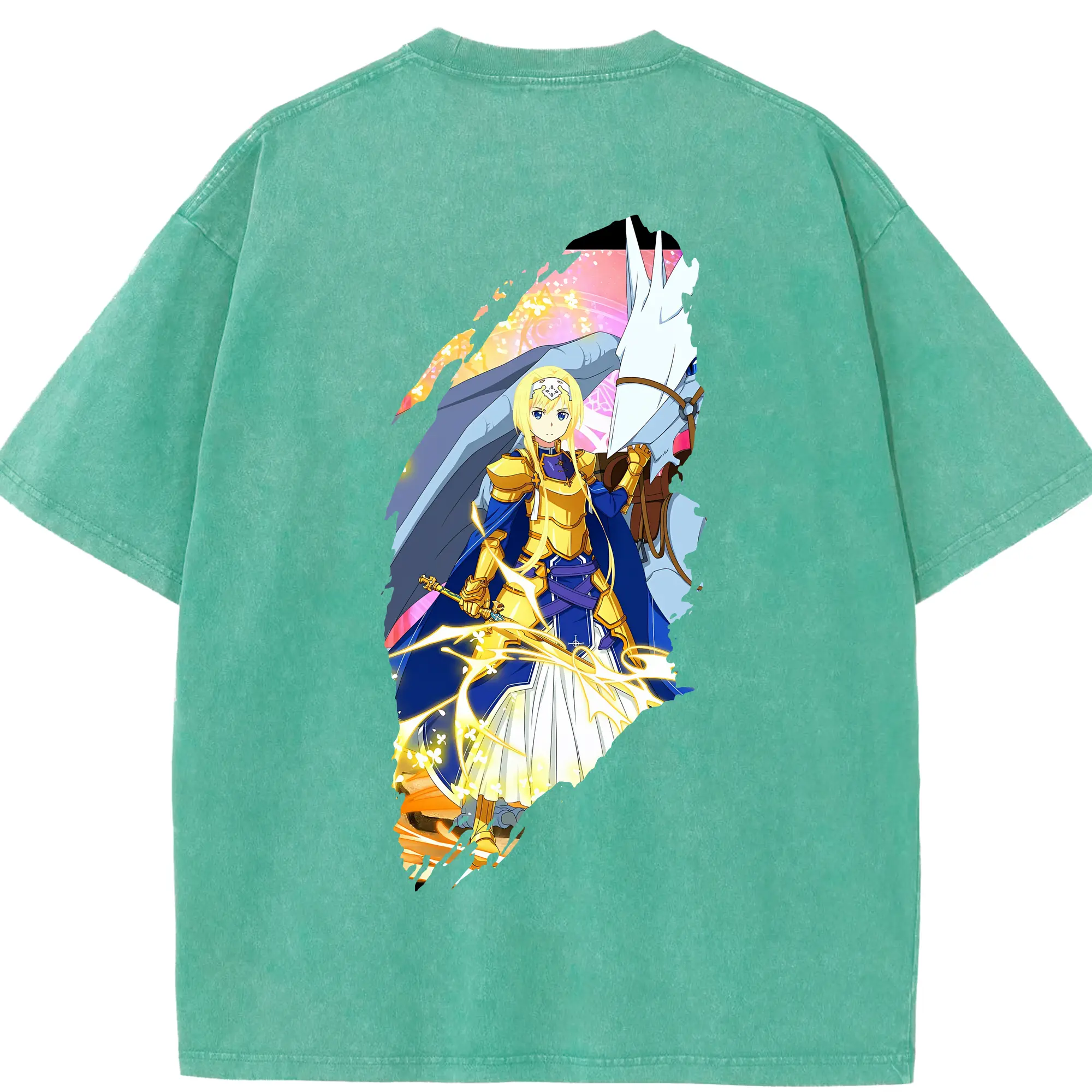 ソードアートオンライン グッズ アリス・ツーベルク - 綿100% ヴィンテージ風 半袖Tシャツ ・ フロントプリント ・ 柔らか肌触り ・ 通気性 快適 ・ スポーツ カジュアル 外出用