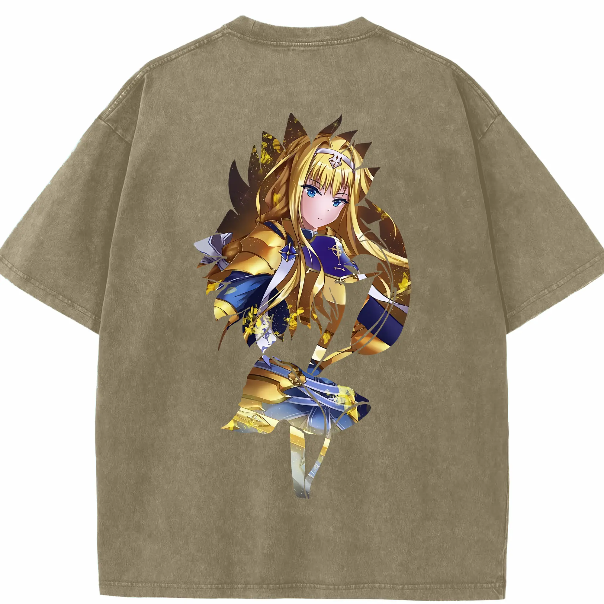 ソードアートオンライン グッズ アリス・ツーベルク - 綿100% ヴィンテージ風 半袖Tシャツ ・ フロントプリント ・ 柔らか肌触り ・ 通気性 快適 ・ スポーツ カジュアル 外出用