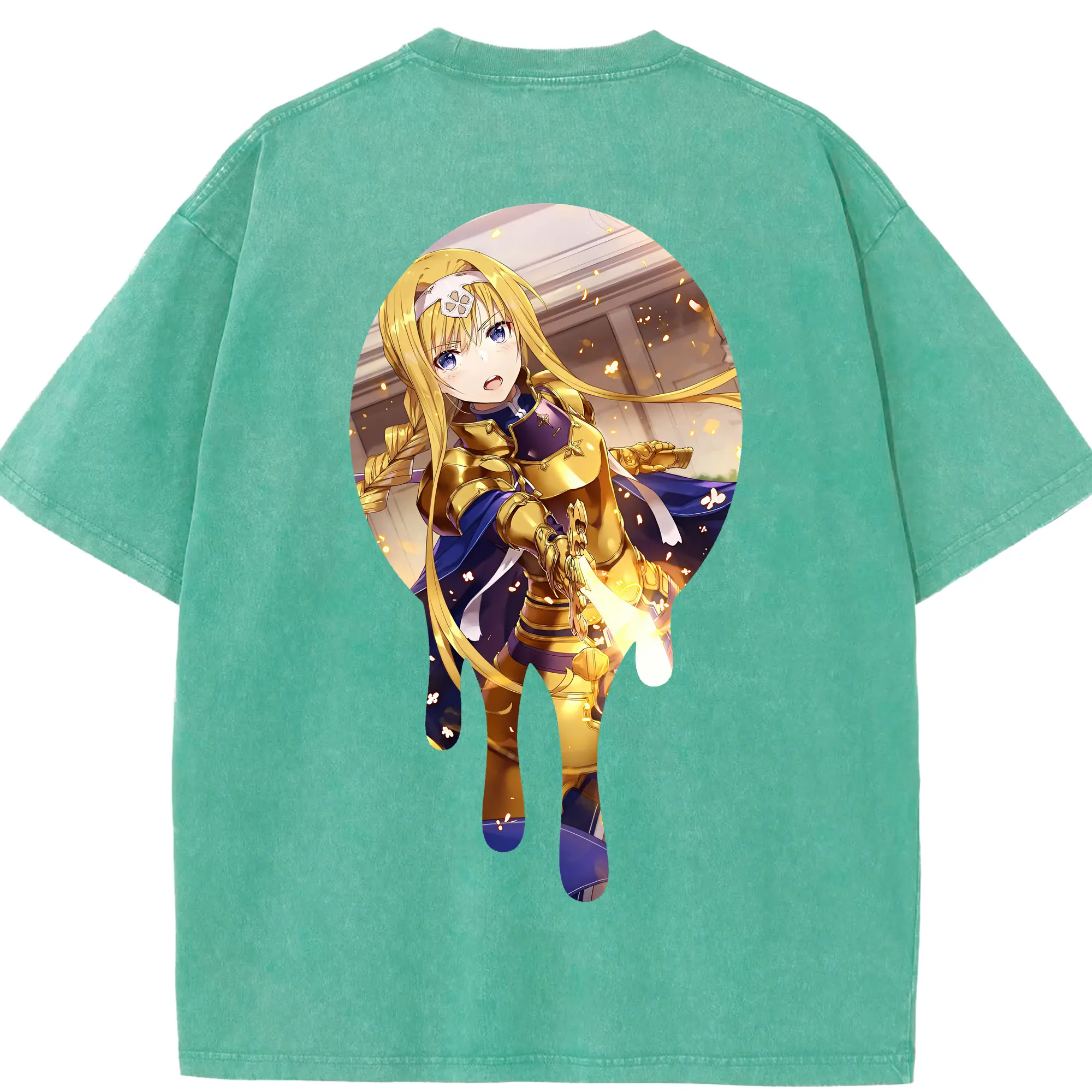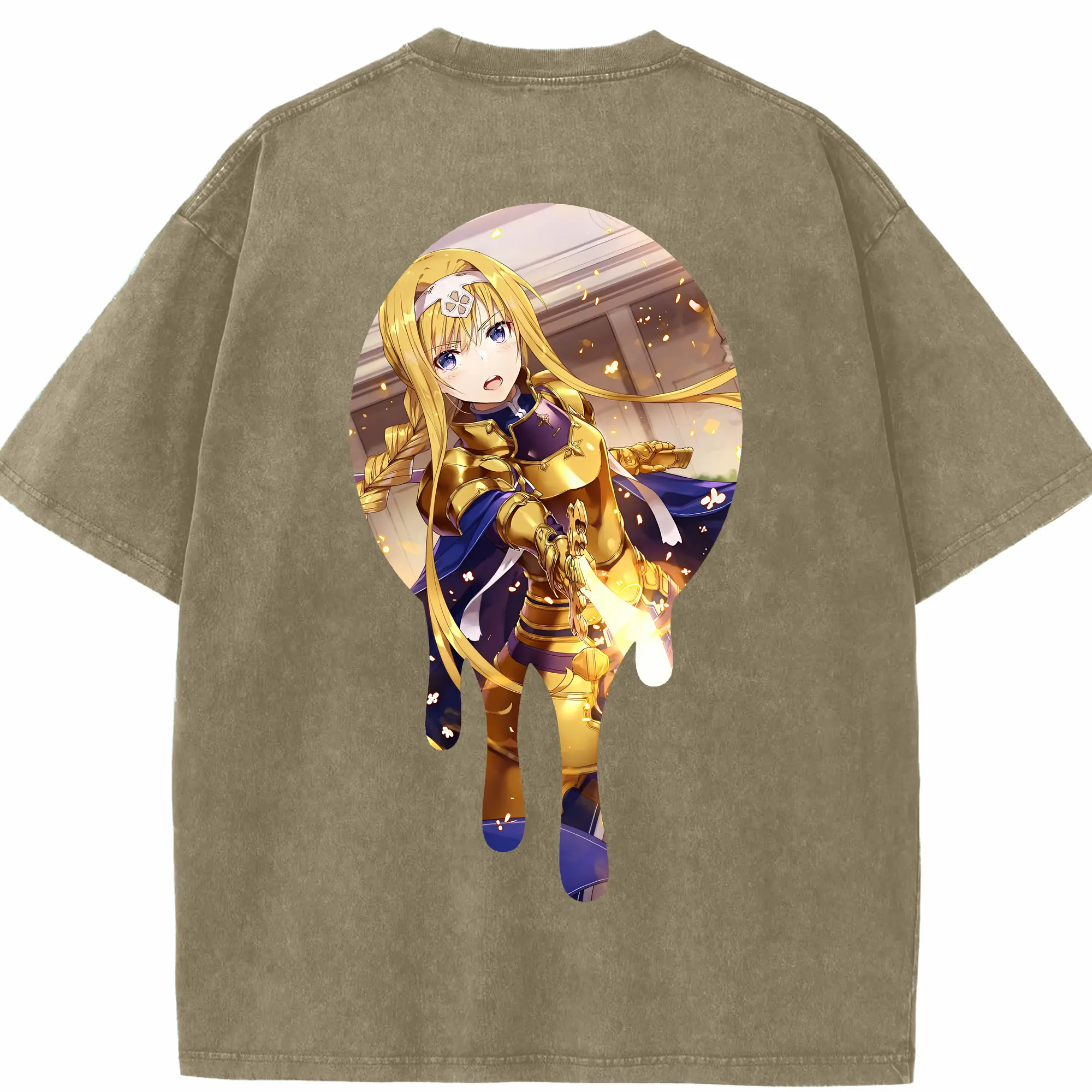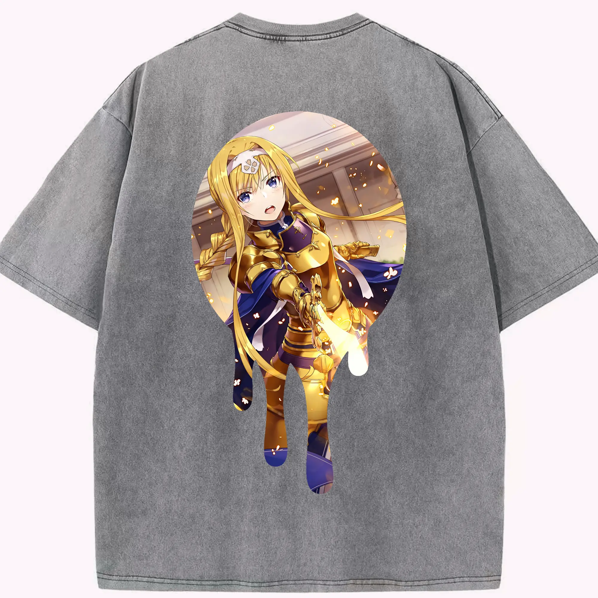 ソードアートオンライン グッズ アリス・ツーベルク - 綿100% ヴィンテージ風 半袖Tシャツ ・ フロントプリント ・ 柔らか肌触り ・ 通気性 快適 ・ スポーツ カジュアル 外出用