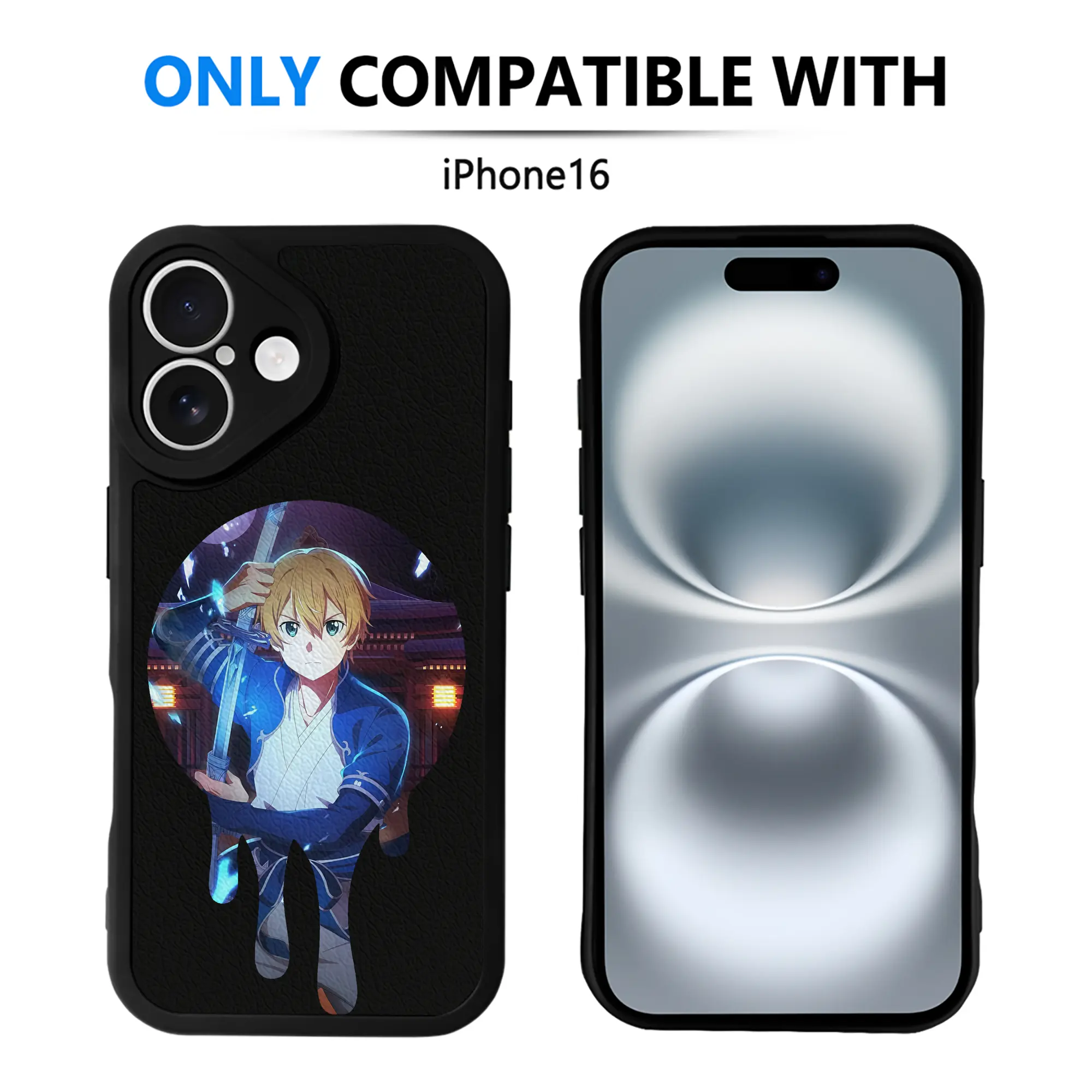 ソードアートオンライン グッズ ユージオ - IPhone 16シリーズ対応 ・ シリコンスマホケース ・ レザー調 ・ 高精度フィット ・ 耐衝撃 ・ ワイヤレス充電対応 ・ 精密カット