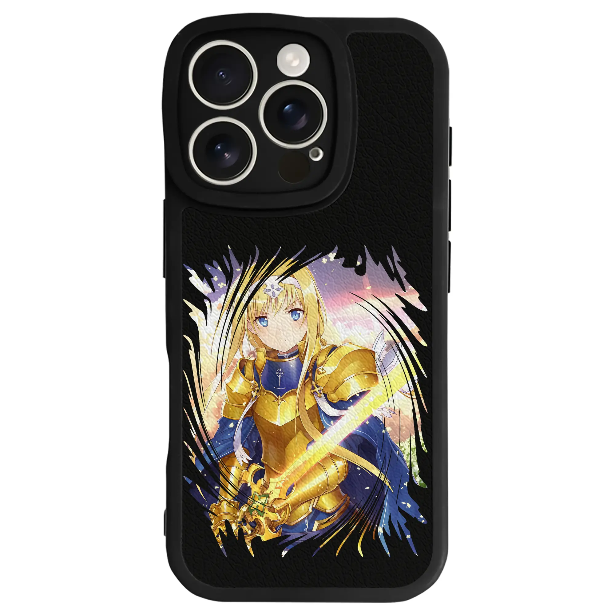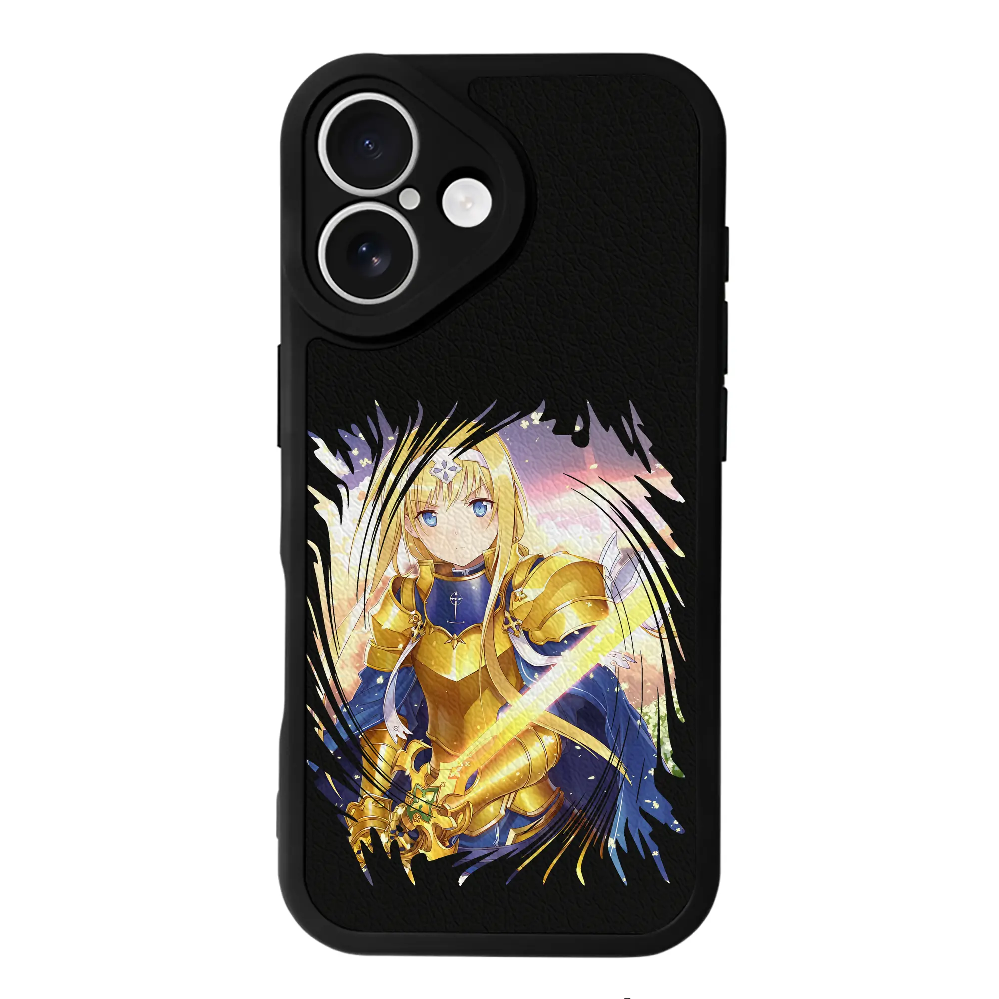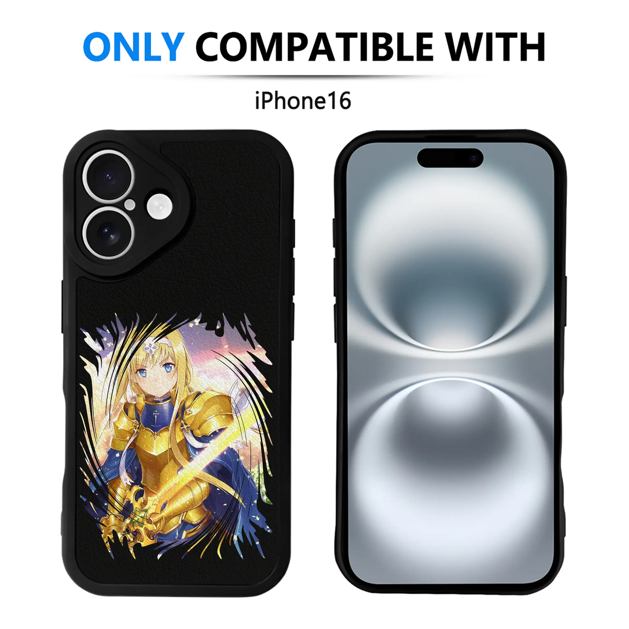 ソードアートオンライン グッズ アリス・ツーベルク - IPhone 16シリーズ対応 ・ シリコンスマホケース ・ レザー調 ・ 高精度フィット ・ 耐衝撃 ・ ワイヤレス充電対応 ・ 精密カット