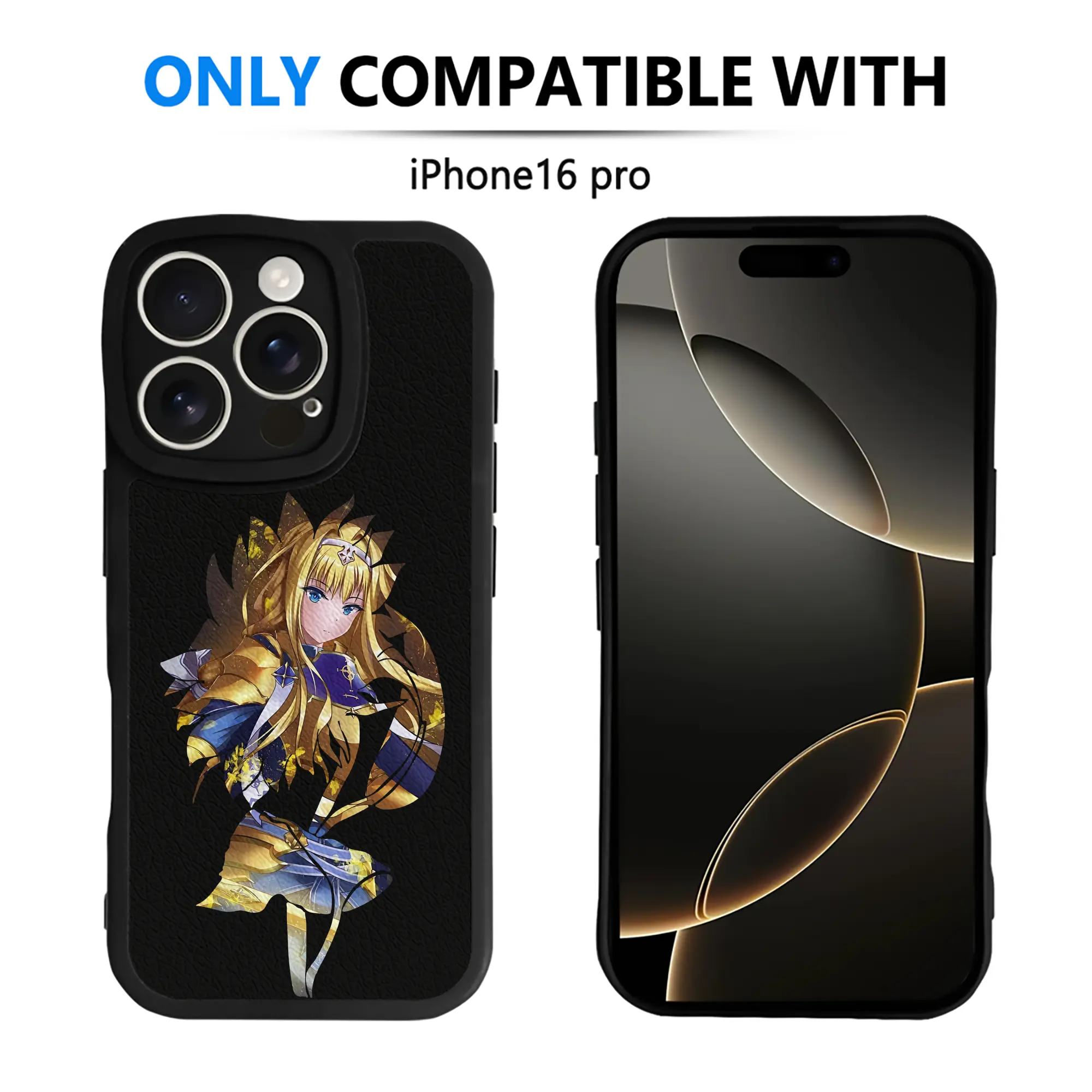 ソードアートオンライン グッズ アリス・ツーベルク - IPhone 16シリーズ対応 ・ シリコンスマホケース ・ レザー調 ・ 高精度フィット ・ 耐衝撃 ・ ワイヤレス充電対応 ・ 精密カット