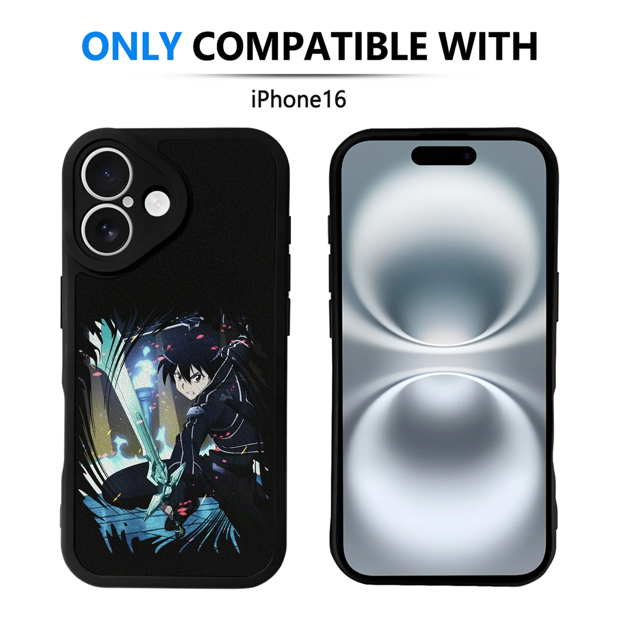 ソードアートオンライン グッズ キリト - IPhone 16シリーズ対応 ・ シリコンスマホケース ・ レザー調 ・ 高精度フィット ・ 耐衝撃 ・ ワイヤレス充電対応 ・ 精密カット