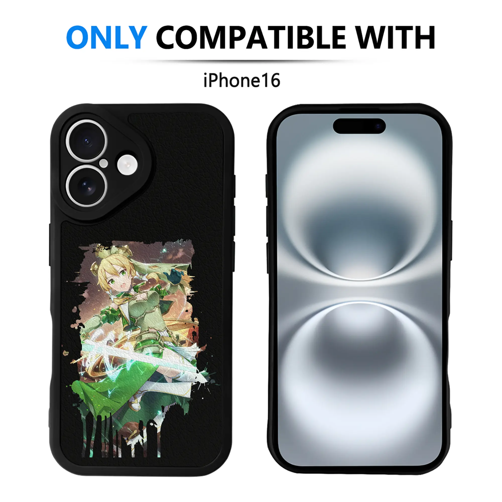 ソードアートオンライン グッズ リーファ - IPhone 16シリーズ対応 ・ シリコンスマホケース ・ レザー調 ・ 高精度フィット ・ 耐衝撃 ・ ワイヤレス充電対応 ・ 精密カット