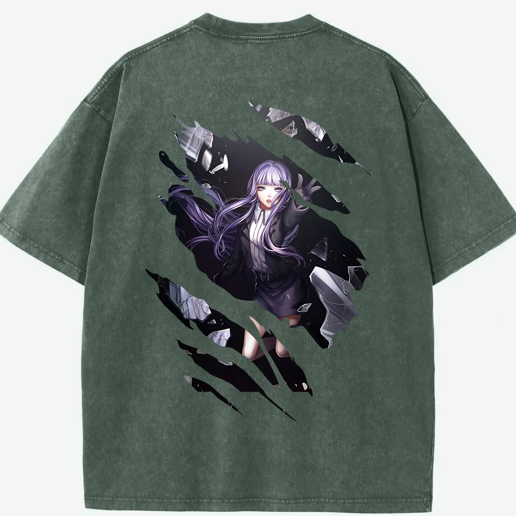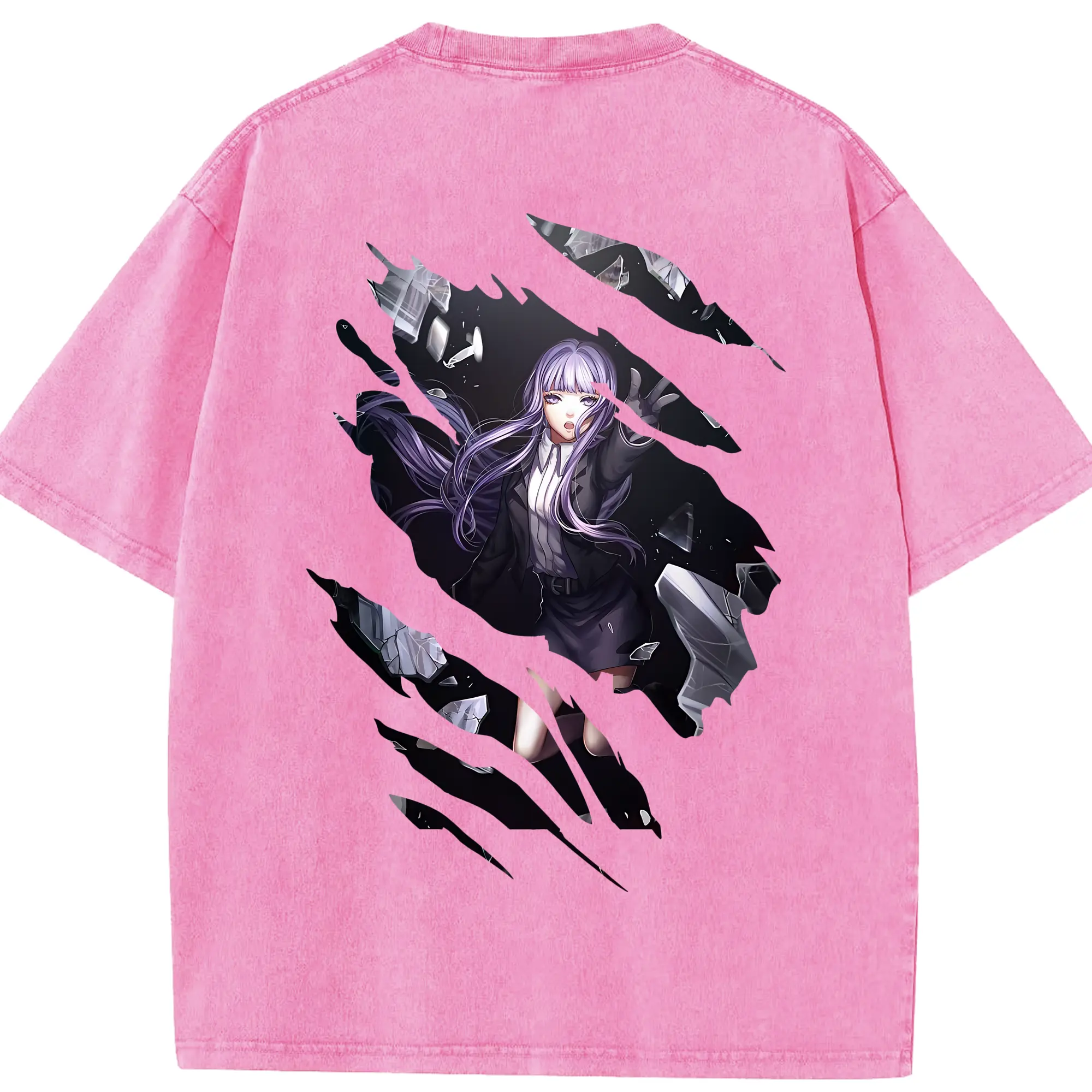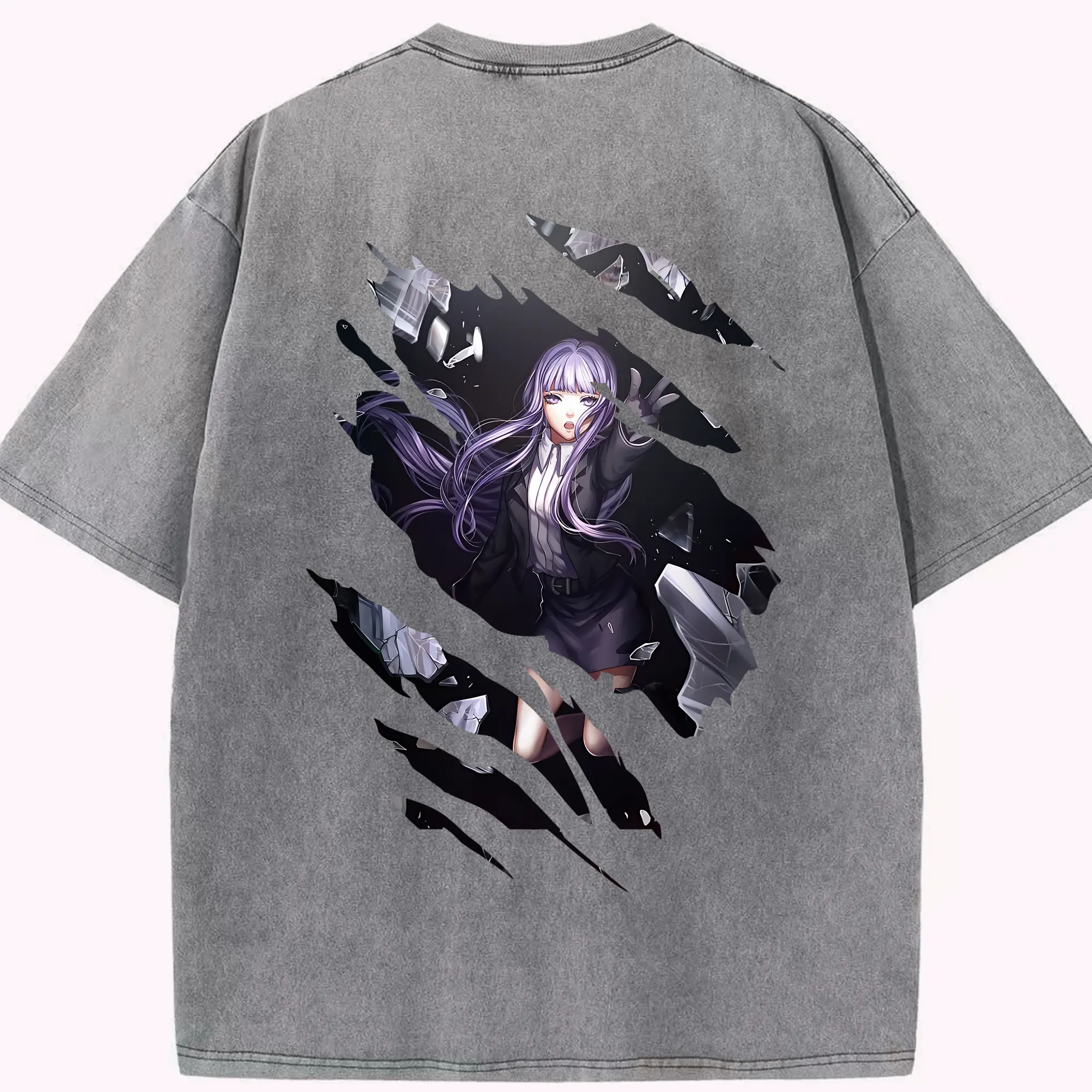 葬送のフリーレン(Frieren) グッズ,フランメ(Flamme) - 綿100% ヴィンテージ風 半袖Tシャツ ・ 背面プリント ・ 柔らか肌触り ・ 通気性 快適 ・ スポーツ カジュアル 外出用