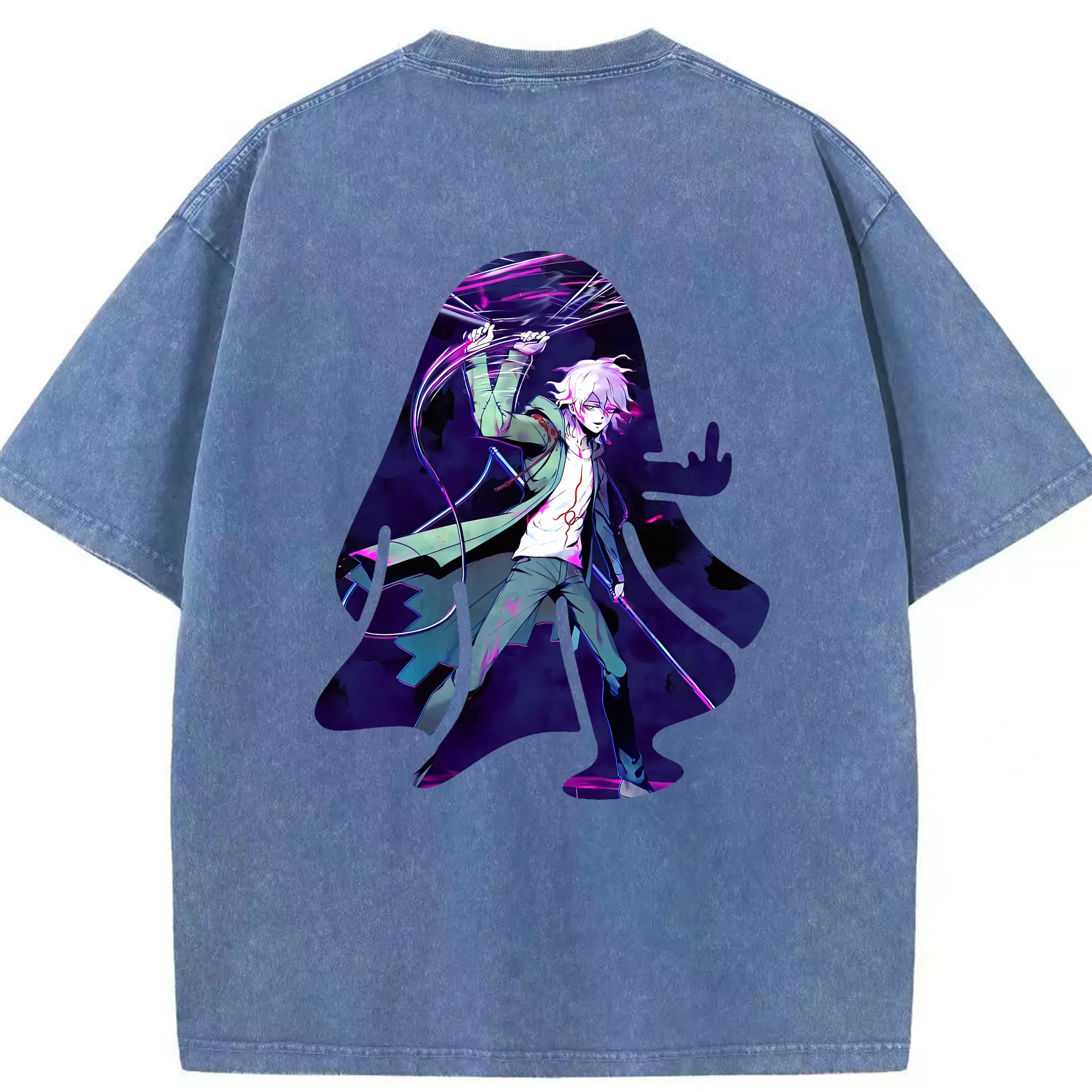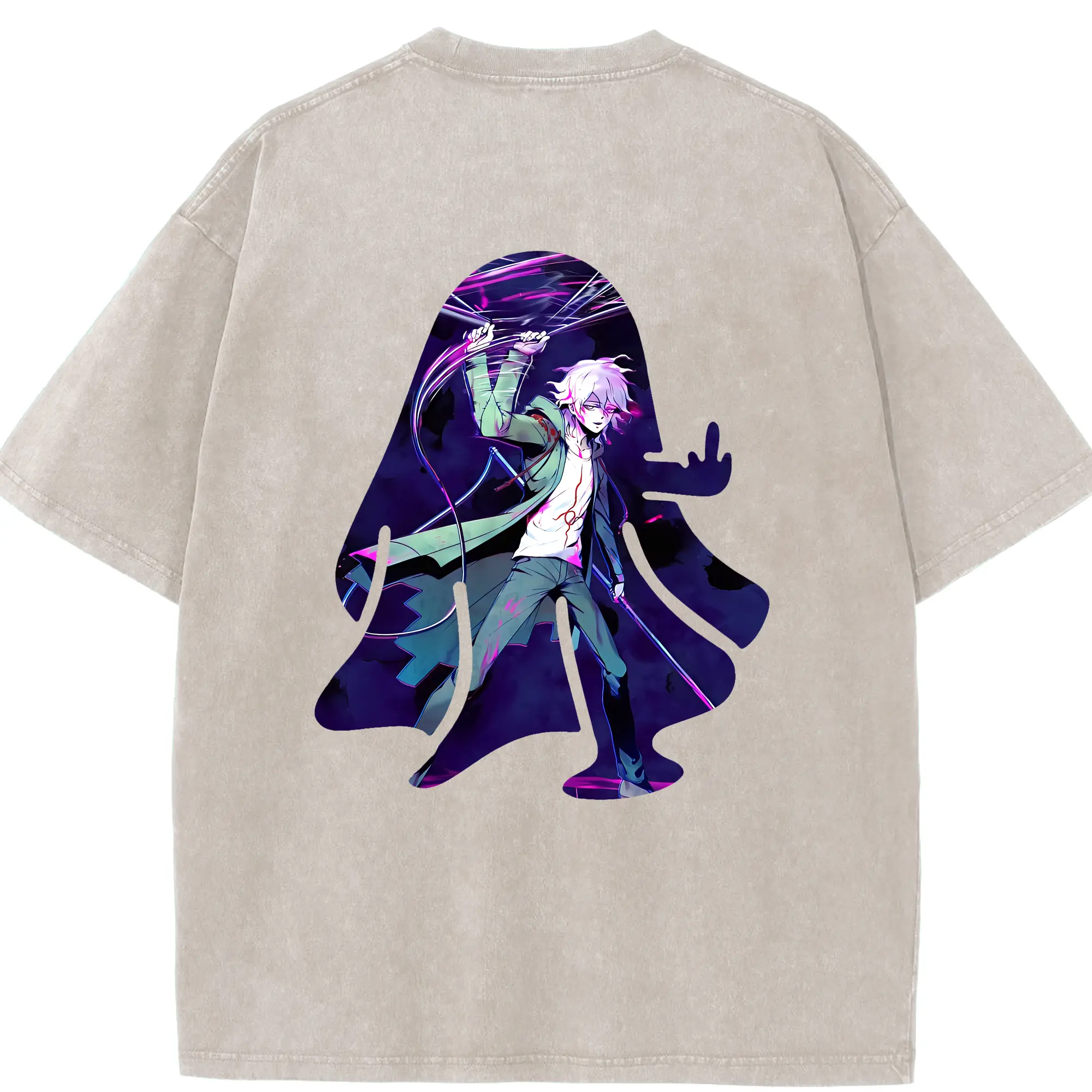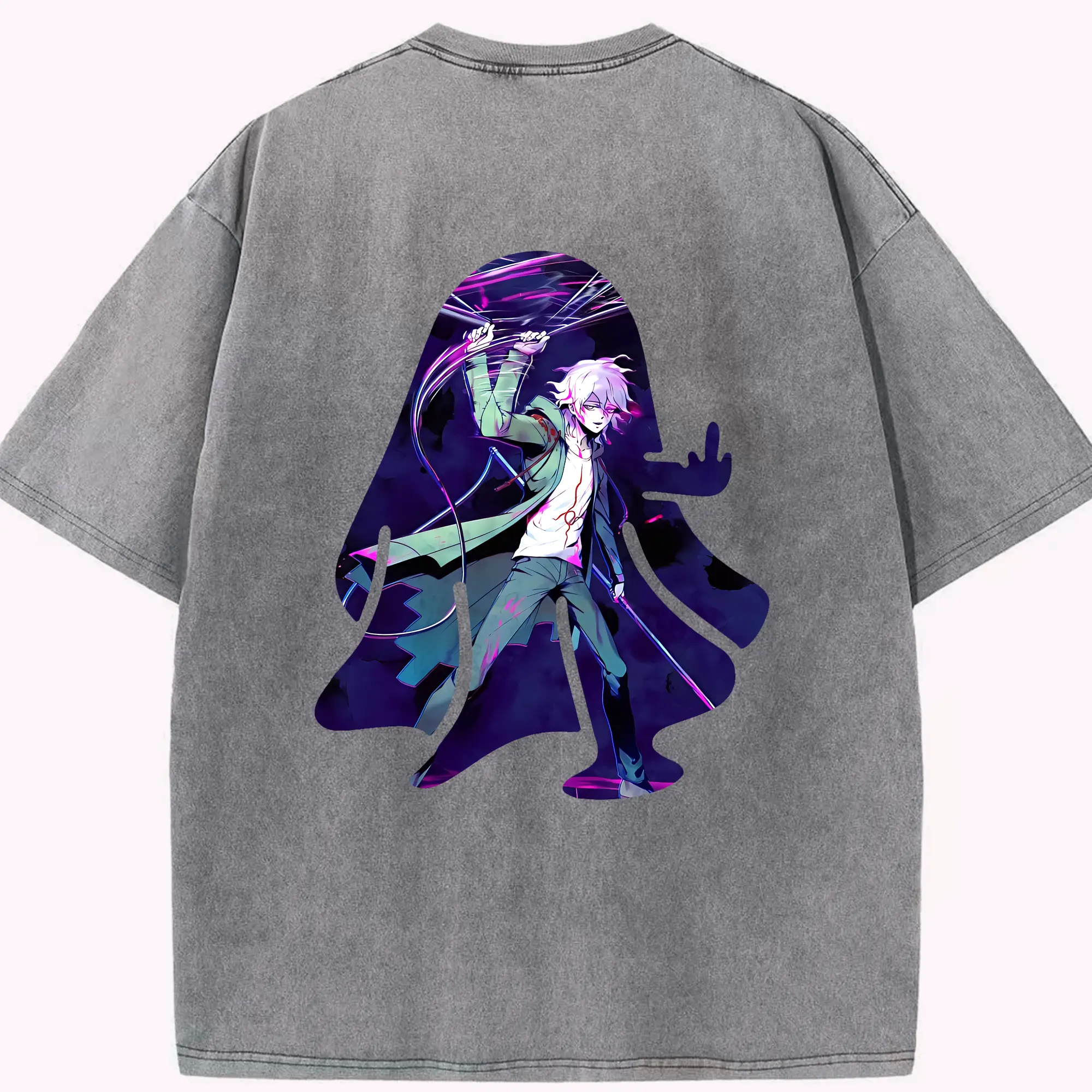 文豪ストレイドッグス グッズ,中原中也 - 綿100% ヴィンテージ風 半袖Tシャツ ・ 背面プリント ・ 柔らか肌触り ・ 通気性 快適 ・ スポーツ カジュアル 外出用