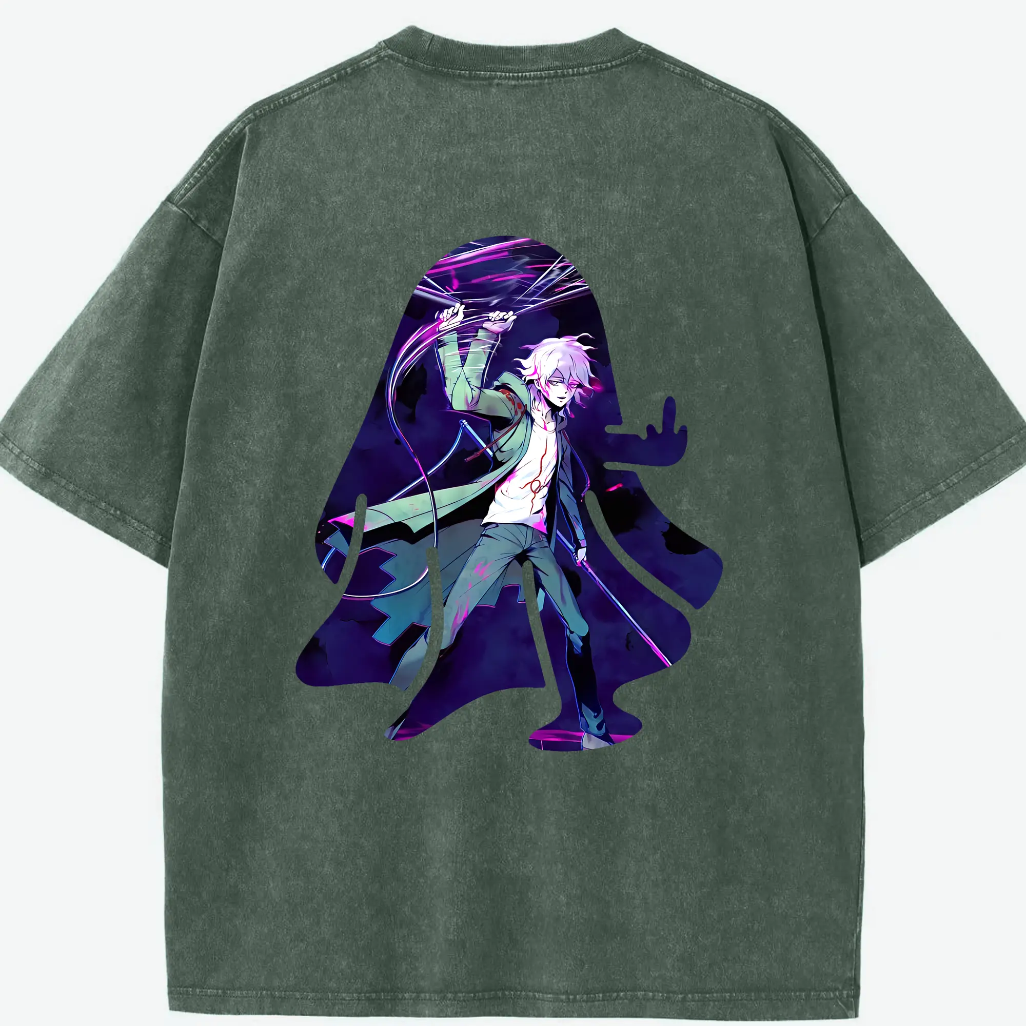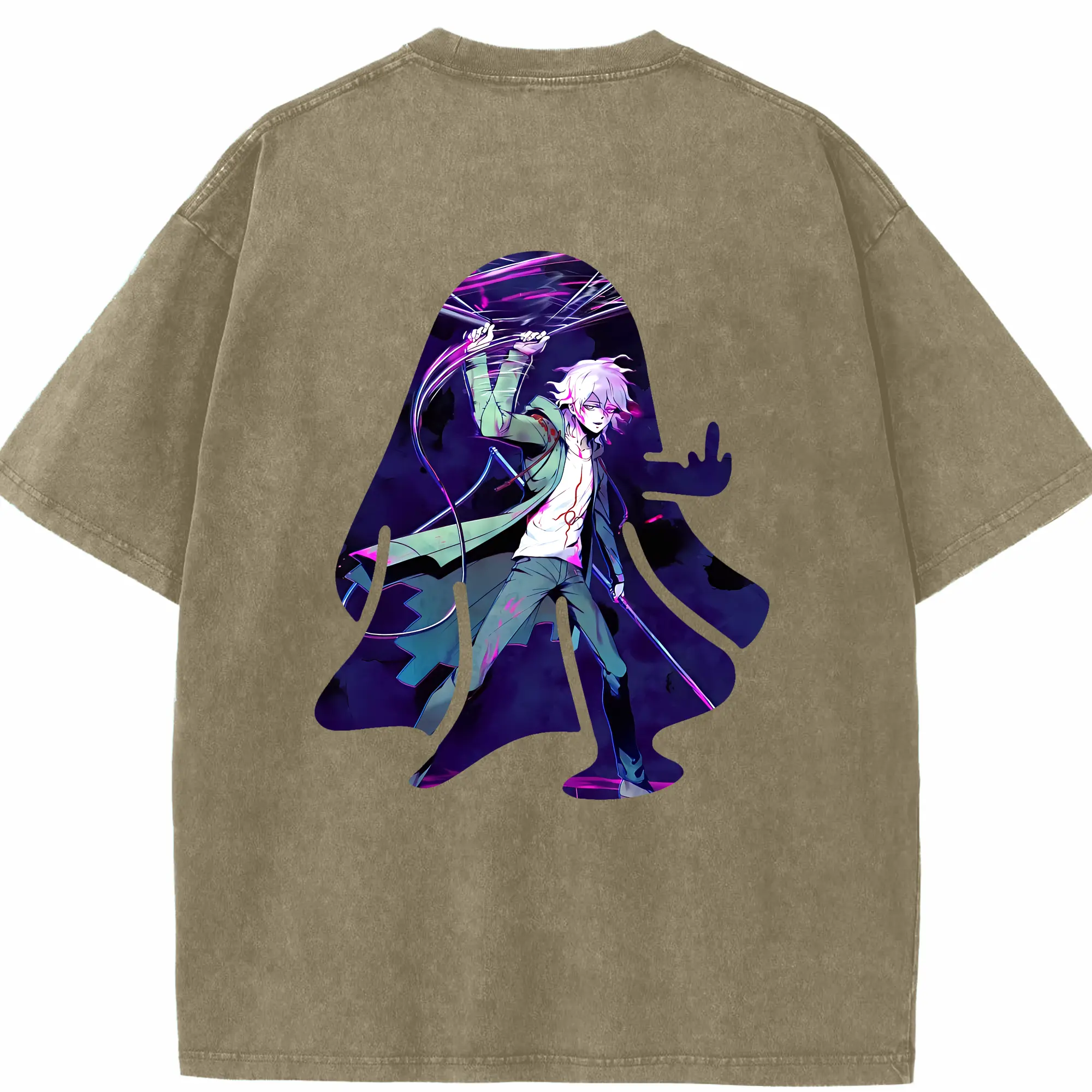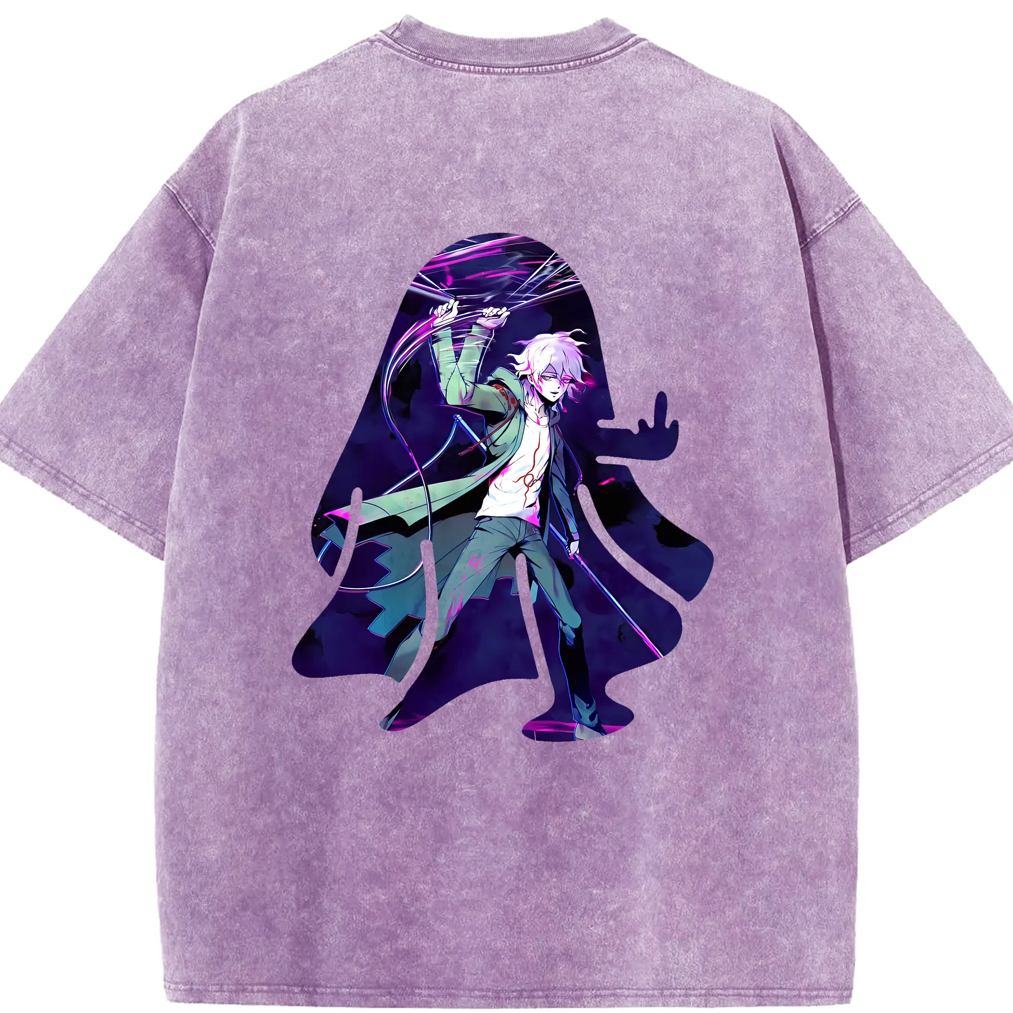 文豪ストレイドッグス グッズ,中原中也 - 綿100% ヴィンテージ風 半袖Tシャツ ・ 背面プリント ・ 柔らか肌触り ・ 通気性 快適 ・ スポーツ カジュアル 外出用