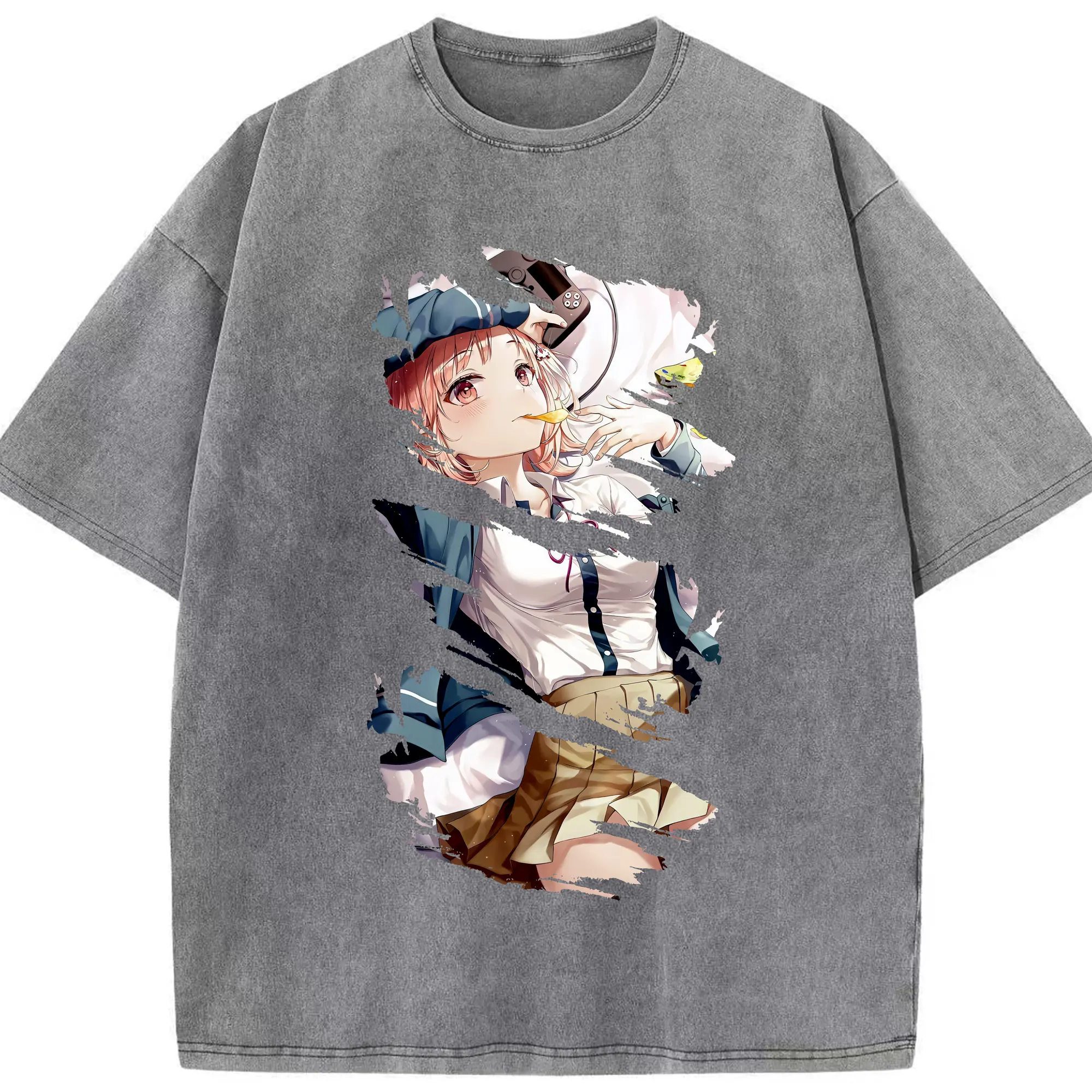 リコリス・リコイル グッズ,錦木千束 - 綿100% ヴィンテージ風 半袖Tシャツ ・ フロントプリント ・ 柔らか肌触り ・ 通気性 快適 ・ スポーツ カジュアル 外出用