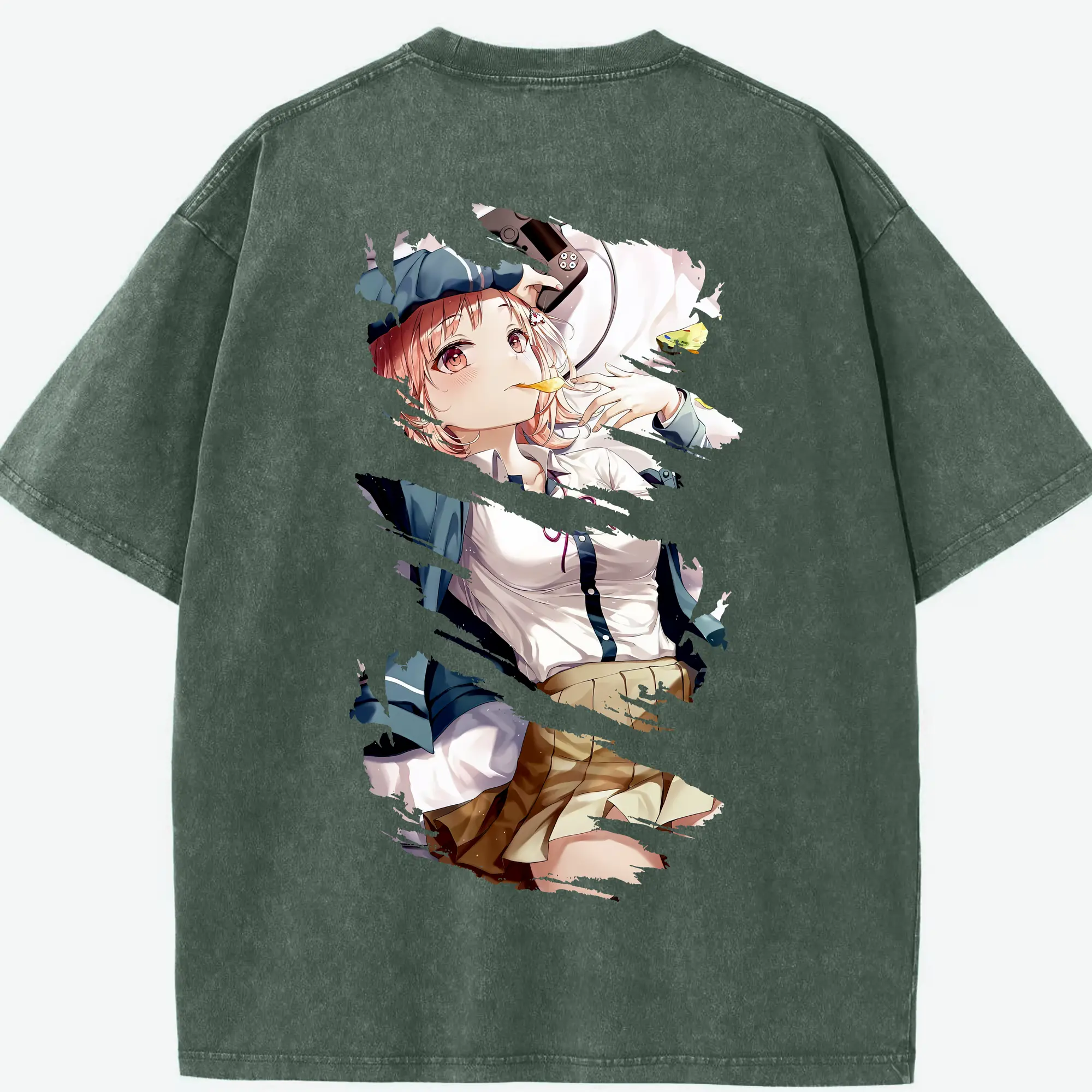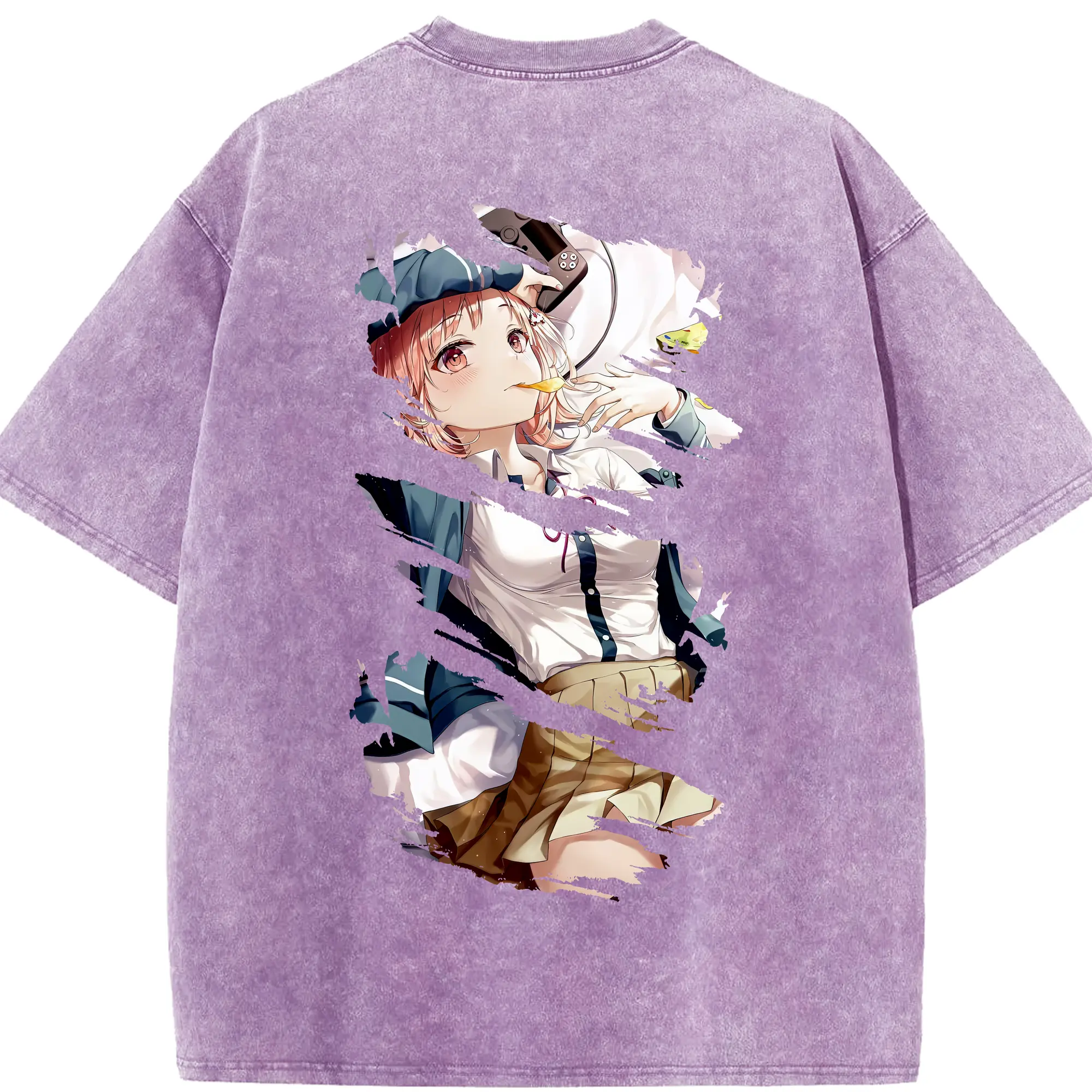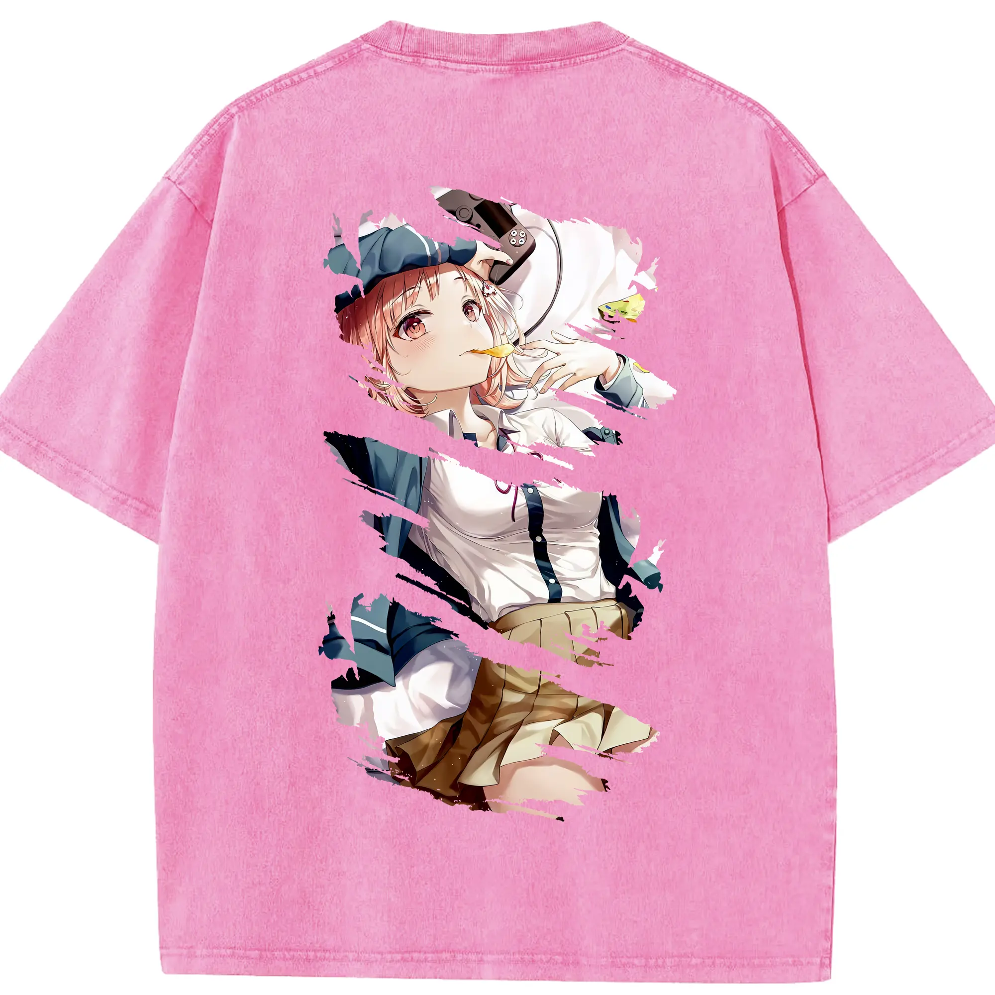 ブルーアーカイブ グッズ 聖園ミカ - 綿100% ヴィンテージ風 半袖Tシャツ ・ 背面プリント ・ 柔らか肌触り ・ 通気性 快適 ・ スポーツ カジュアル 外出用