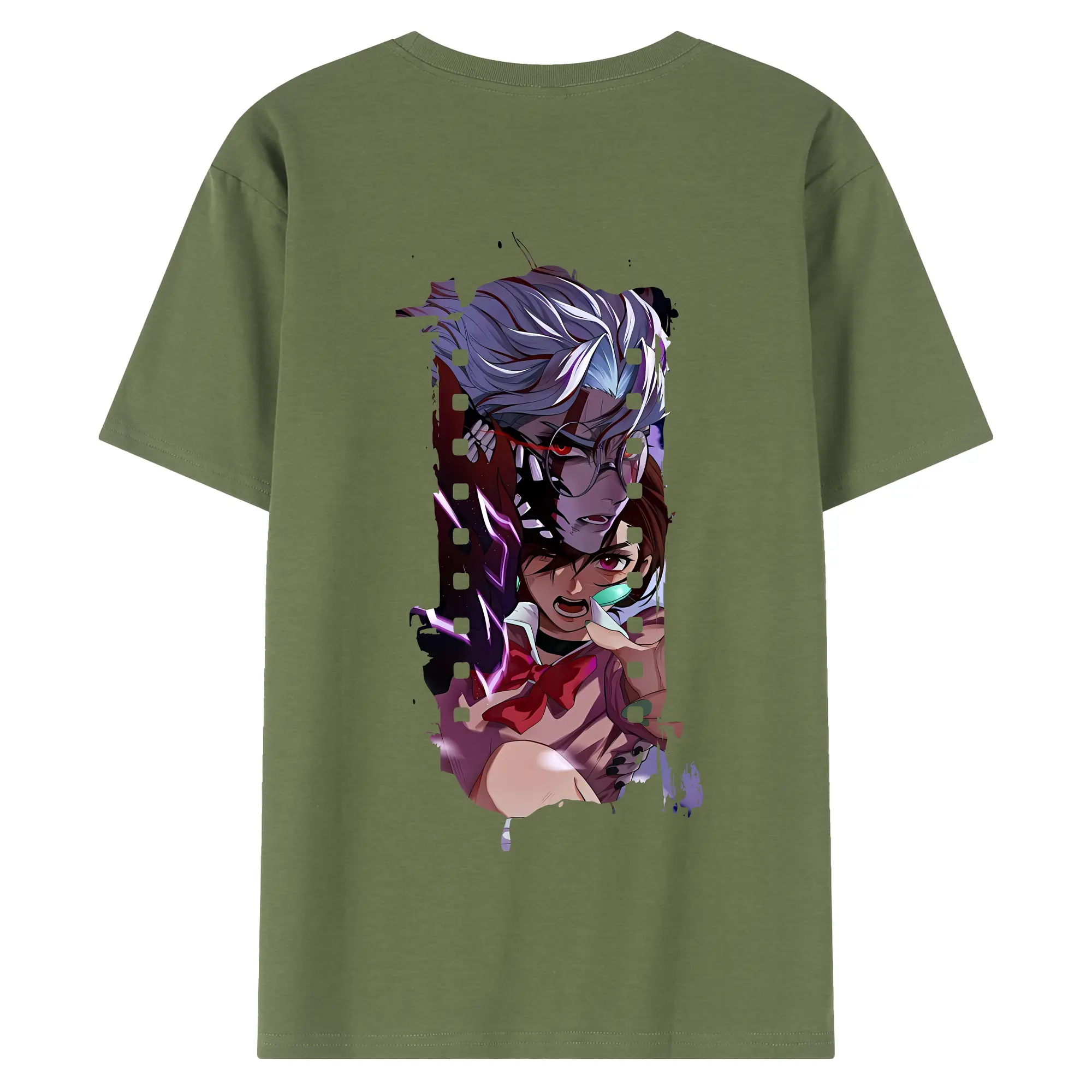 ダンダダン グッズ,綾瀬桃 - 綿100% ヴィンテージ風 半袖Tシャツ ・ 背面プリント ・ 柔らか肌触り ・ 通気性 快適 ・ スポーツ カジュアル 外出用